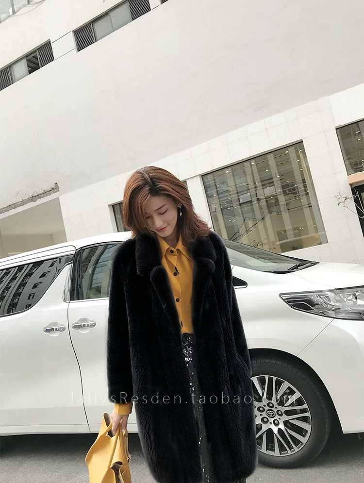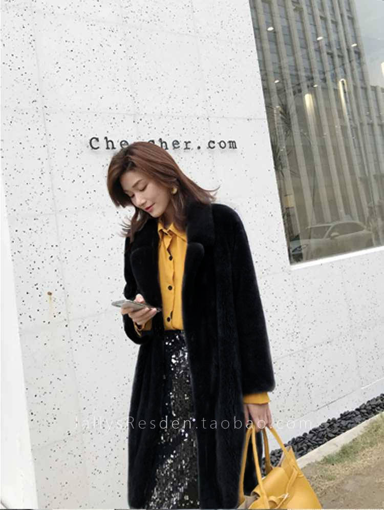 水貂仿皮草外套女中長(zhǎng)款2019新款冬季毛毛西裝領(lǐng)加厚顯瘦貂皮大衣