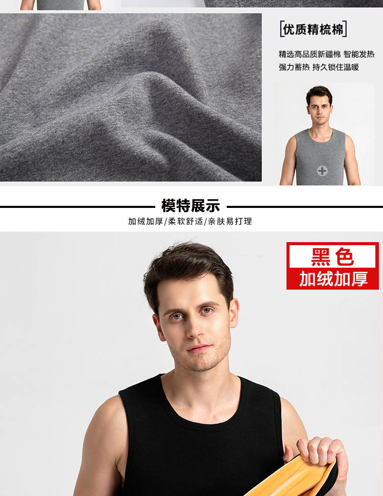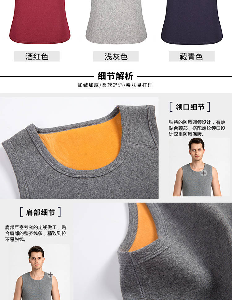 商品名稱:【加絨不起球】加絨加厚保暖背心男士純棉修身馬甲冬季打底內(nèi)衣服