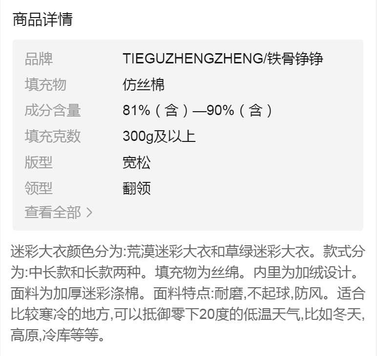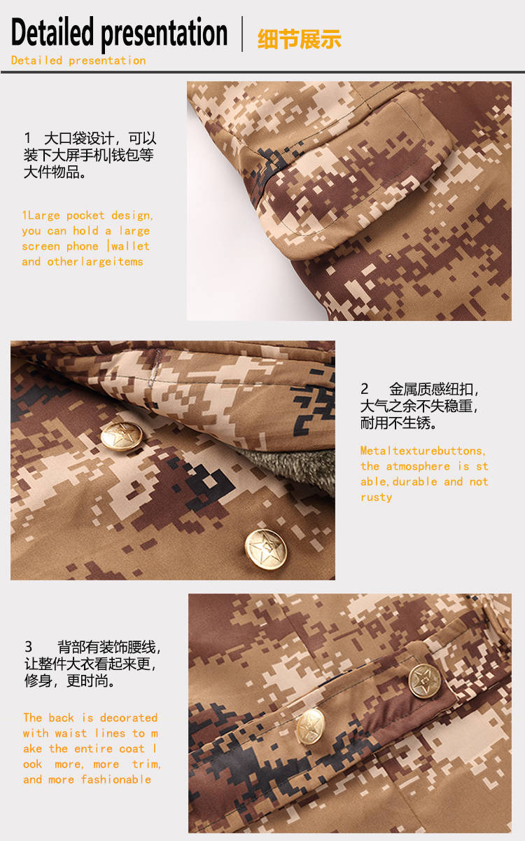 商品名稱:棉衣棉襖男冬季外套迷彩軍大衣加厚棉服棉大衣長款加絨中長工作服
