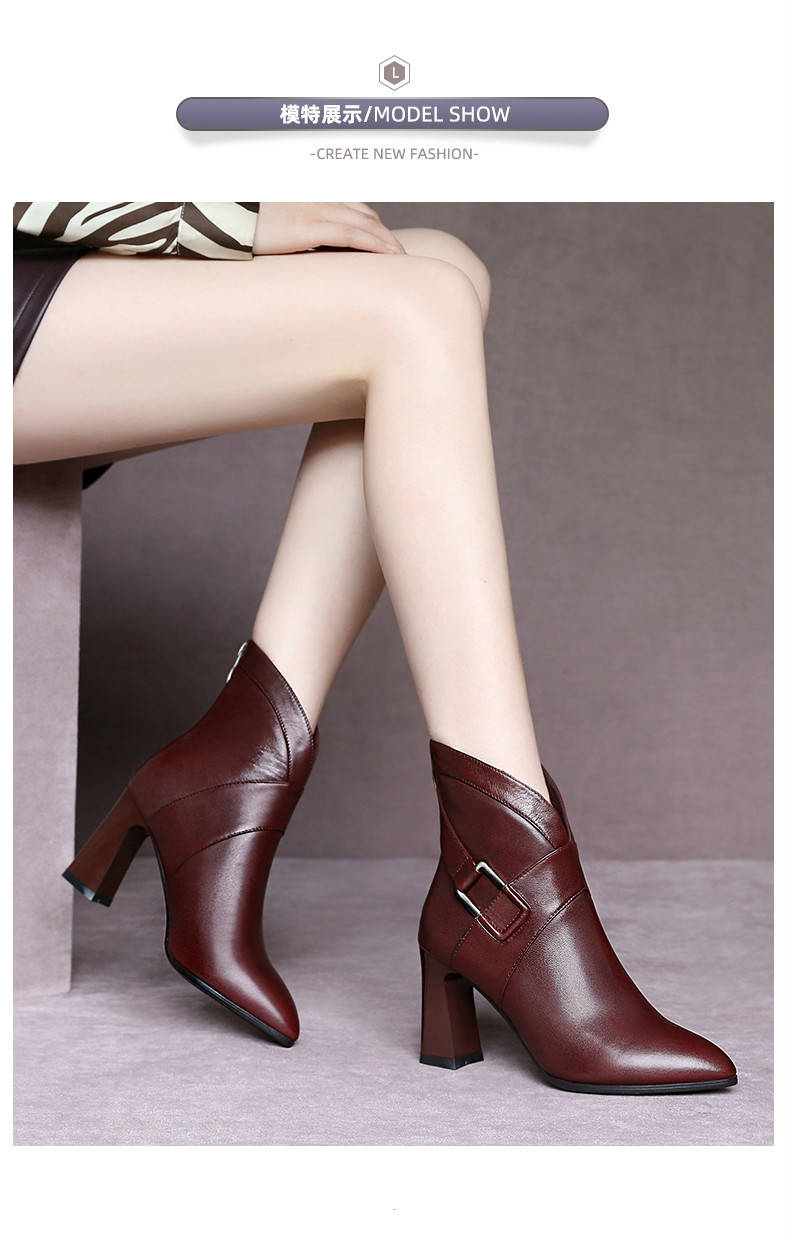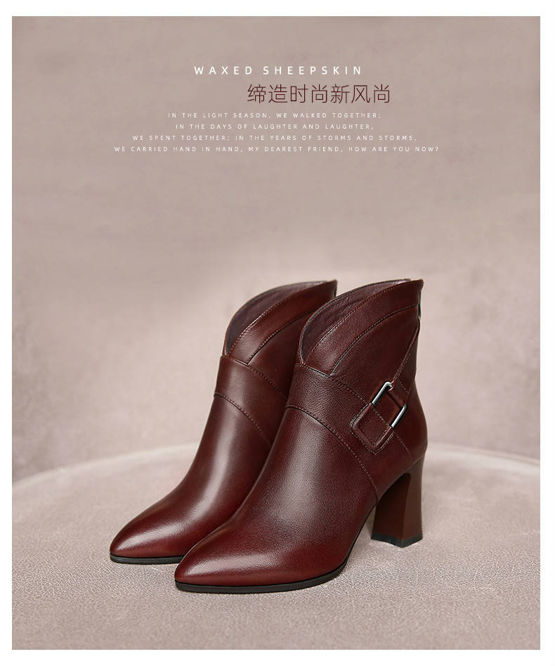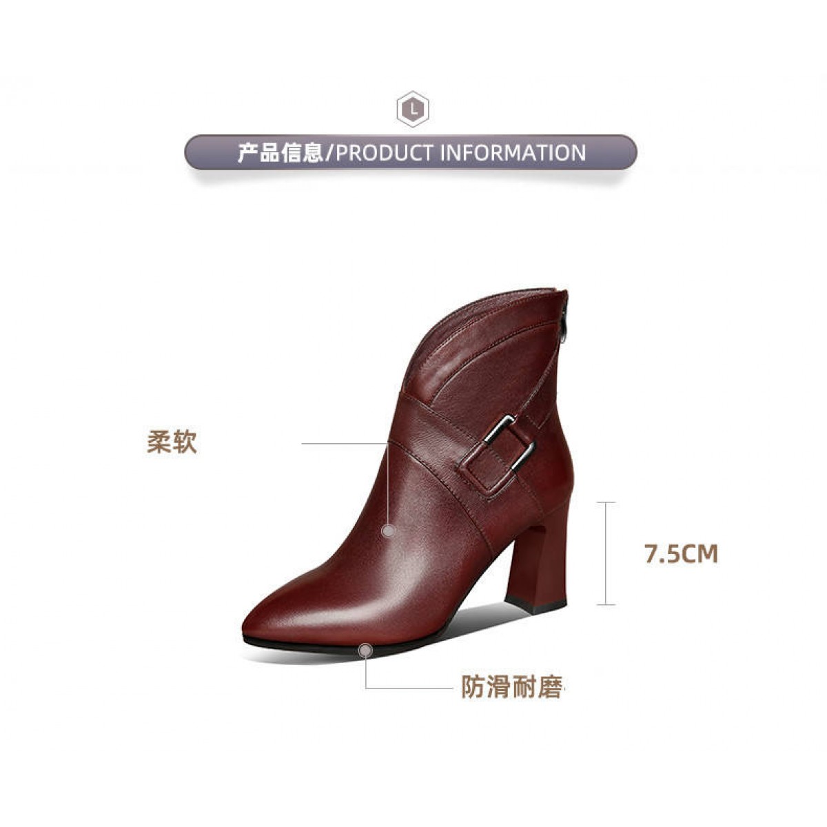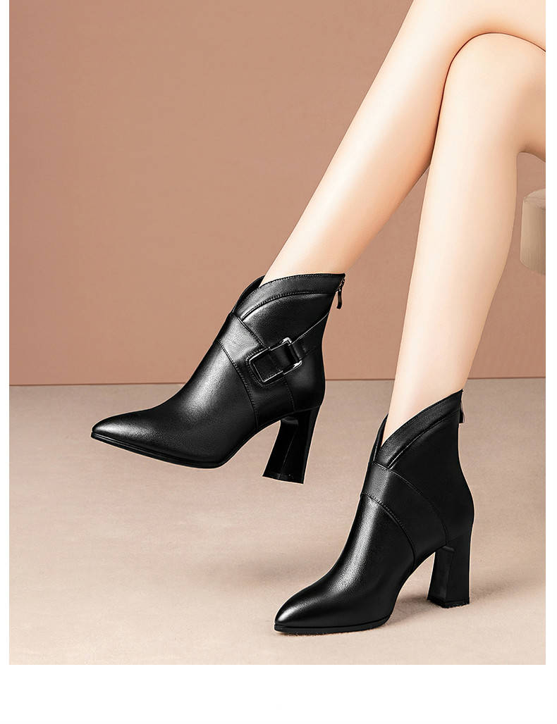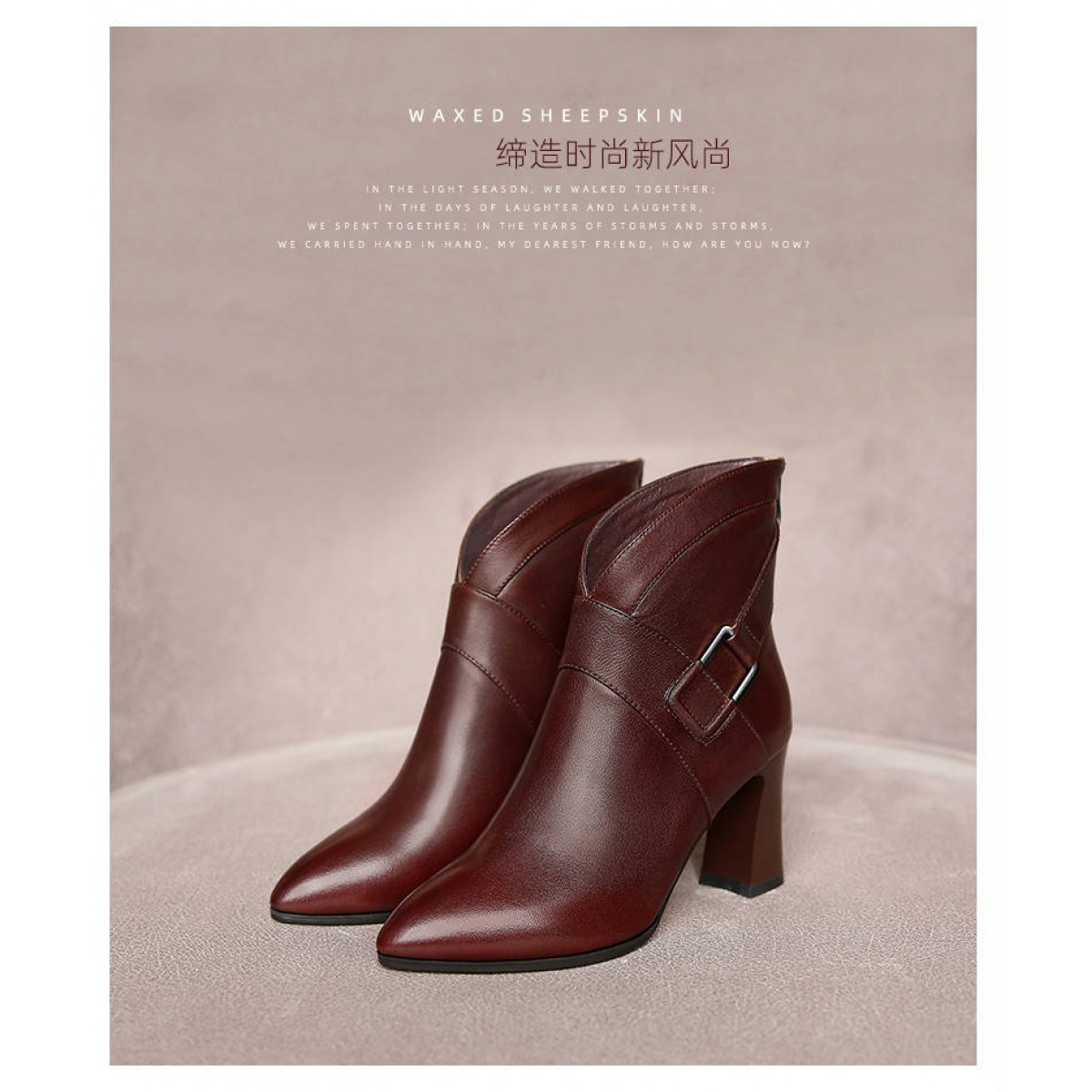 商品名稱:冬天靴子女2019新款尖頭皮靴加絨棉靴女秋冬季高跟鞋粗跟小短靴女