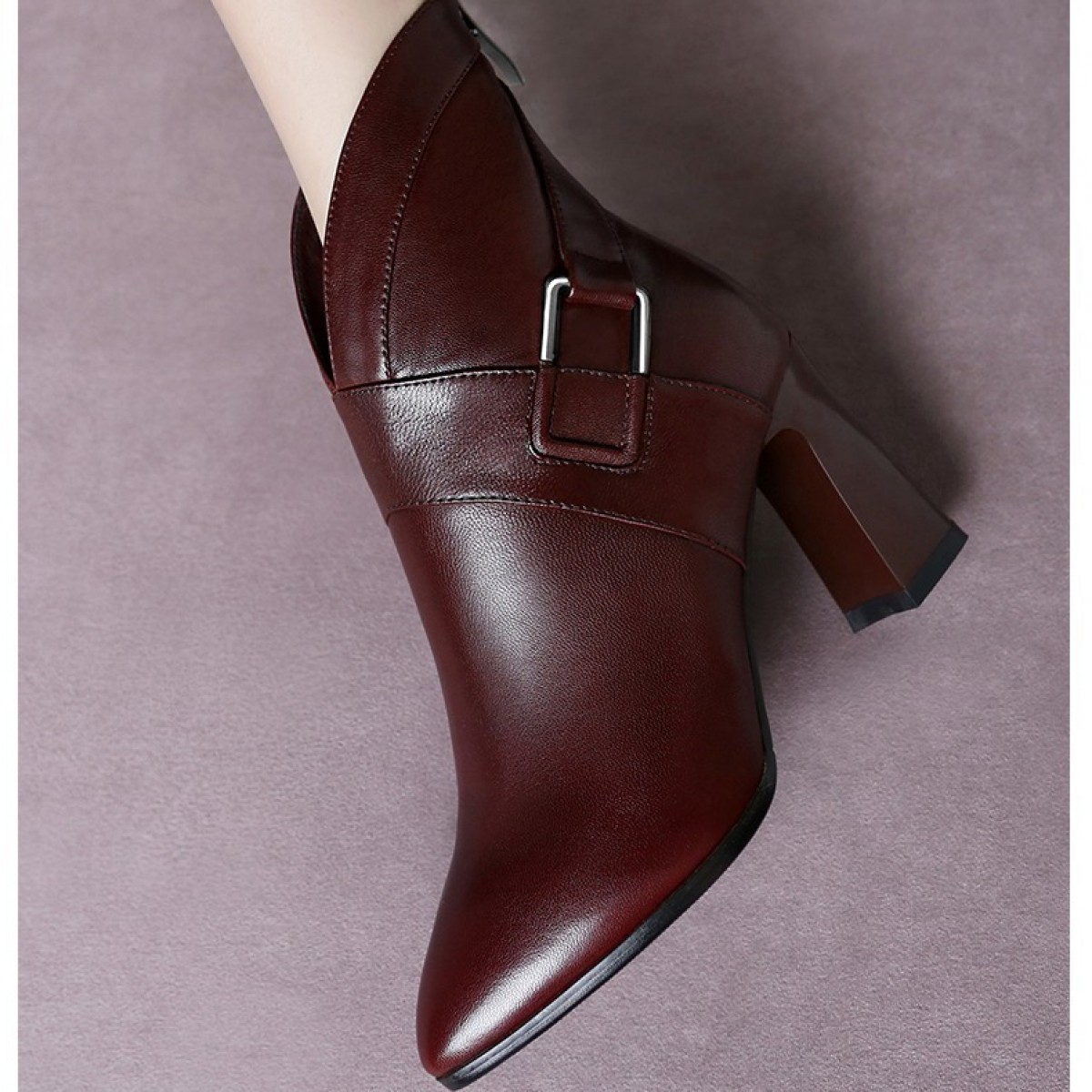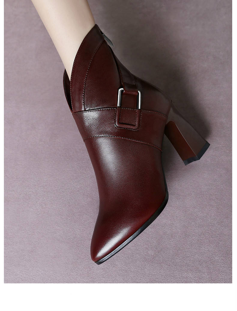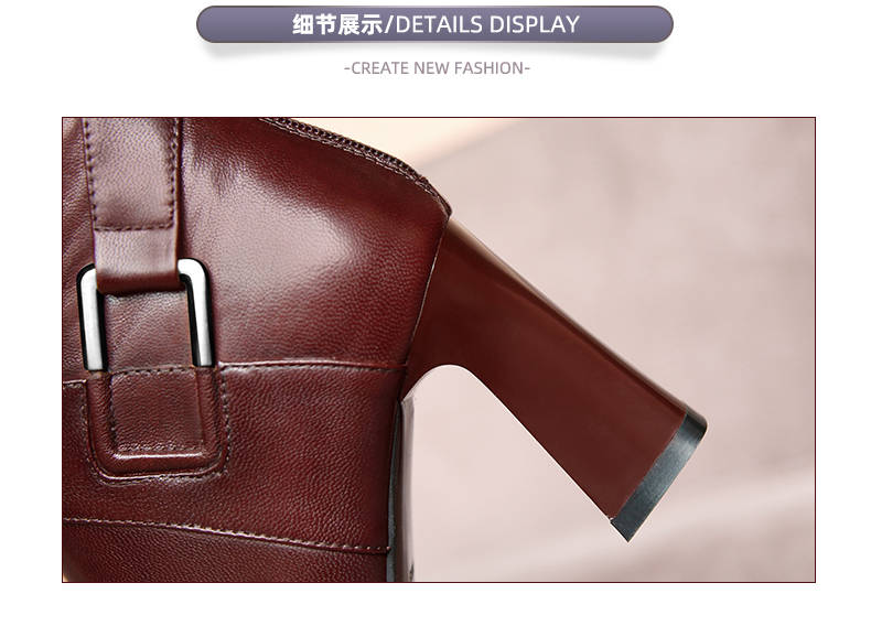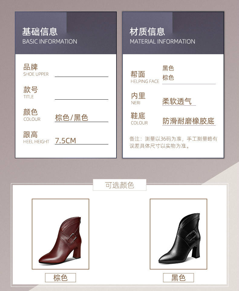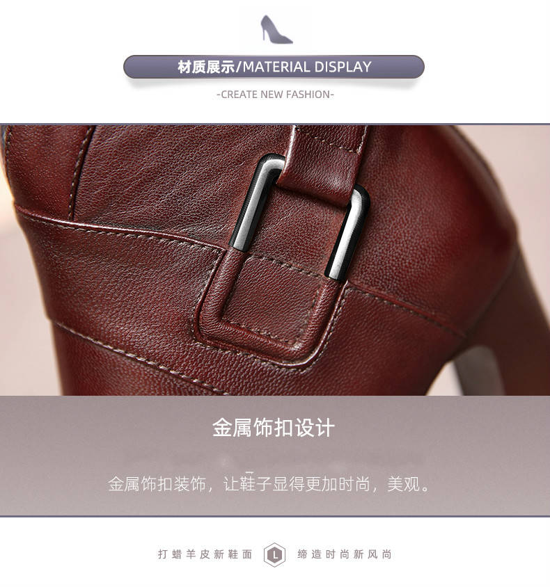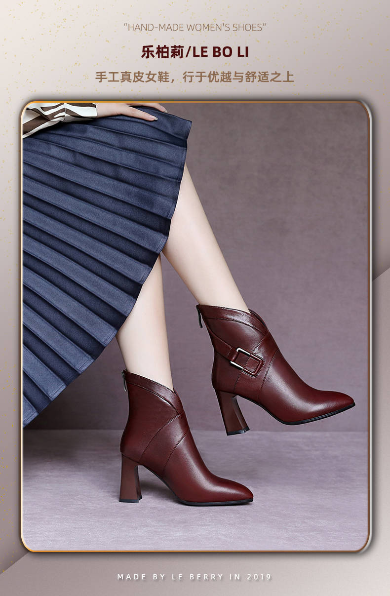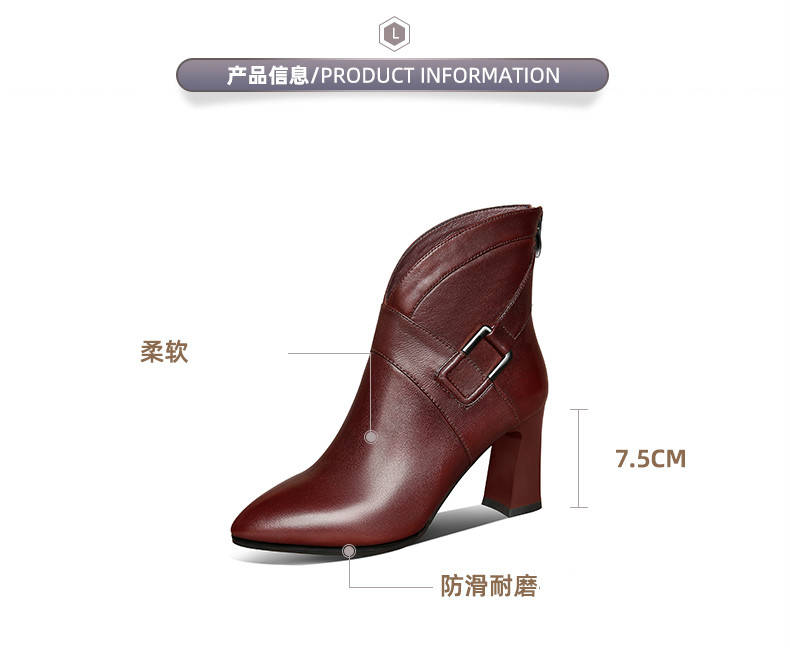 商品名稱:冬天靴子女2019新款尖頭皮靴加絨棉靴女秋冬季高跟鞋粗跟小短靴女