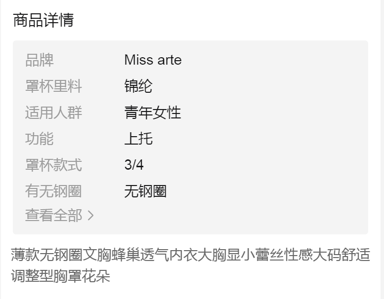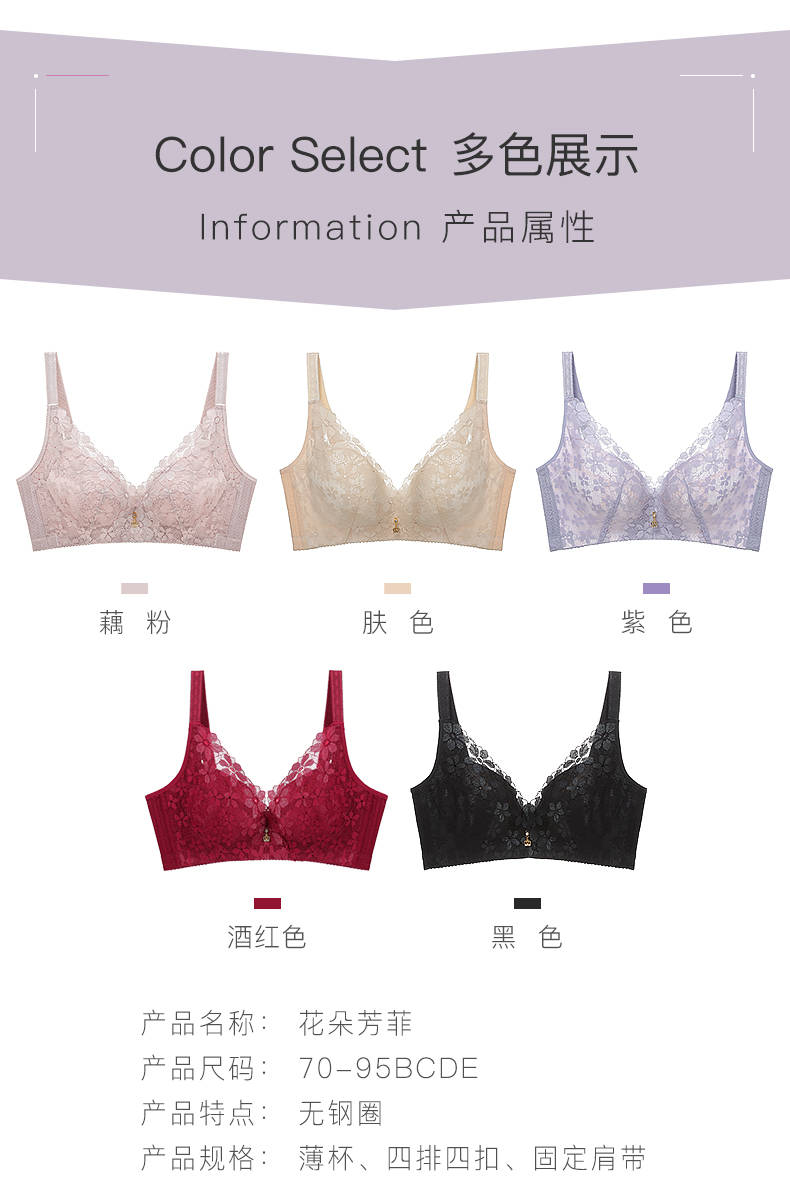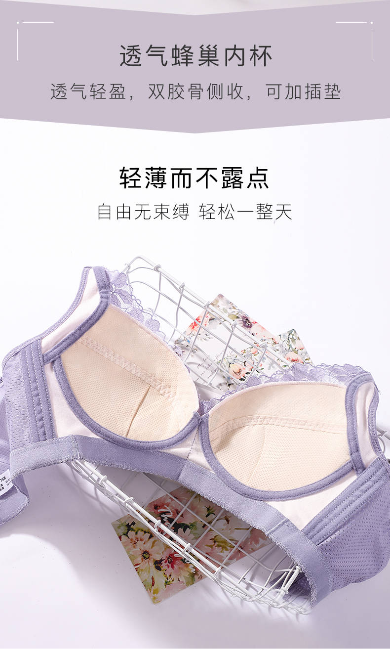 商品名稱:薄款無鋼圈文胸蜂巢透氣內(nèi)衣大胸顯小蕾絲性感大碼舒適調(diào)整型胸罩