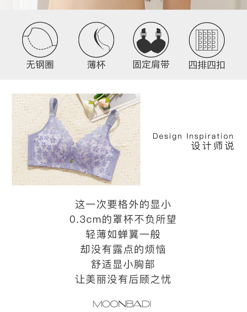 薄款無鋼圈文胸蜂巢透氣內(nèi)衣大胸顯小蕾絲性感大碼舒適調(diào)整型胸罩