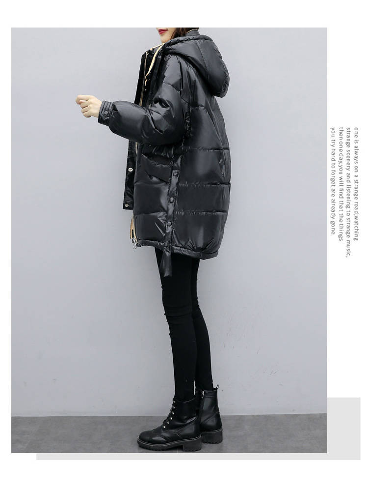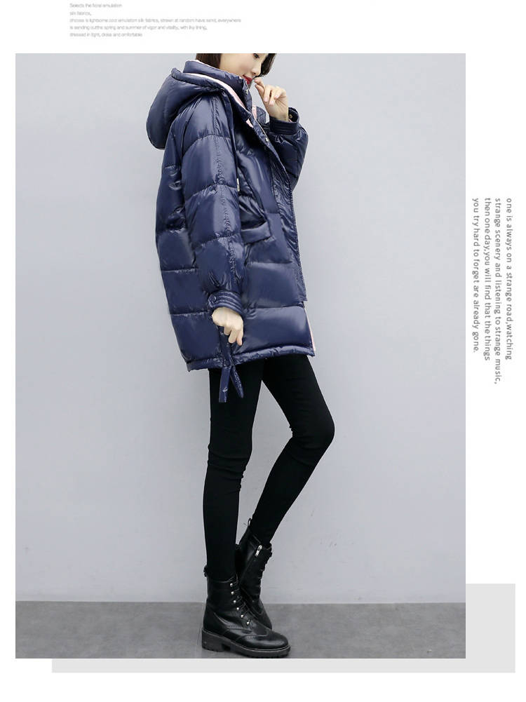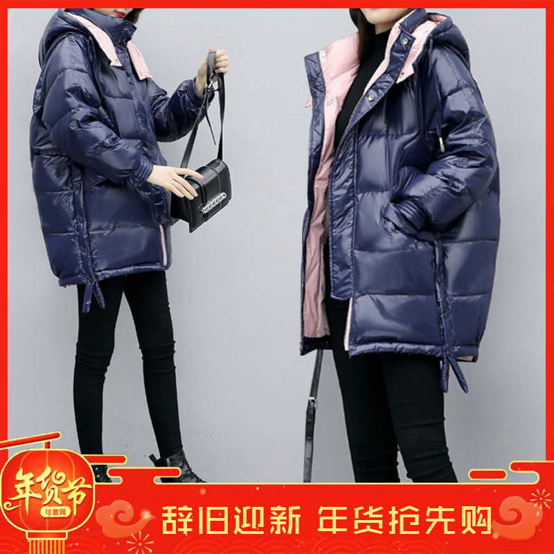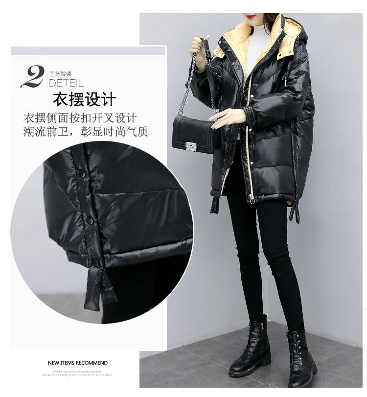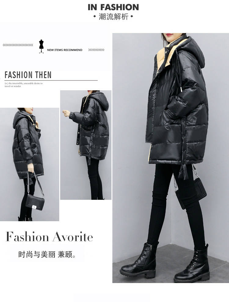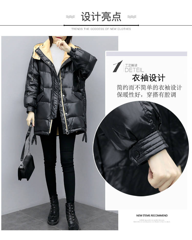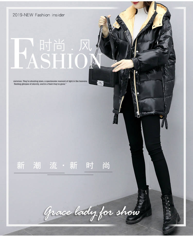 商品名稱:亮面羽絨棉女2019年新款中長款時尚寬松加厚休閑歐貨連帽冬裝外套