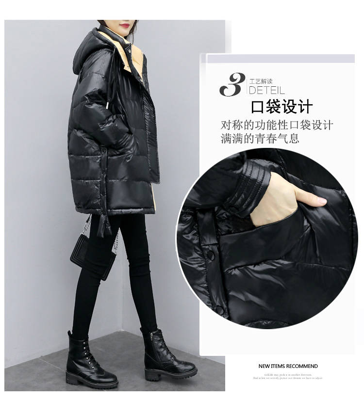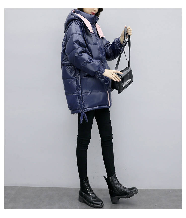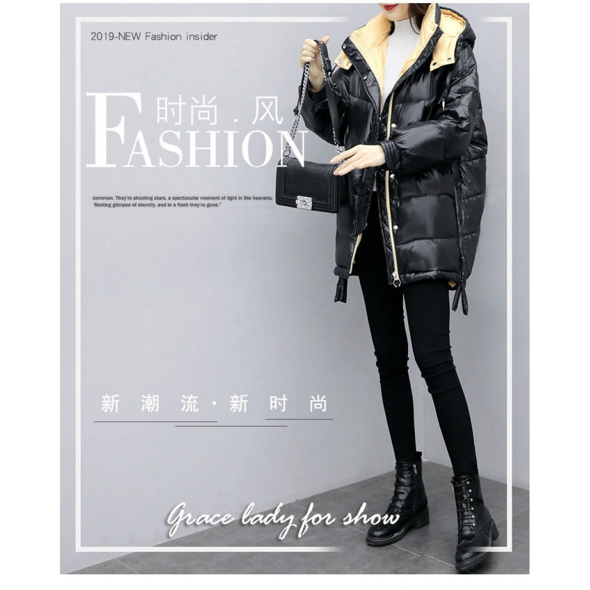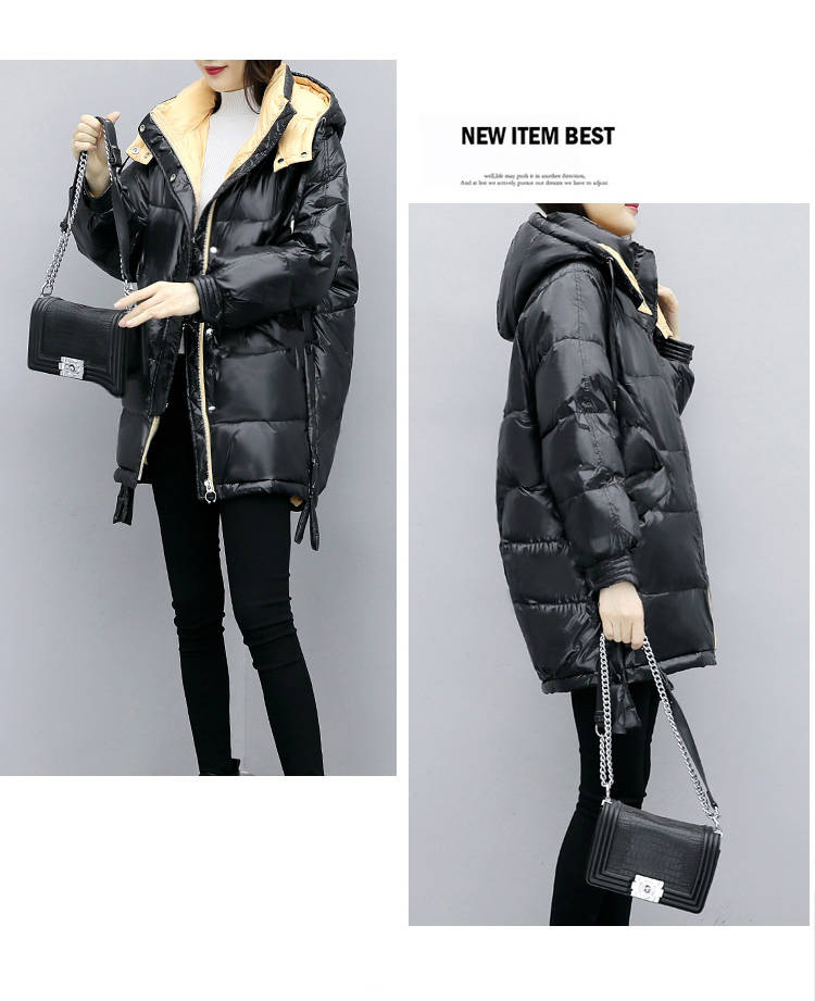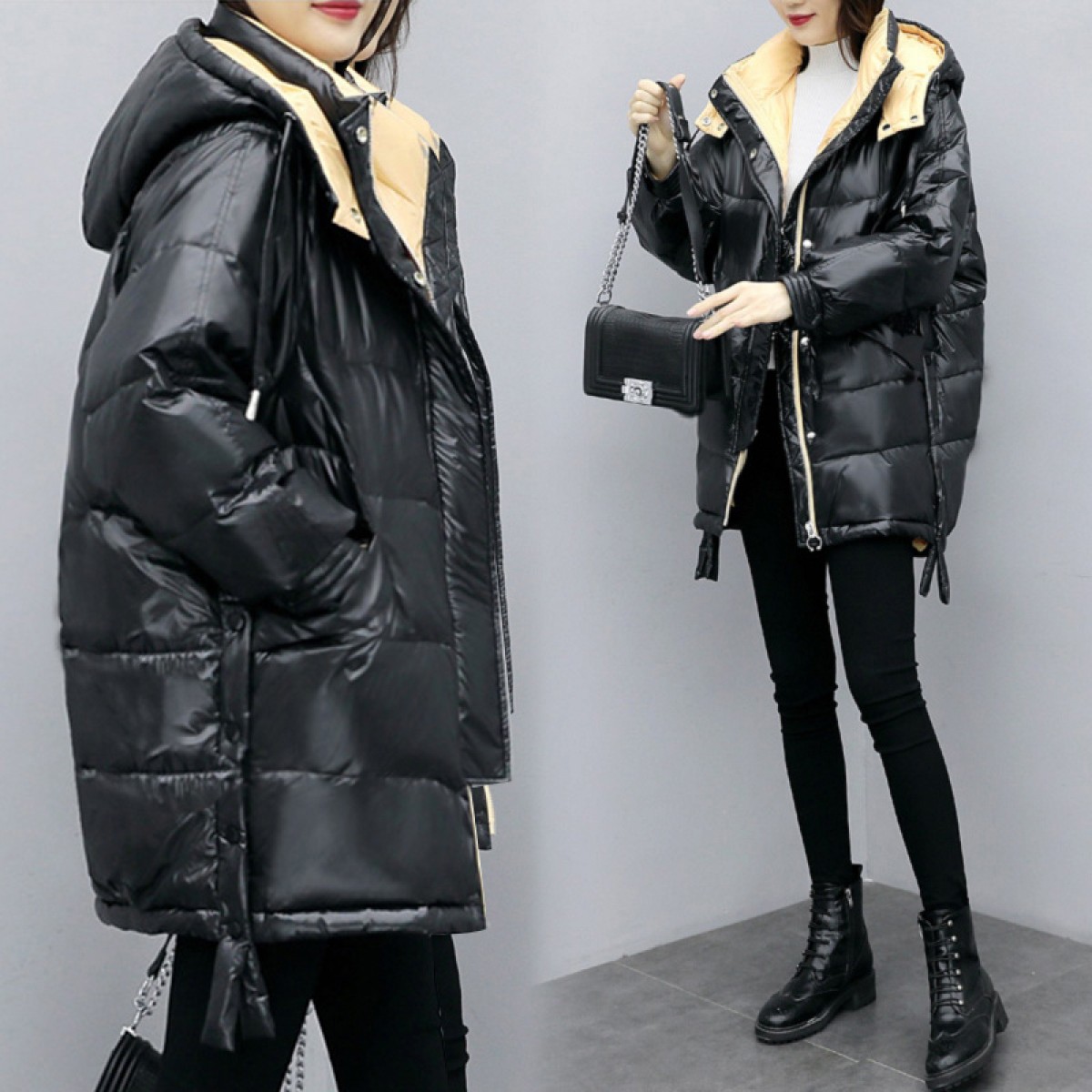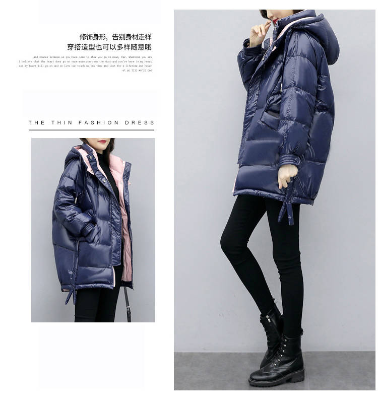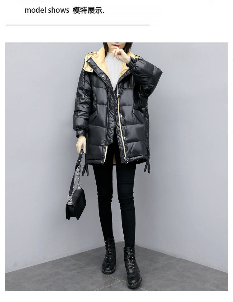 商品名稱:亮面羽絨棉女2019年新款中長款時尚寬松加厚休閑歐貨連帽冬裝外套