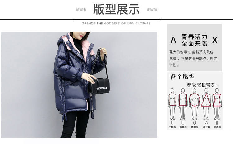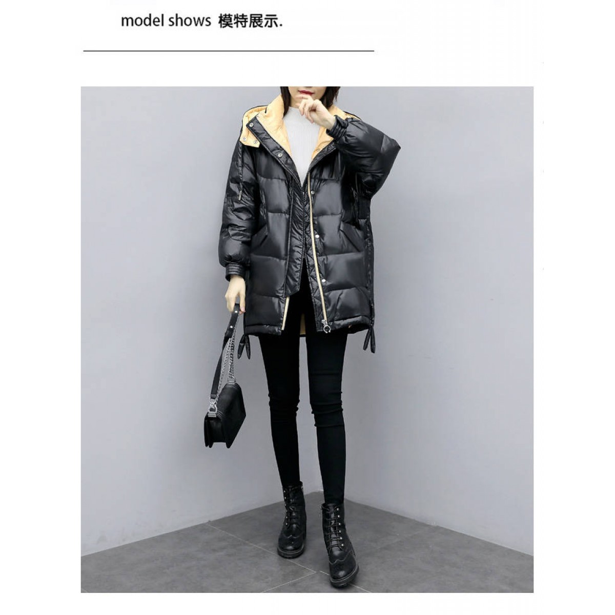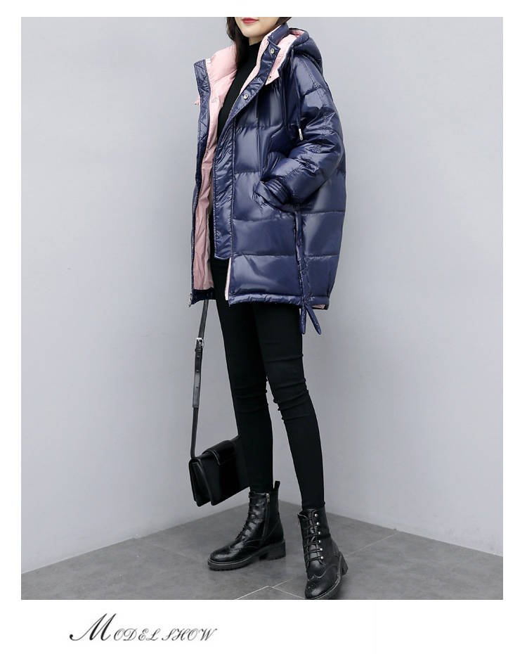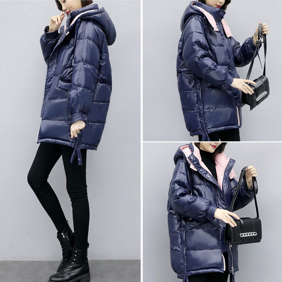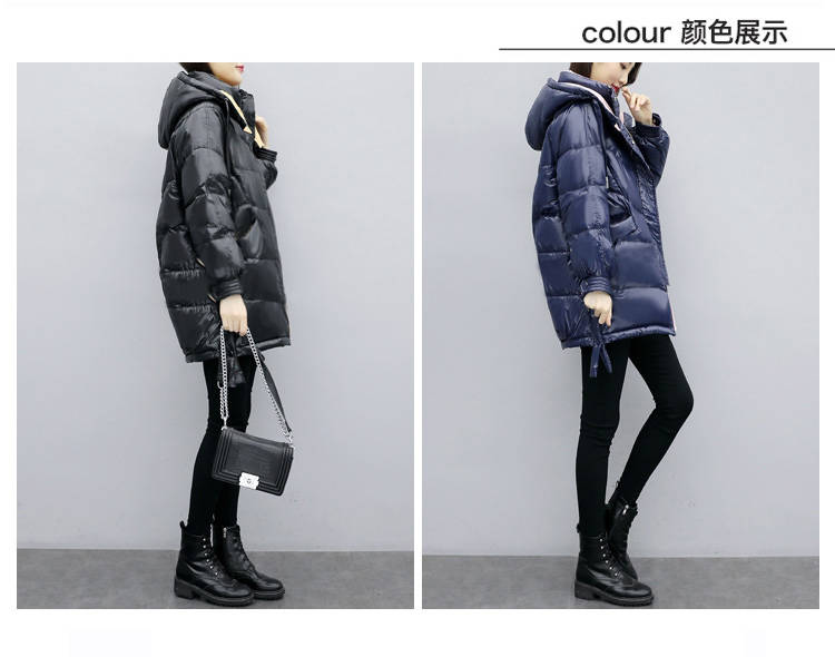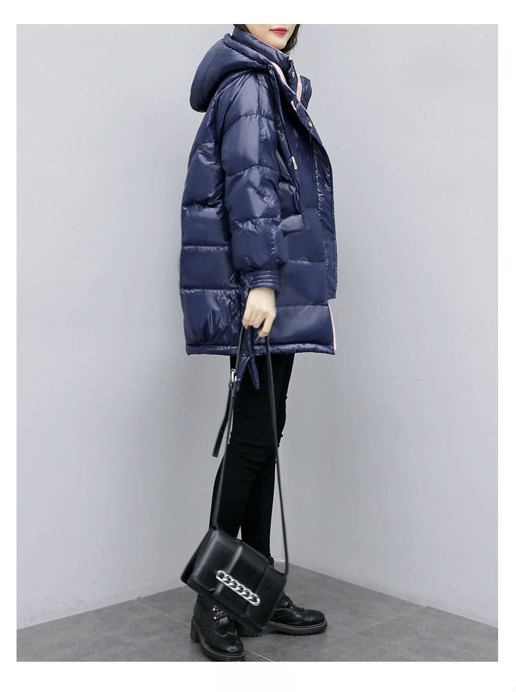 商品名稱:亮面羽絨棉女2019年新款中長款時尚寬松加厚休閑歐貨連帽冬裝外套