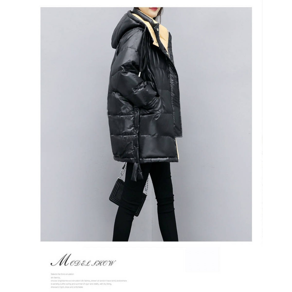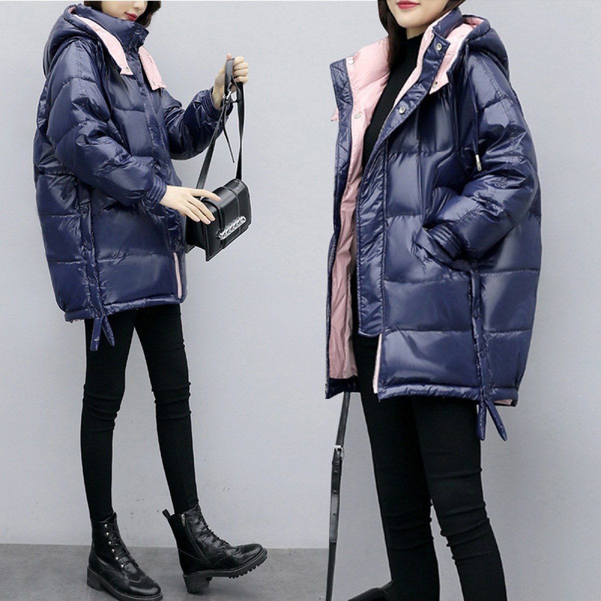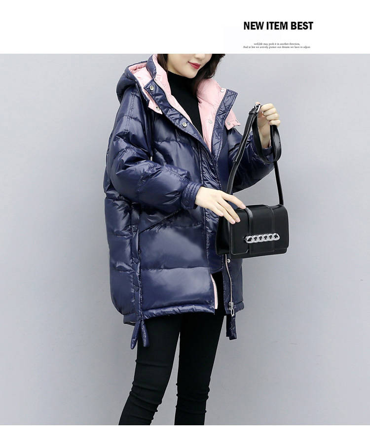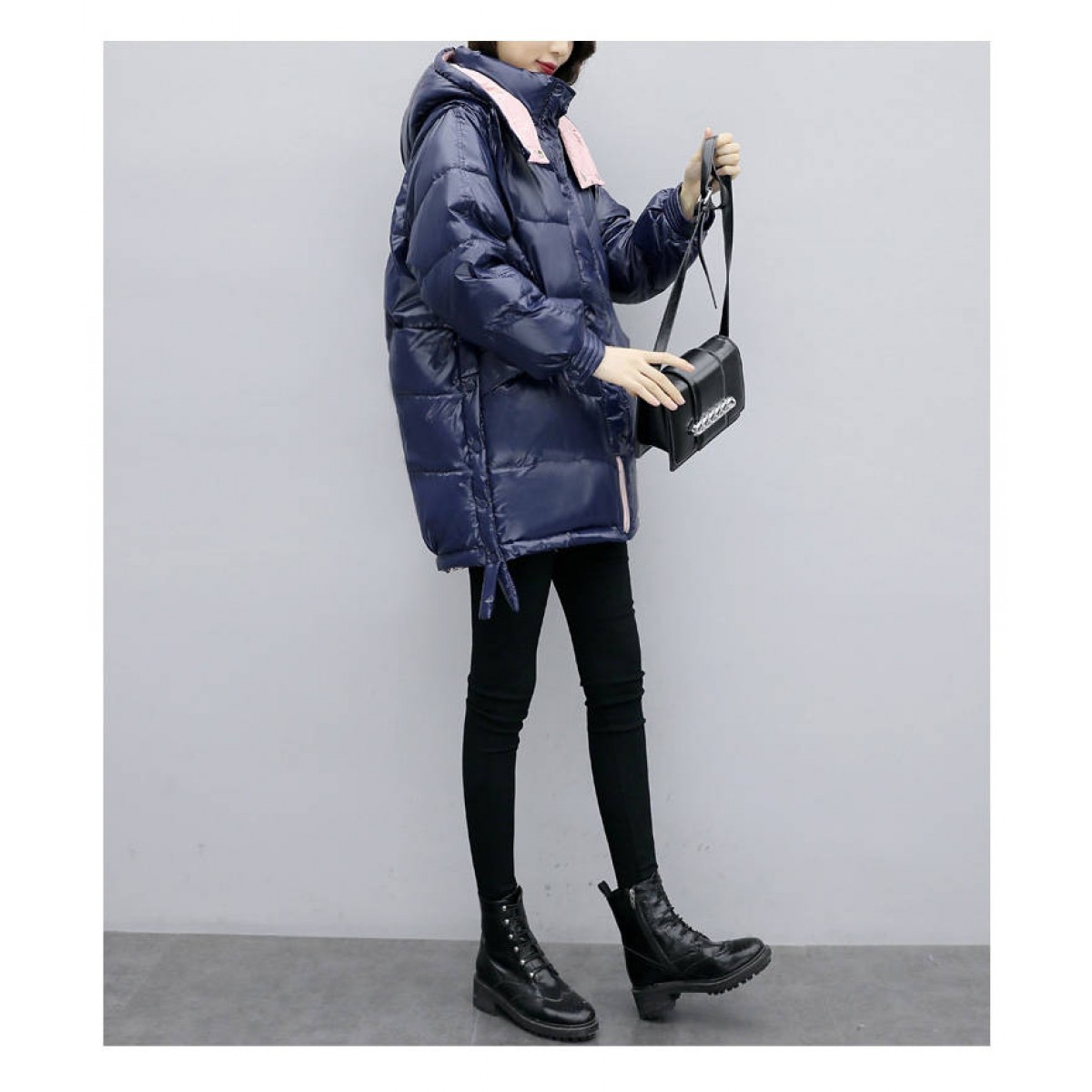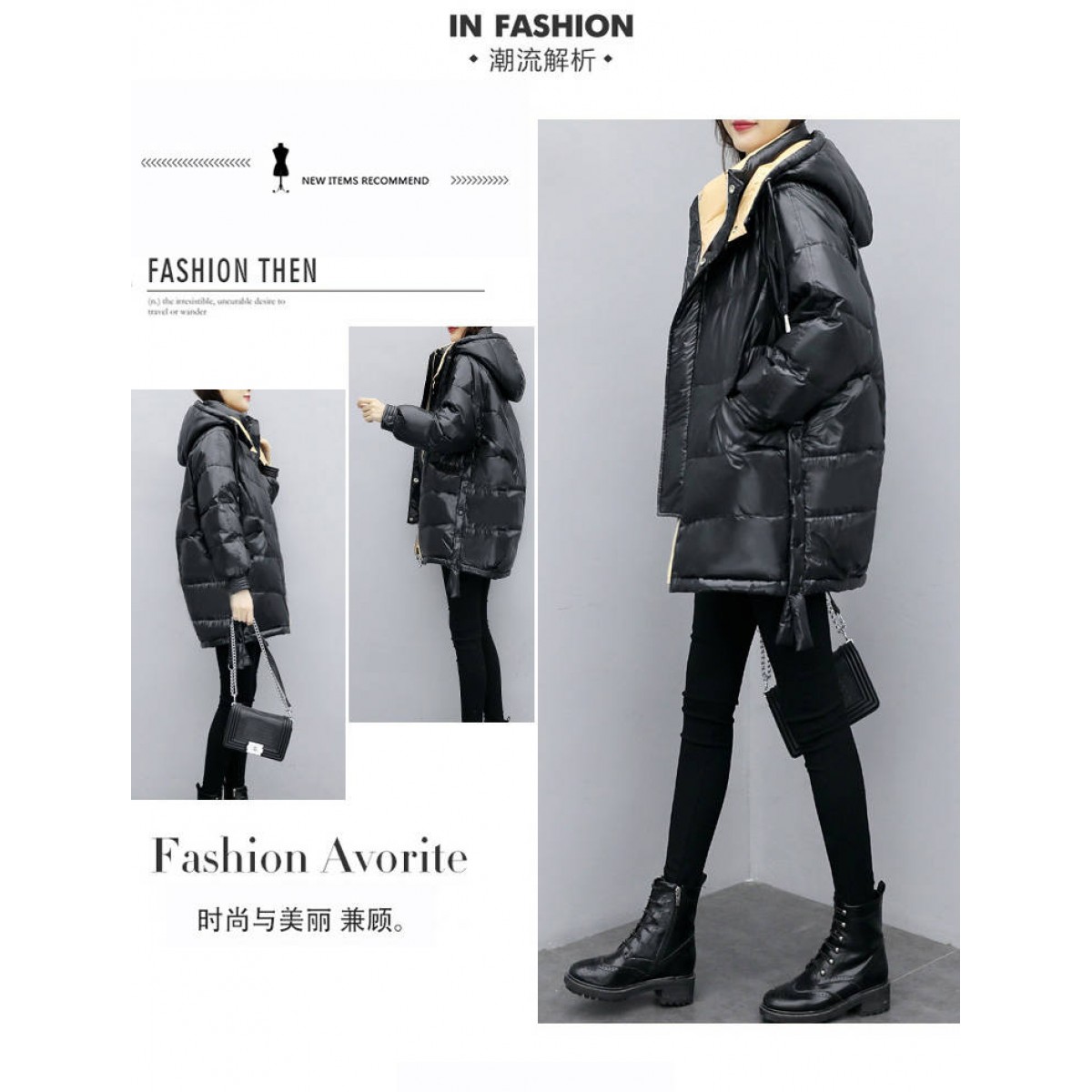 商品名稱:亮面羽絨棉女2019年新款中長款時尚寬松加厚休閑歐貨連帽冬裝外套