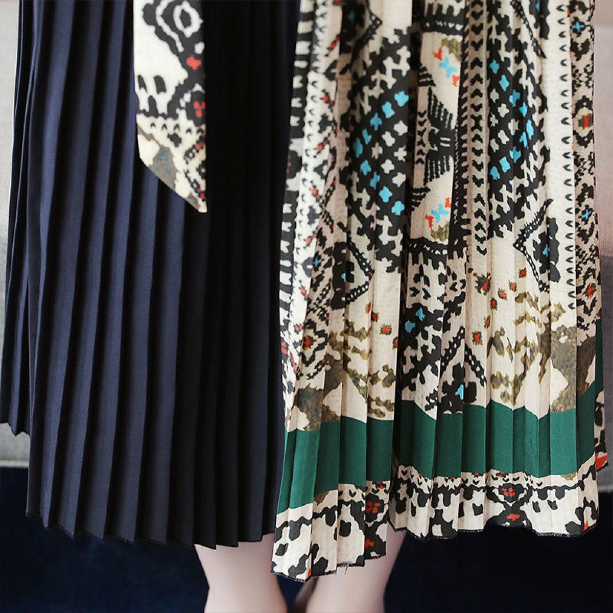 2019秋裝新款女針織衫印花百褶中長款連衣裙Z1584