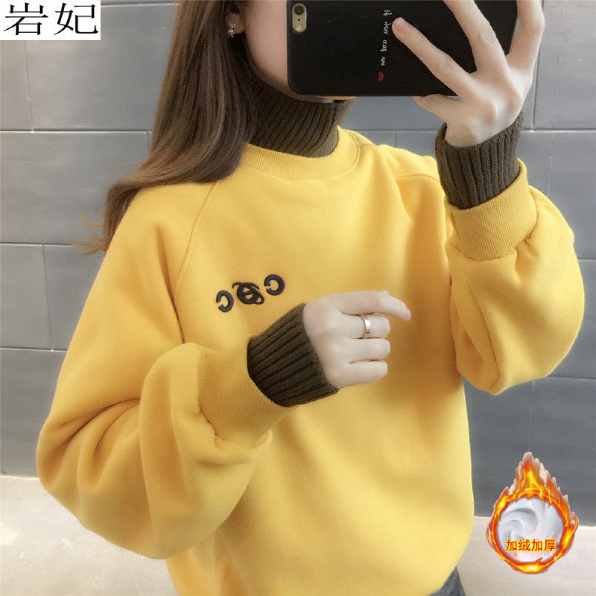 加絨衛(wèi)衣女2019秋冬新款半高領(lǐng)假兩件寬松韓版加厚時尚上衣外套潮