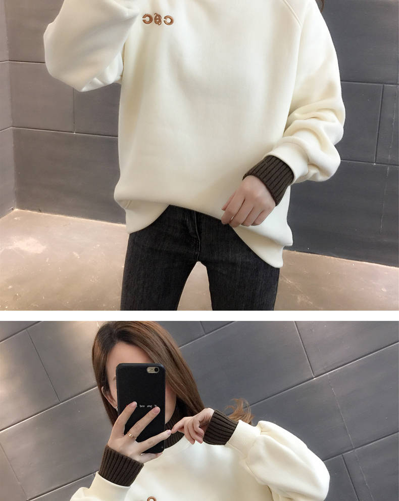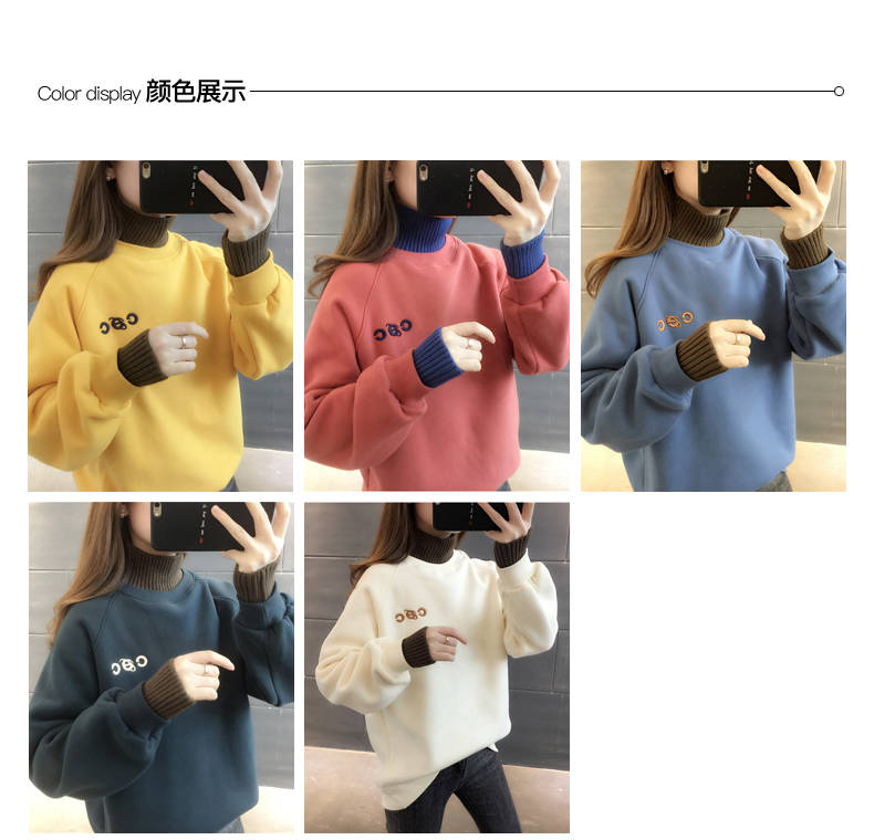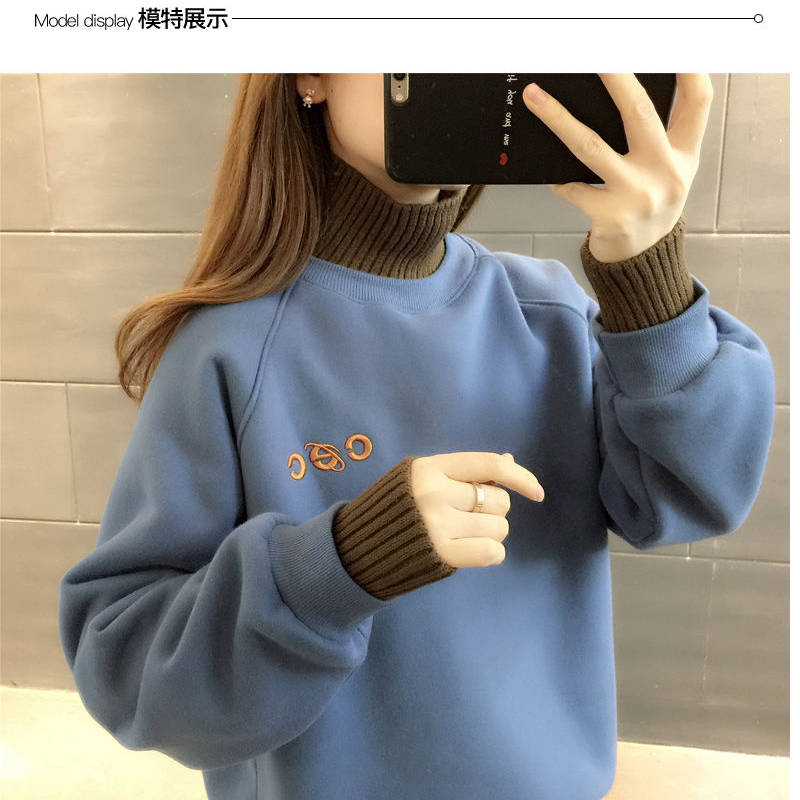 商品名稱:加絨衛(wèi)衣女2019秋冬新款半高領(lǐng)假兩件寬松韓版加厚時尚上衣外套潮