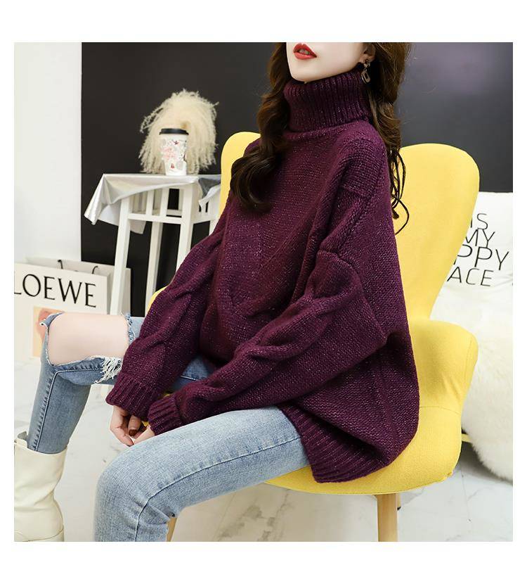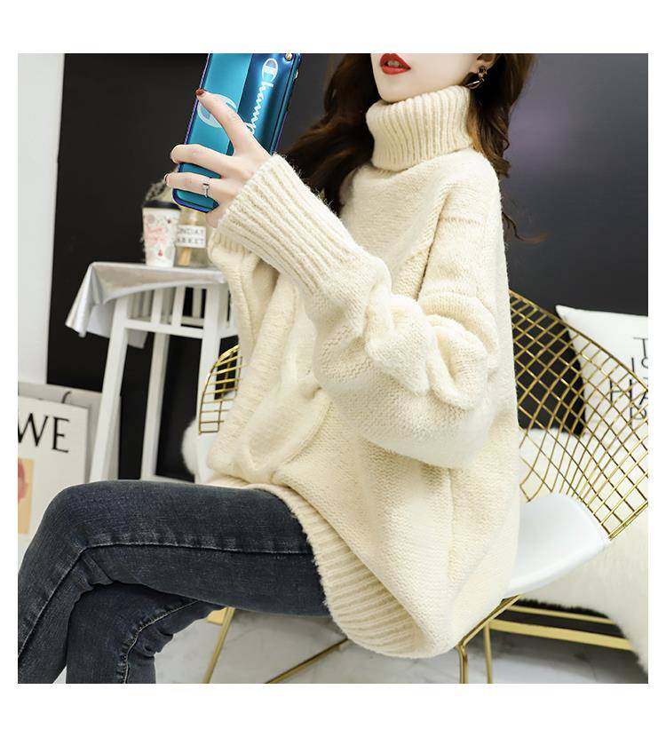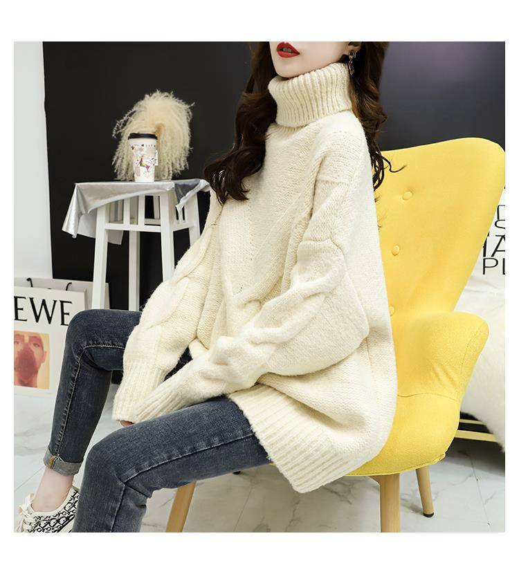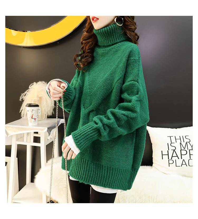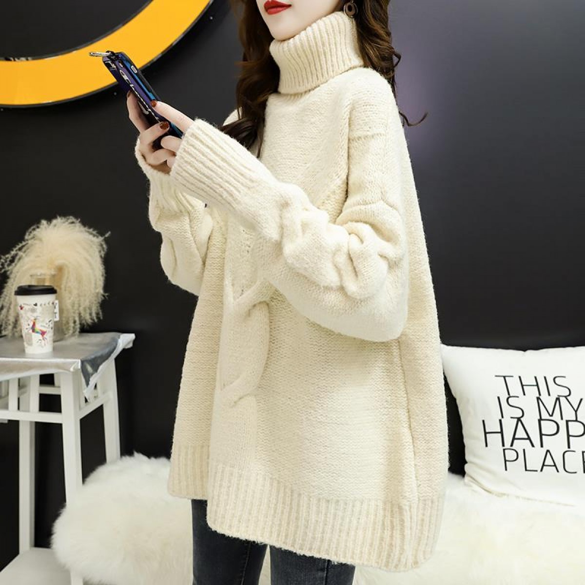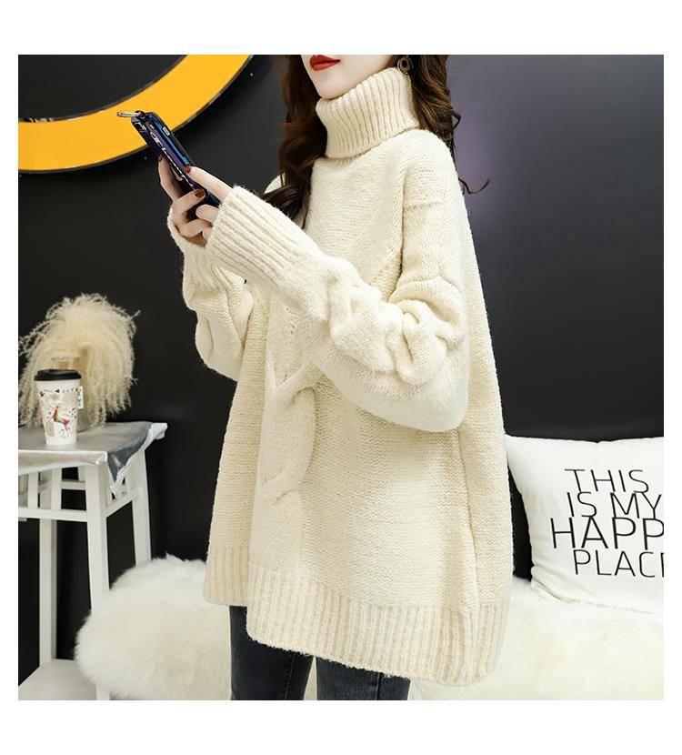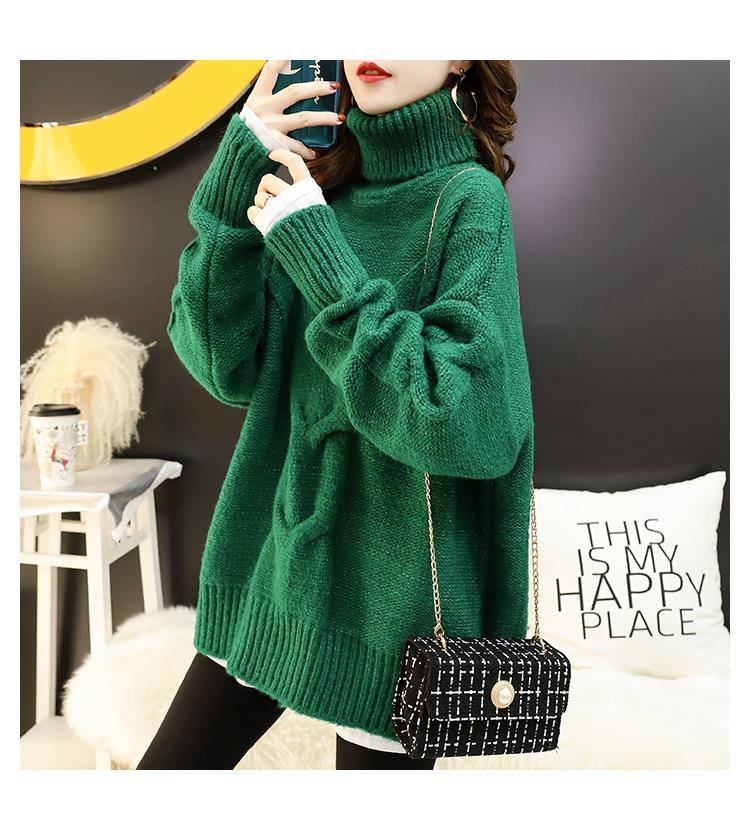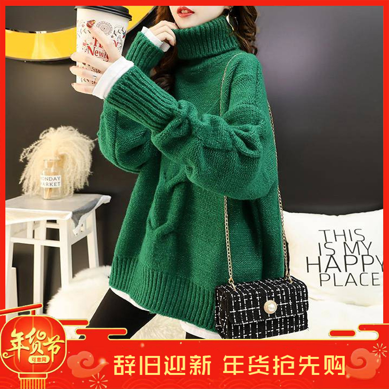 商品名稱:不加絨麻花高領(lǐng)毛衣套頭女加厚慵懶風(fēng)寬松針織衫2019新款冬