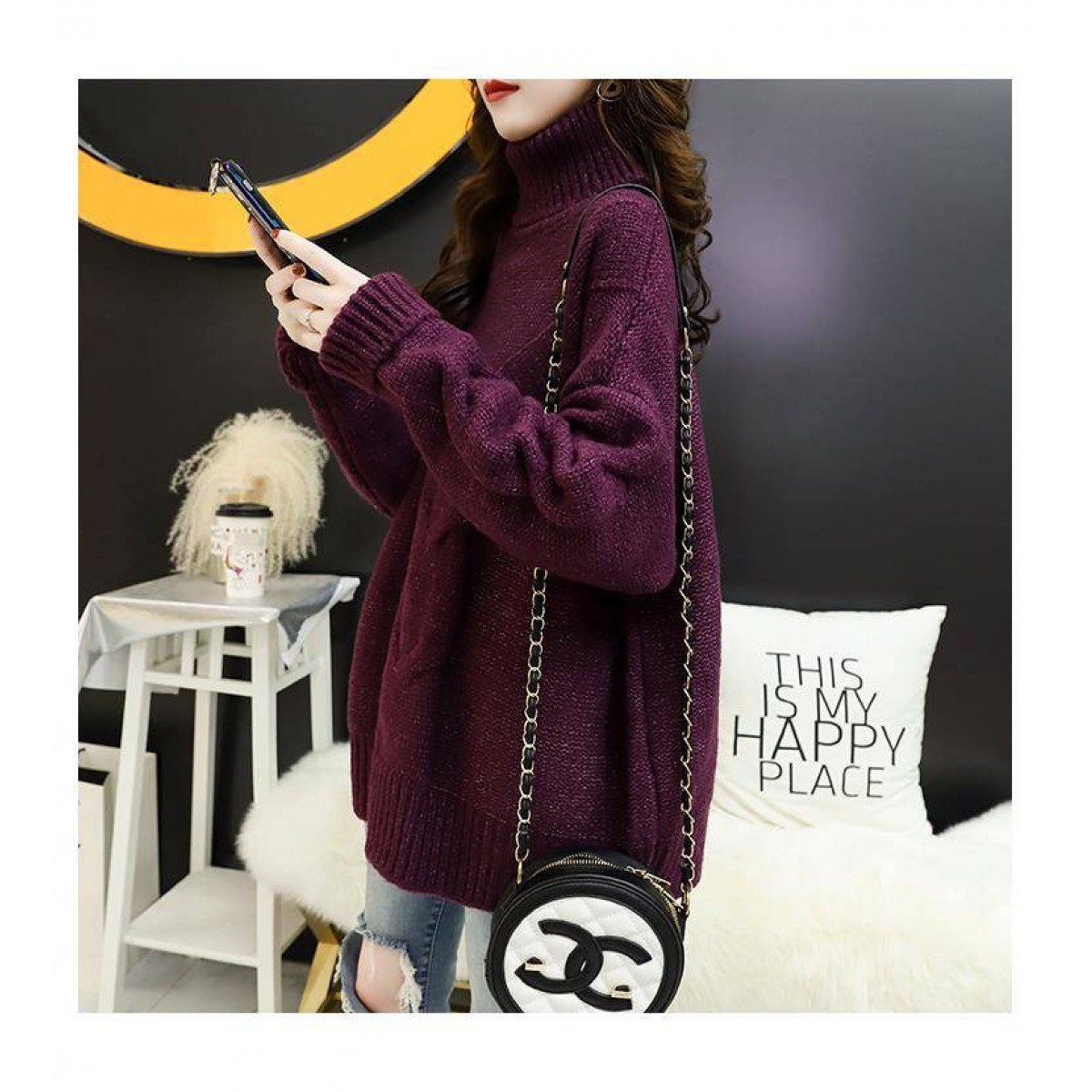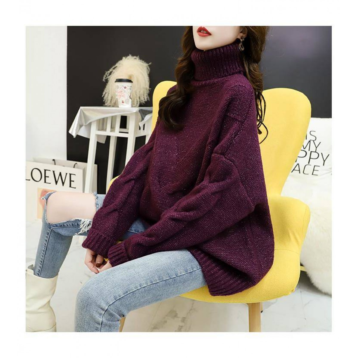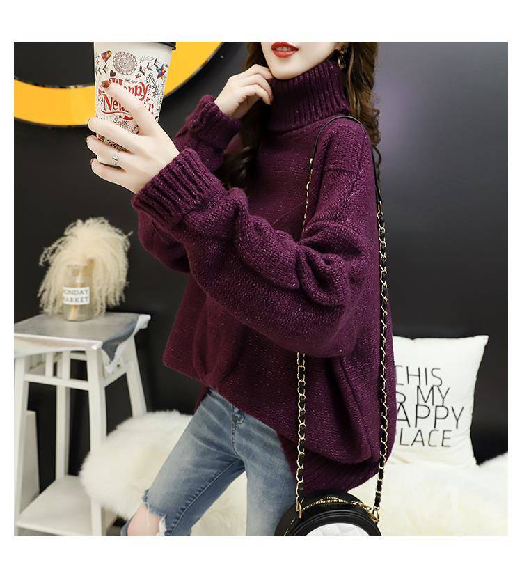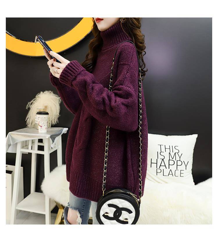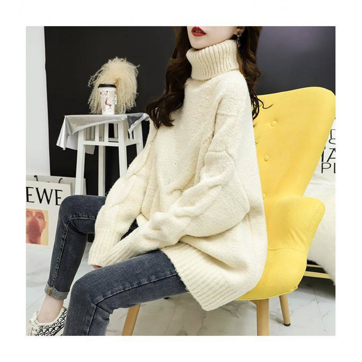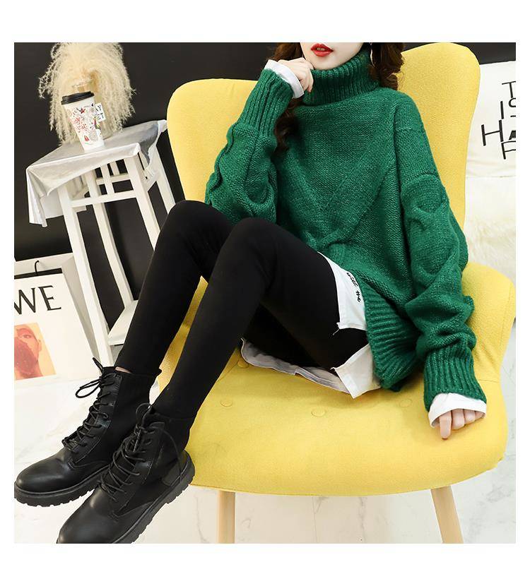 商品名稱:不加絨麻花高領(lǐng)毛衣套頭女加厚慵懶風(fēng)寬松針織衫2019新款冬