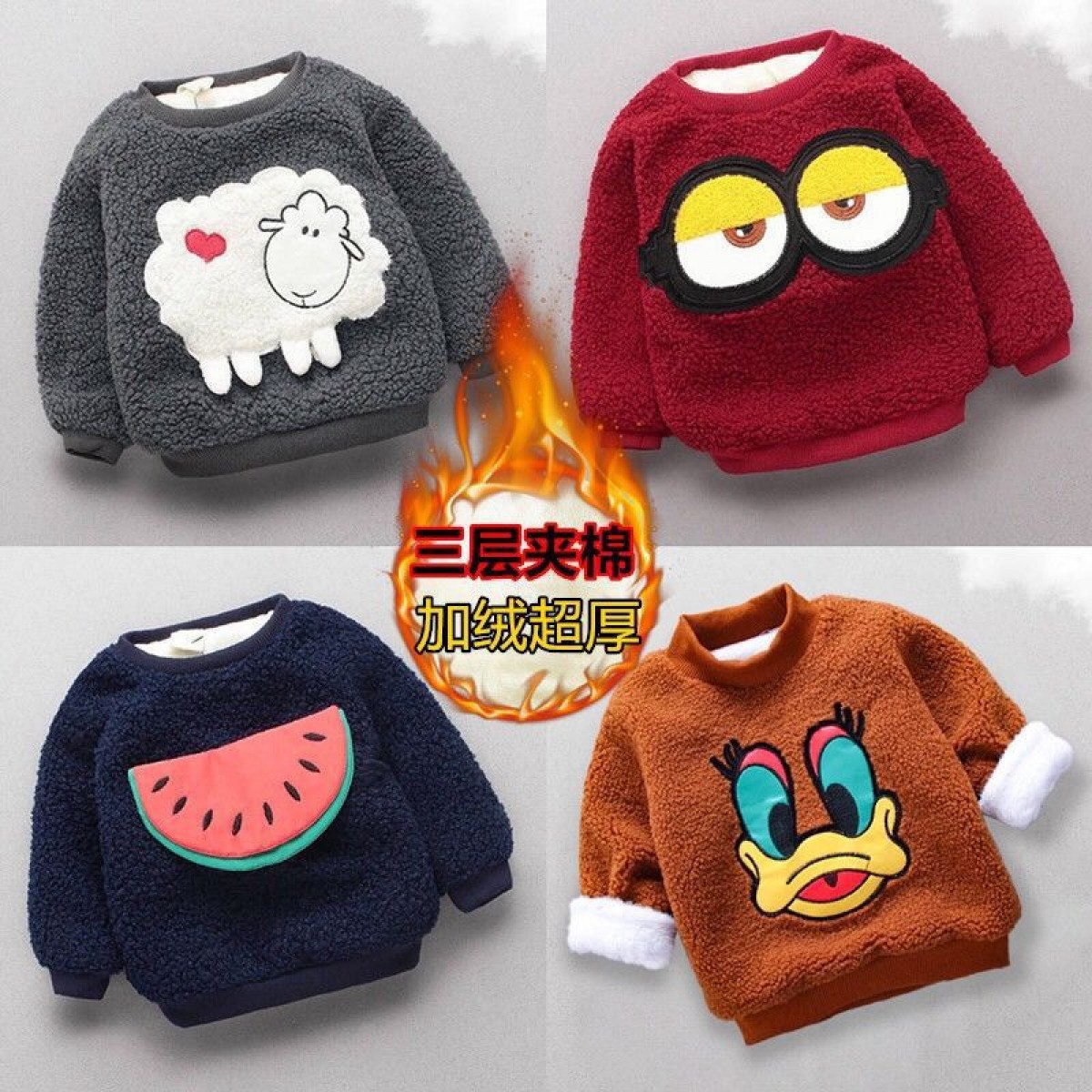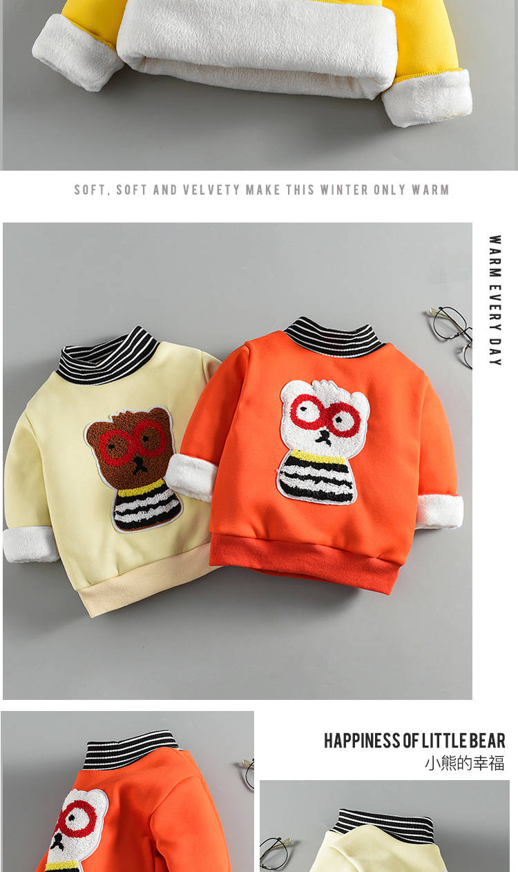 商品名稱(chēng):2019新款泰迪絨男童女童加絨加厚衛(wèi)衣0-6歲寶寶高領(lǐng)冬裝兒童裝-潮