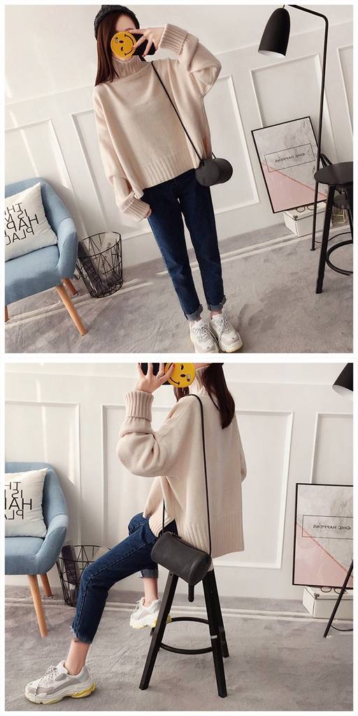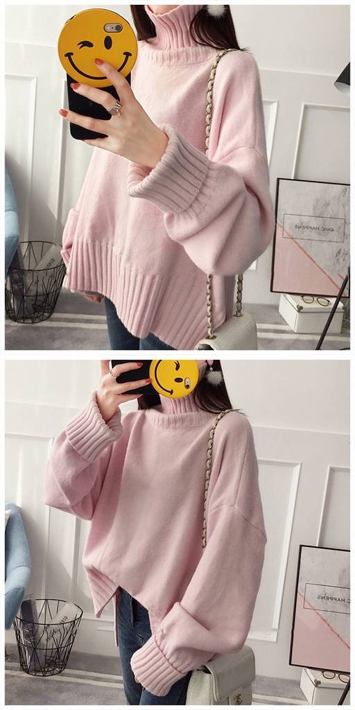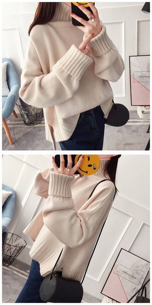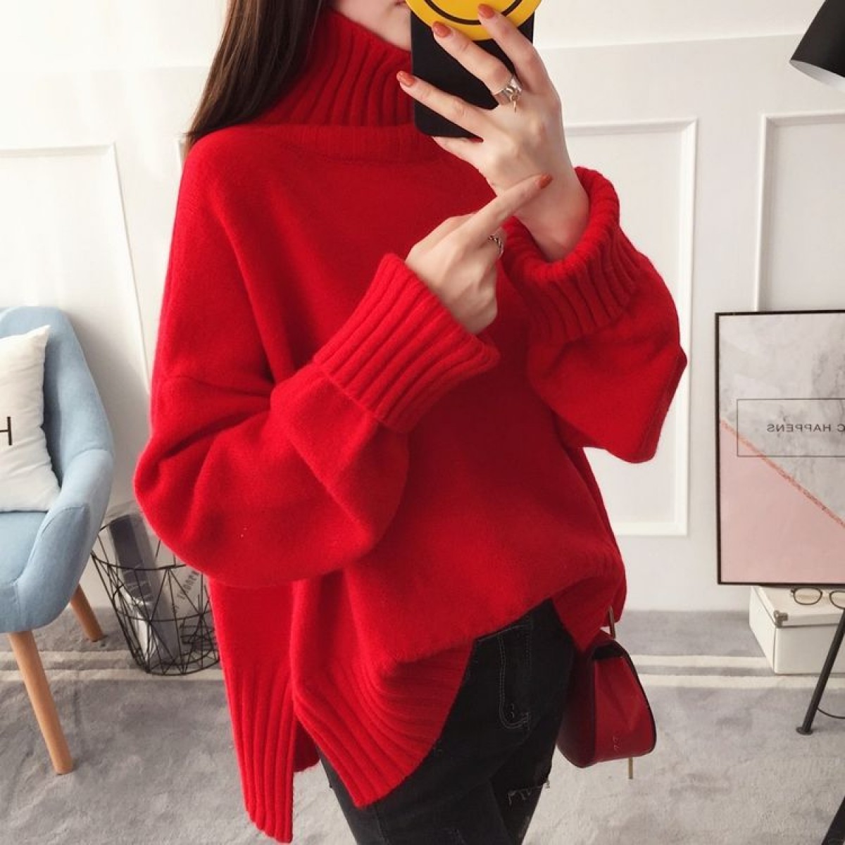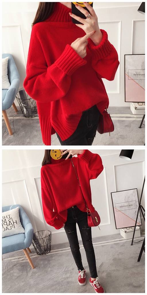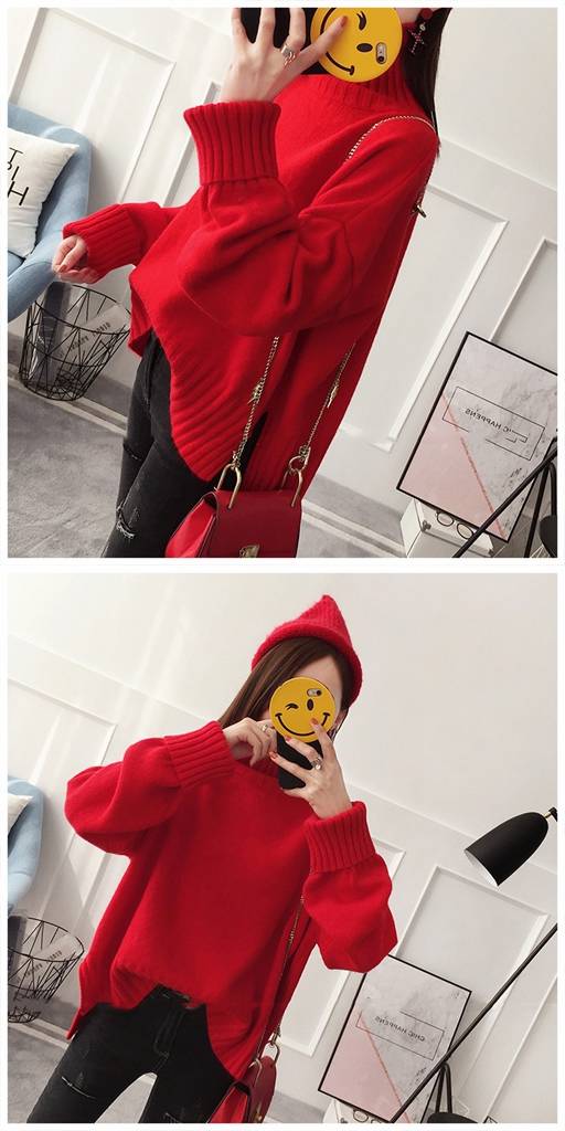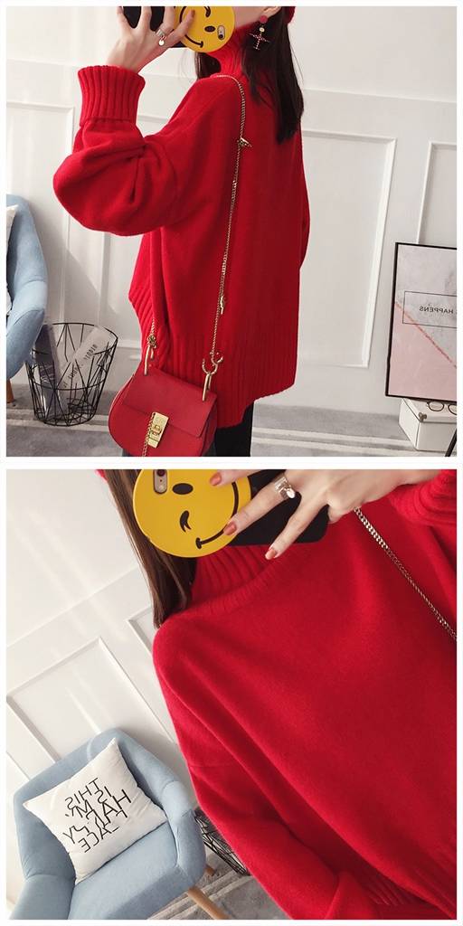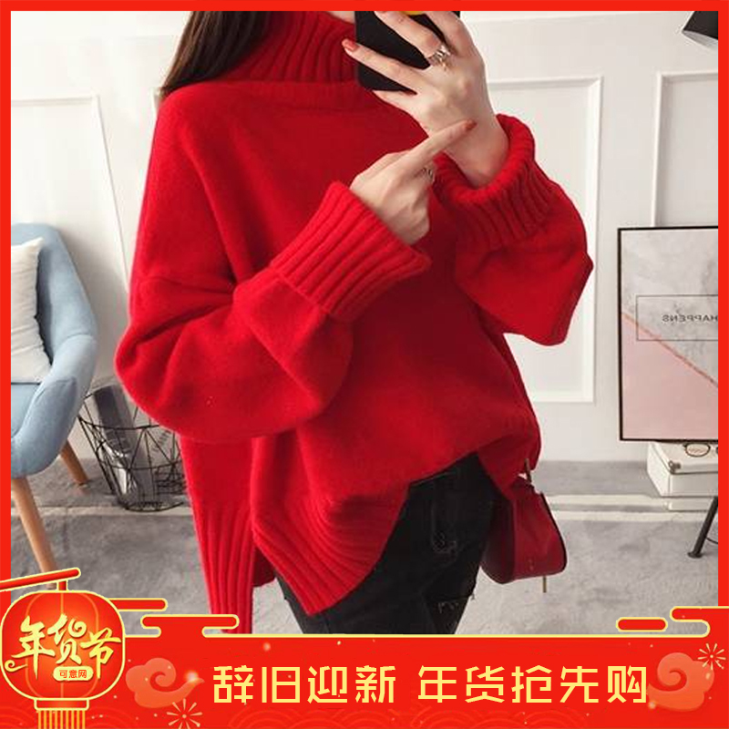 商品名稱:不加絨紅色毛衣女秋冬新款打底韓版高領(lǐng)學(xué)生寬松套頭針織衫
