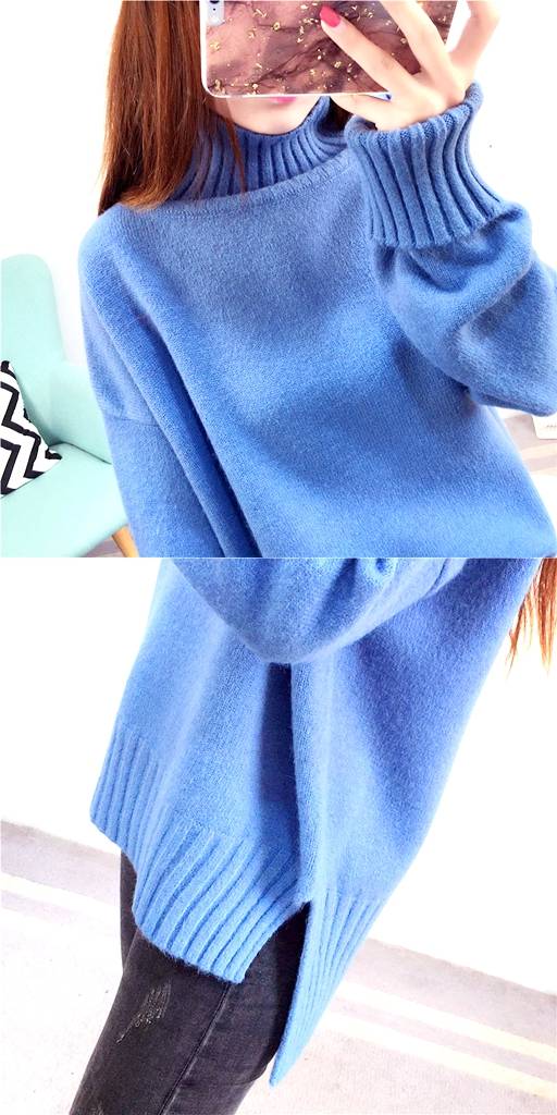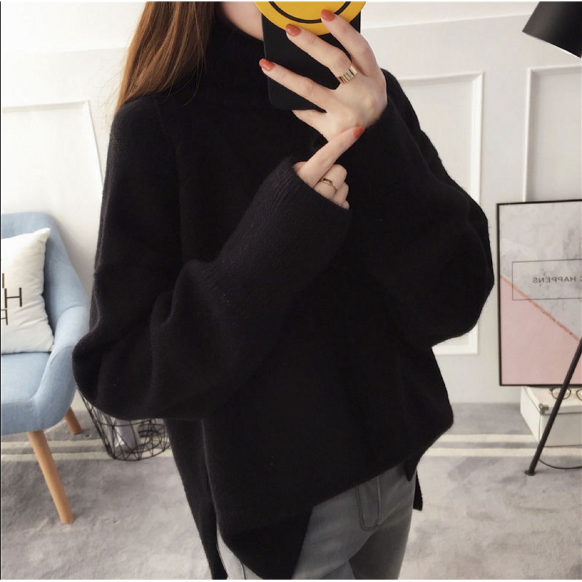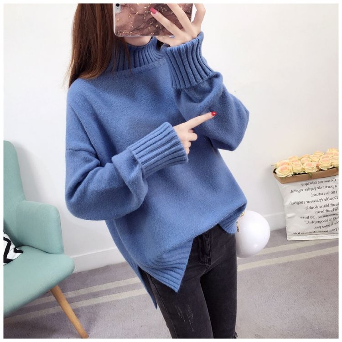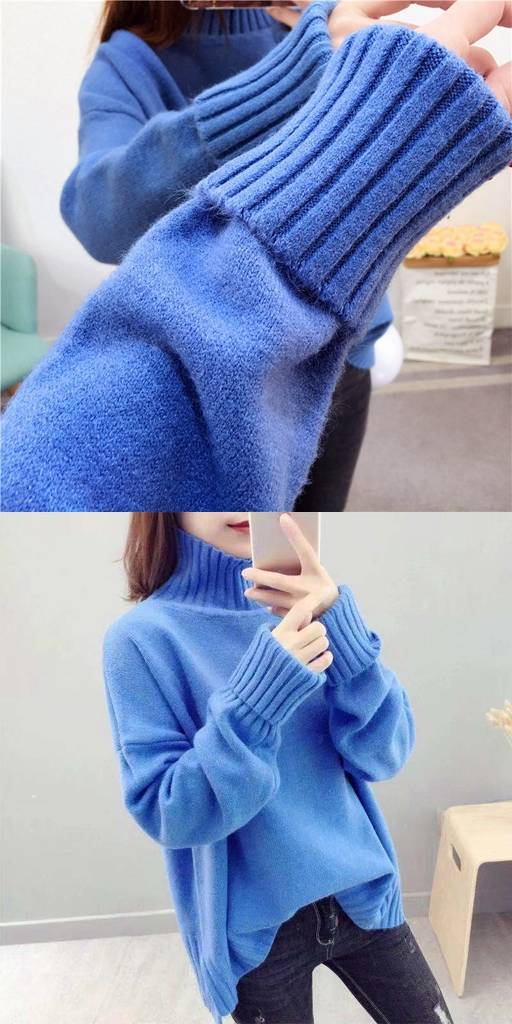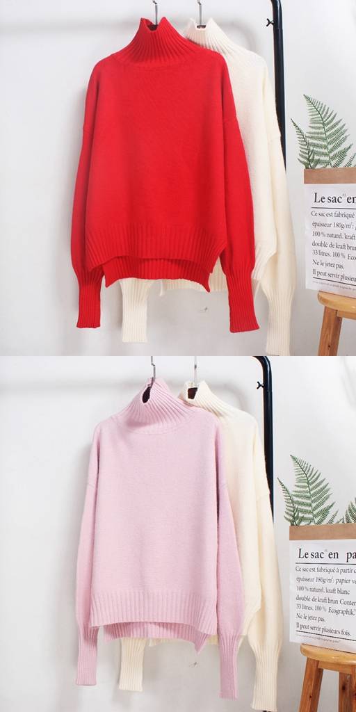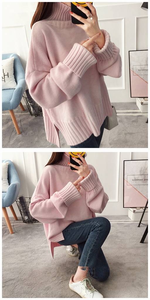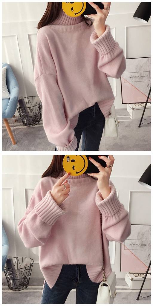 商品名稱:不加絨紅色毛衣女秋冬新款打底韓版高領(lǐng)學(xué)生寬松套頭針織衫