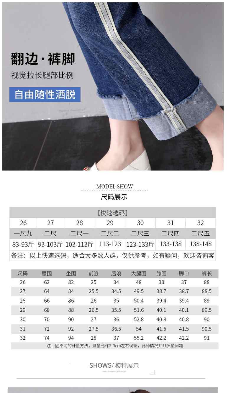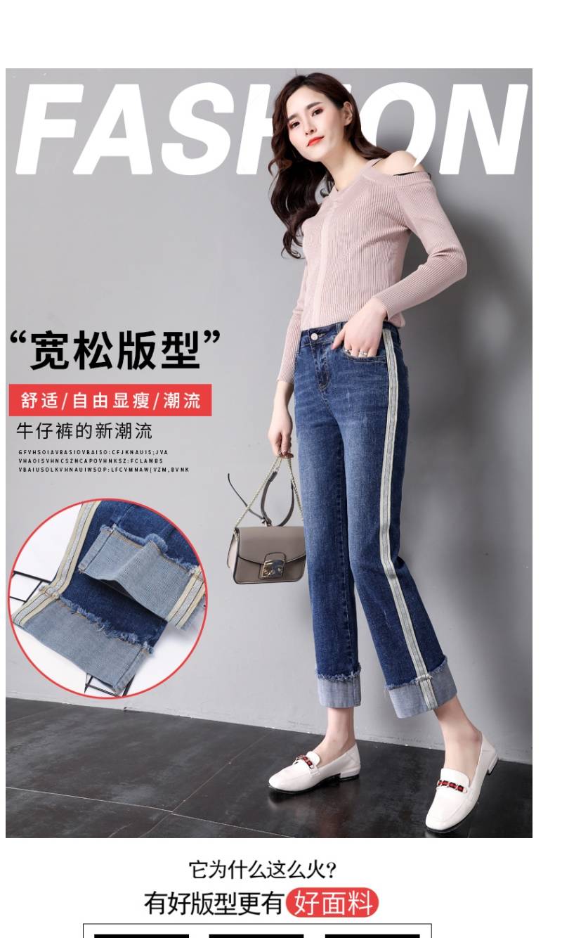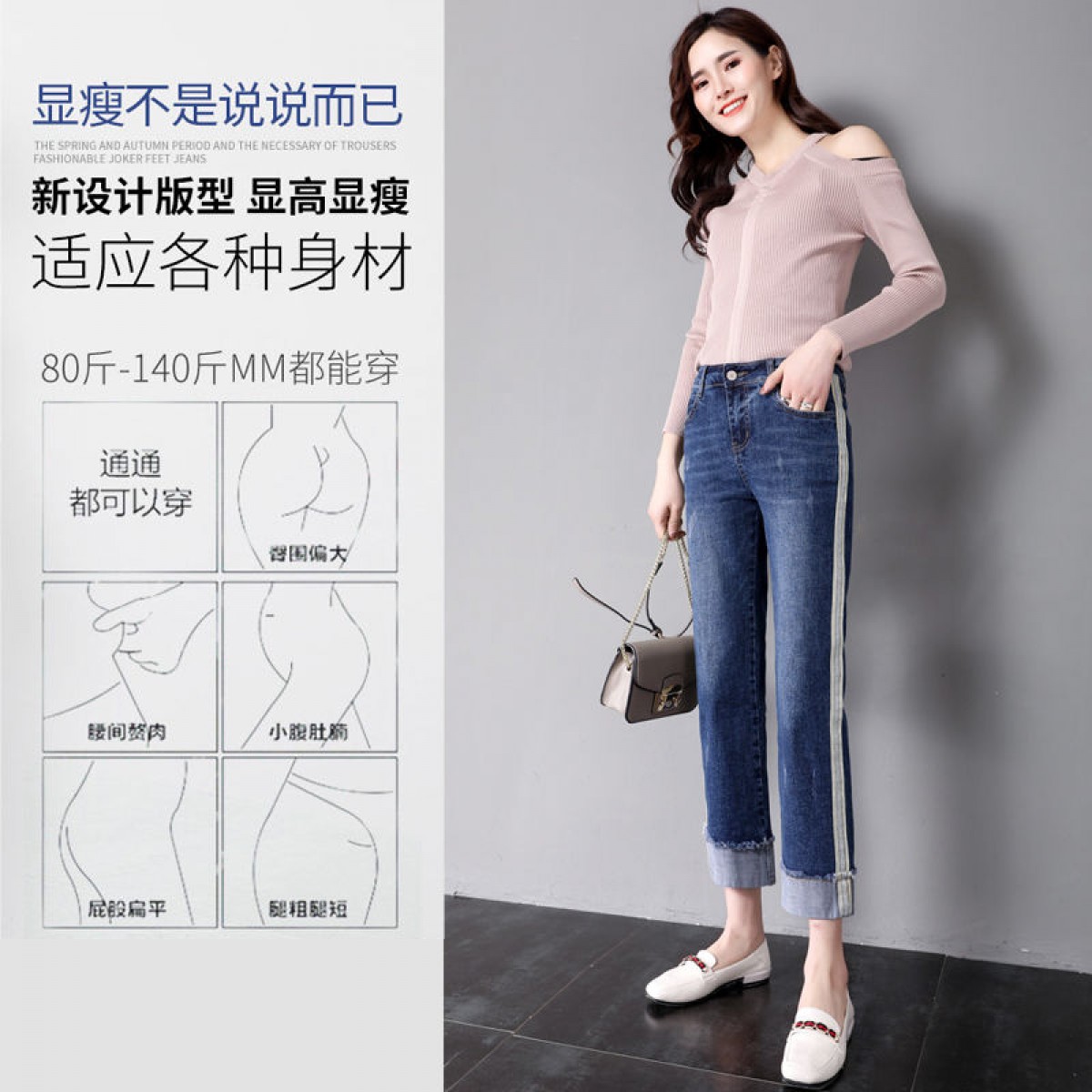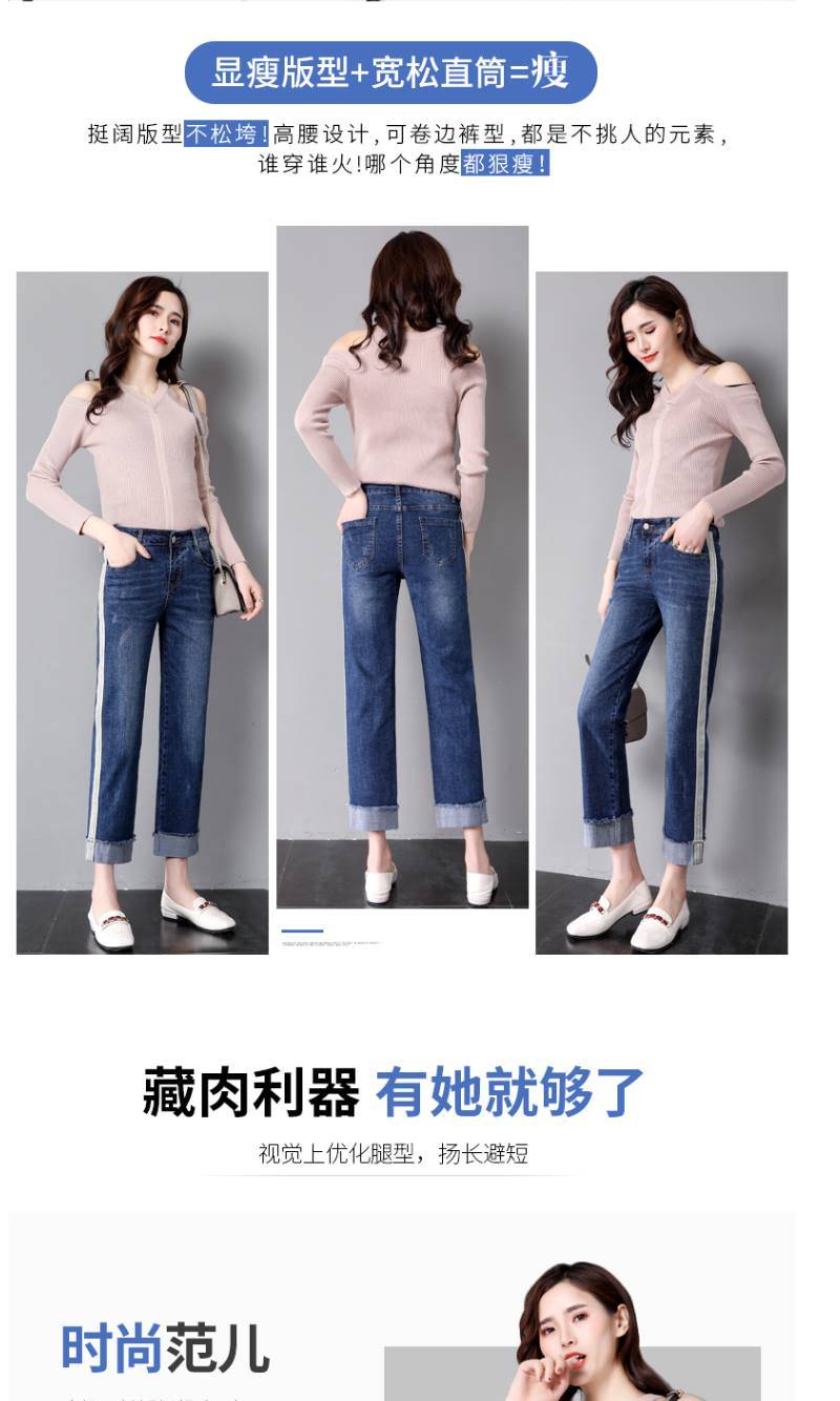 商品名稱:直筒牛仔褲女2019秋季新款寬松高腰闊腿褲翻邊顯瘦百搭女士褲