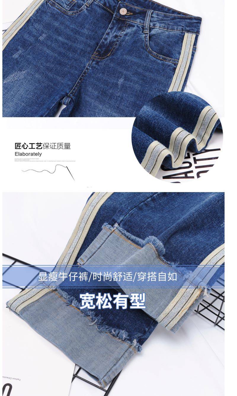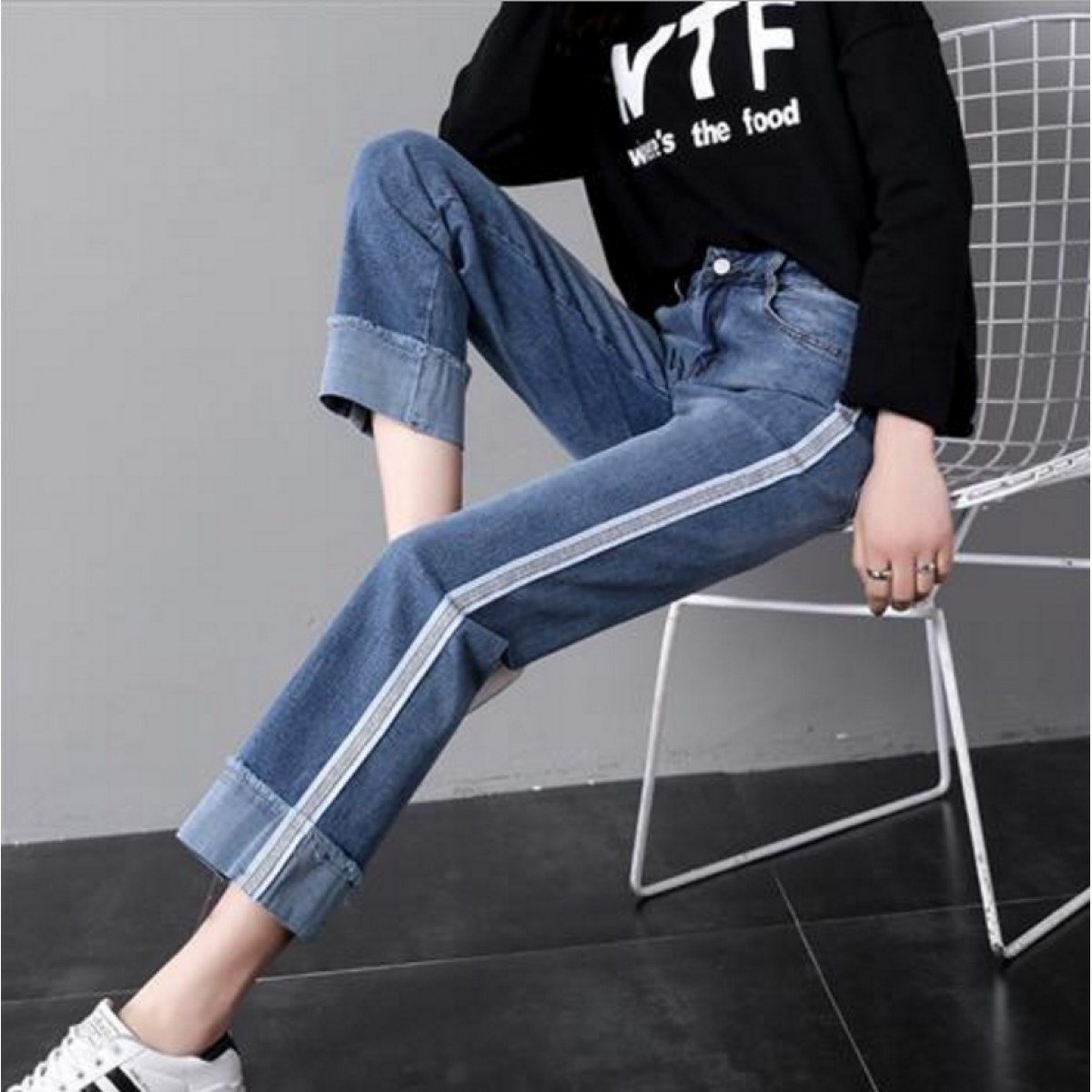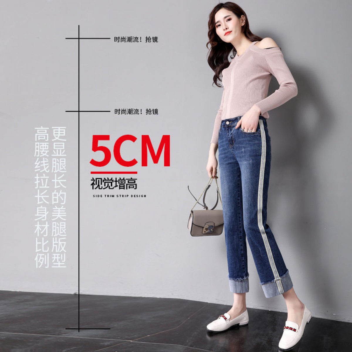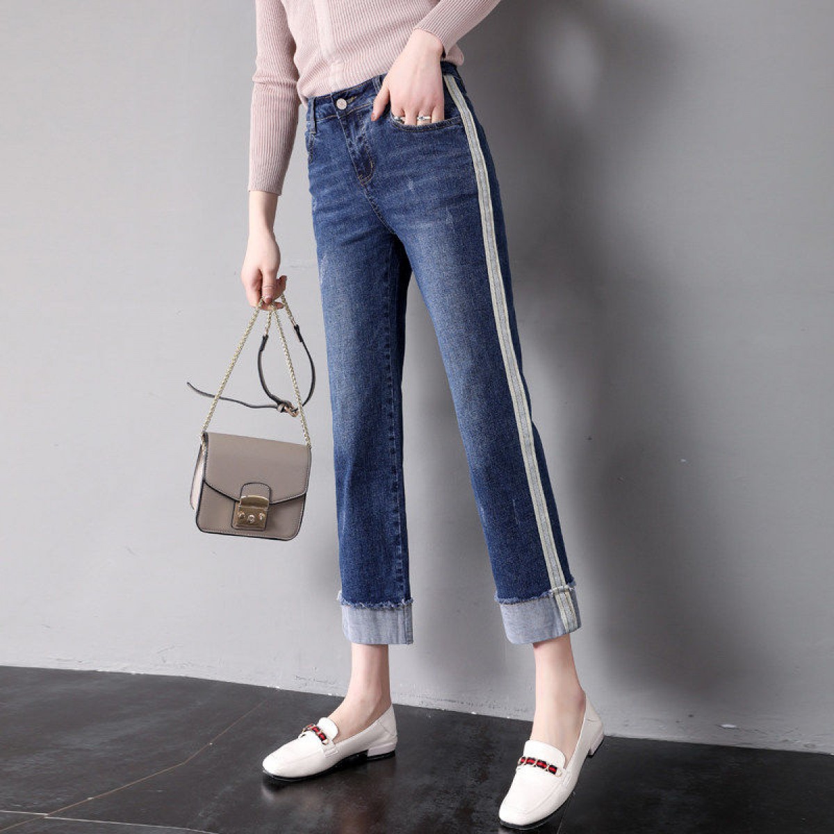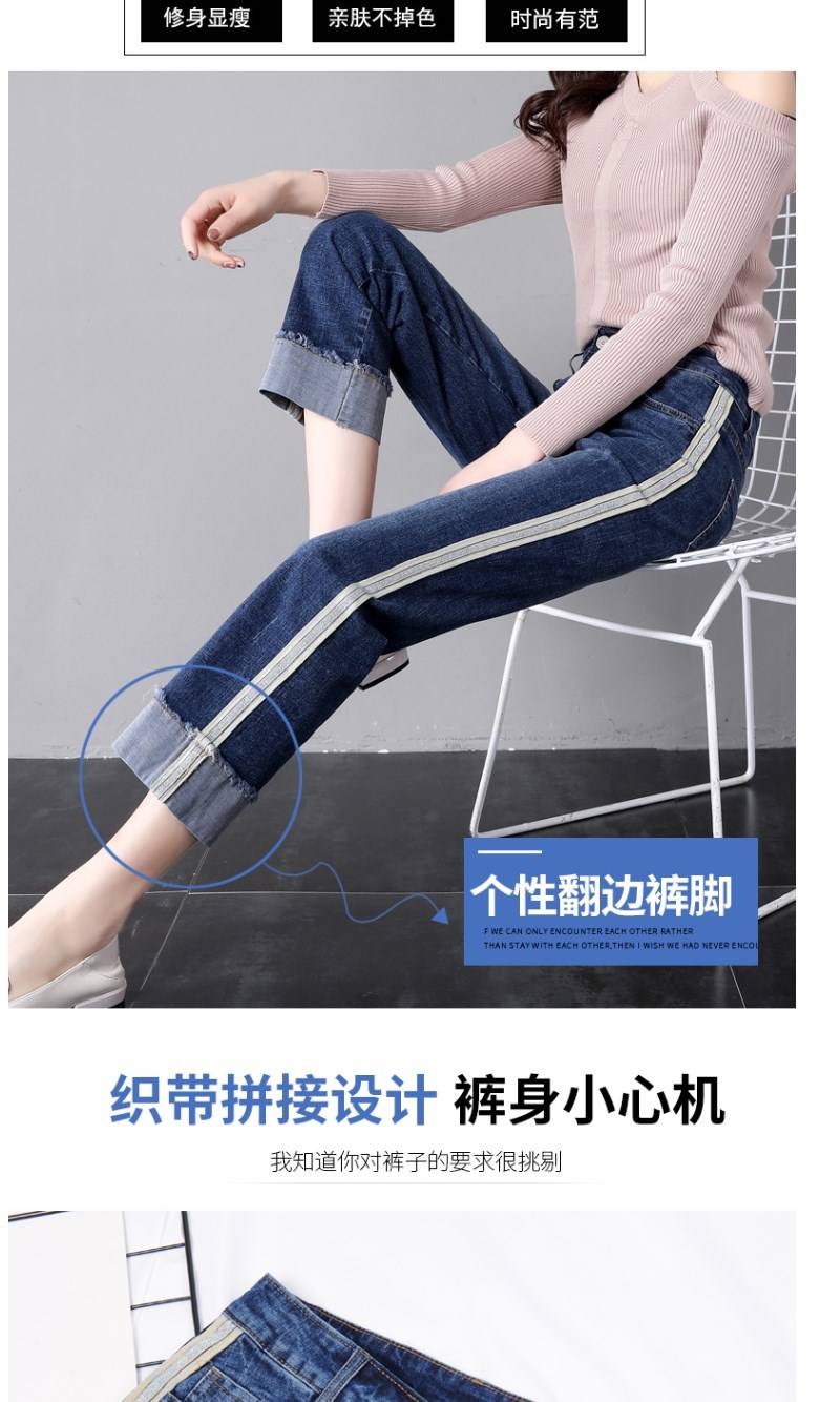 商品名稱:直筒牛仔褲女2019秋季新款寬松高腰闊腿褲翻邊顯瘦百搭女士褲