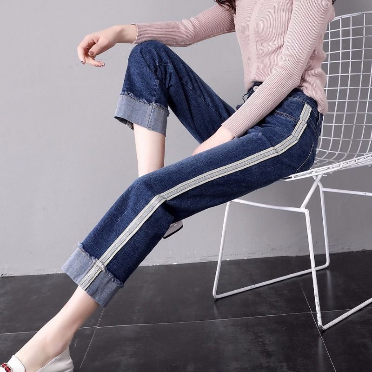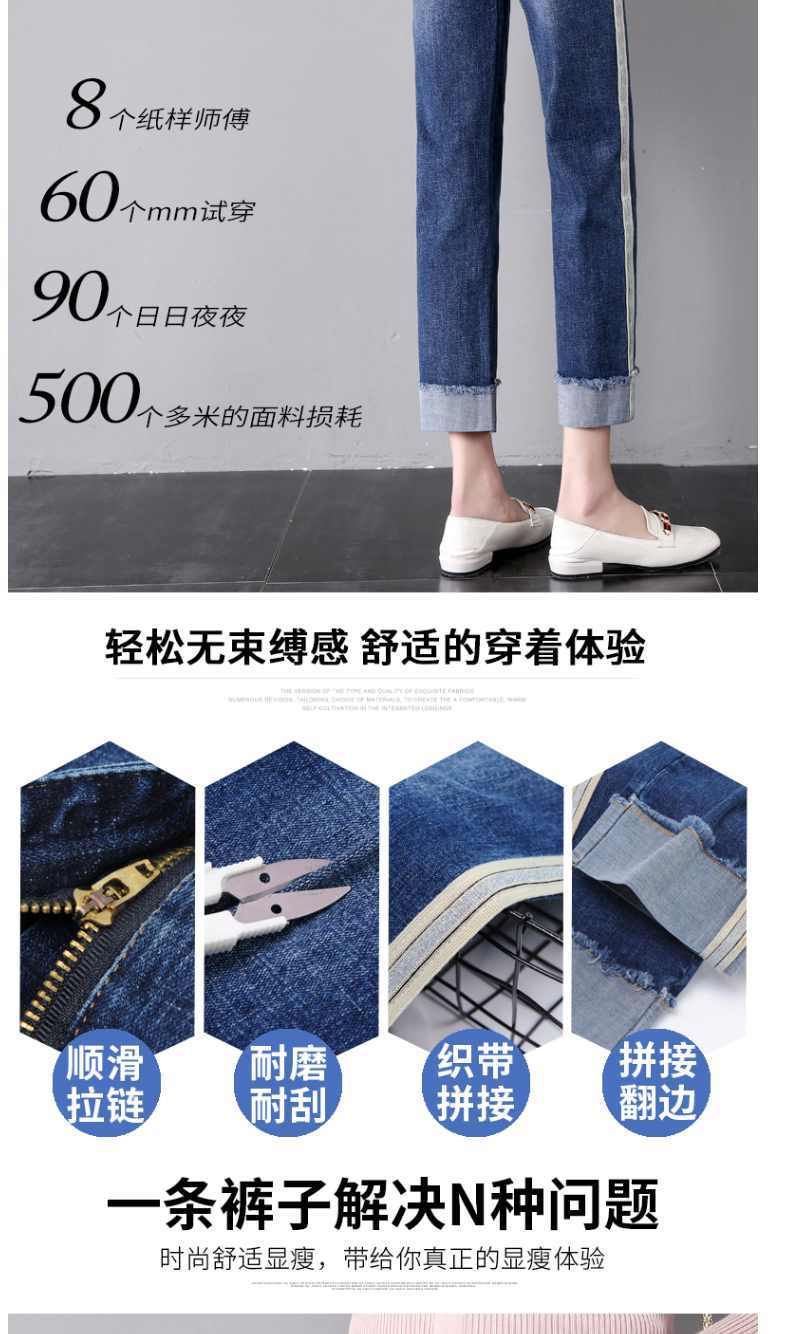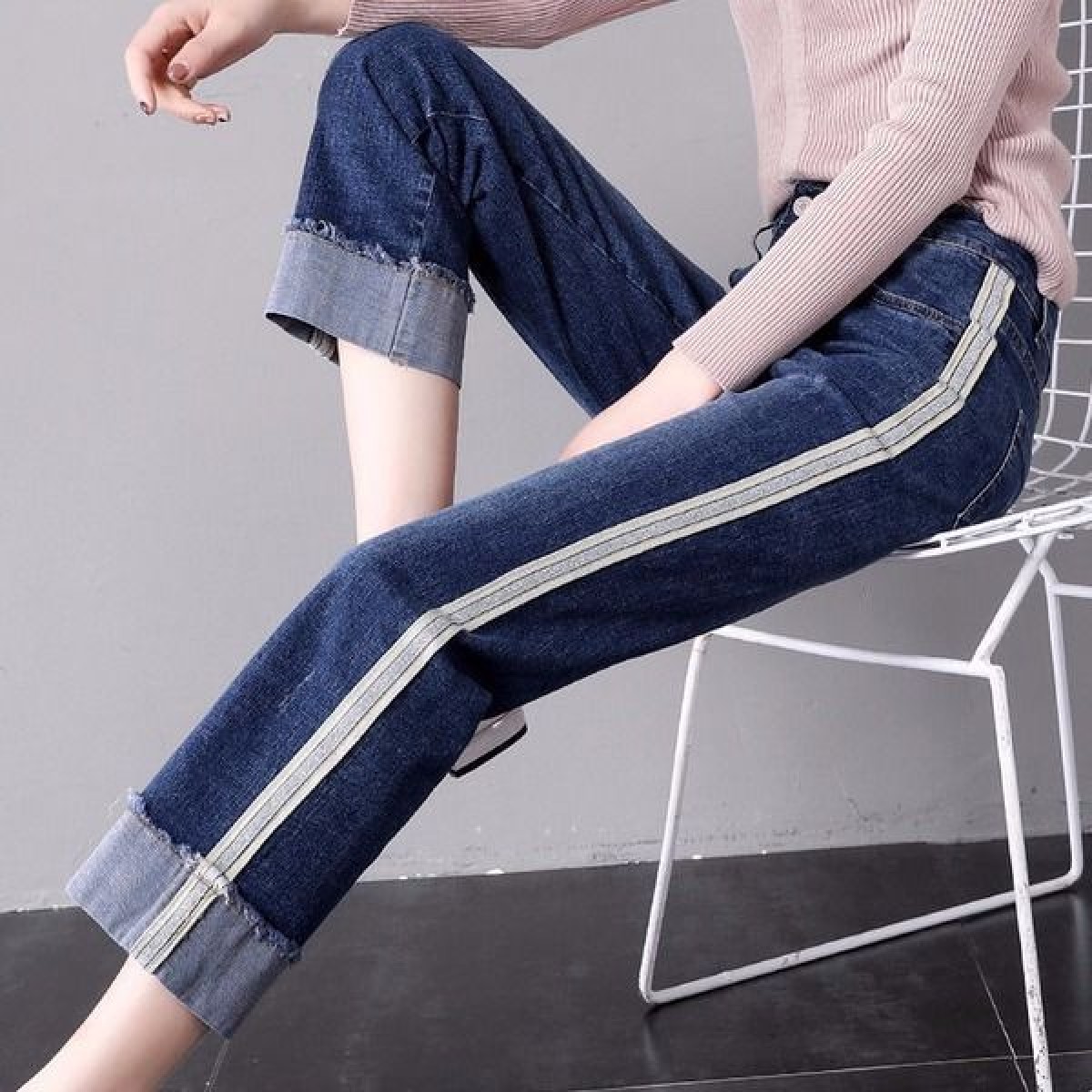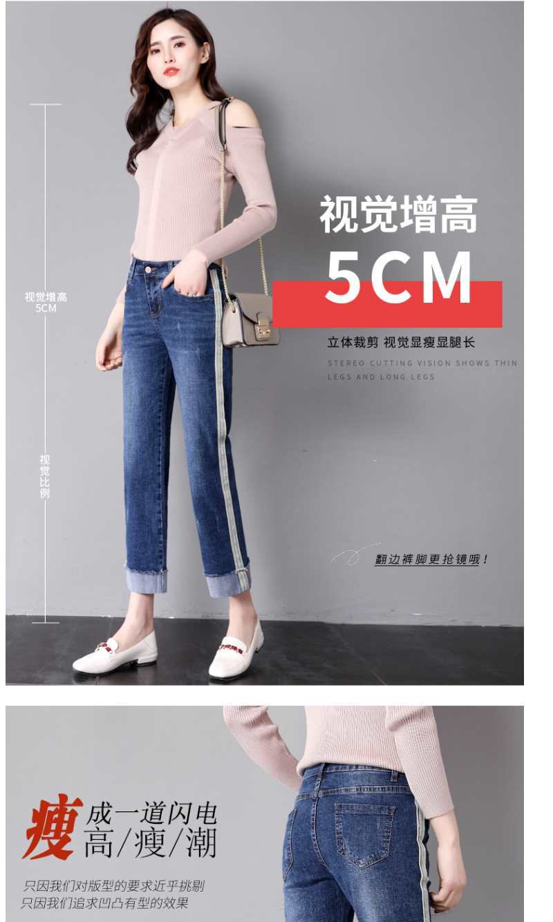 商品名稱:直筒牛仔褲女2019秋季新款寬松高腰闊腿褲翻邊顯瘦百搭女士褲