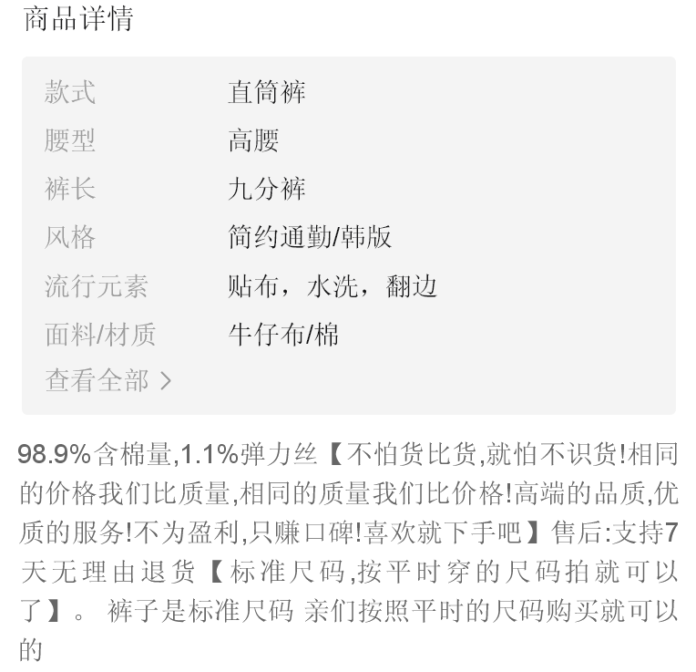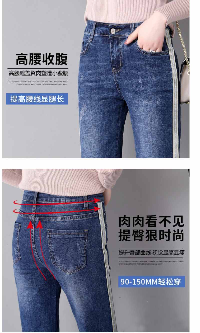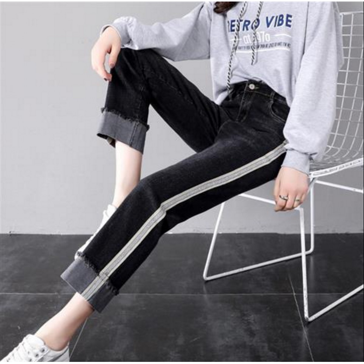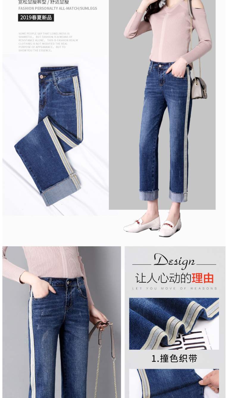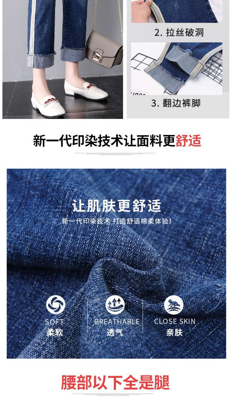 商品名稱:直筒牛仔褲女2019秋季新款寬松高腰闊腿褲翻邊顯瘦百搭女士褲