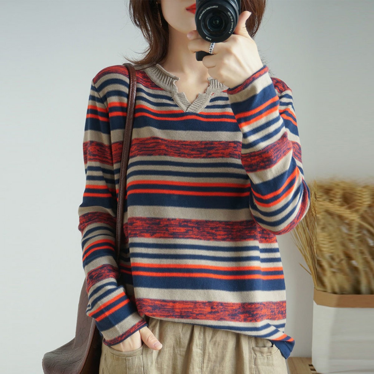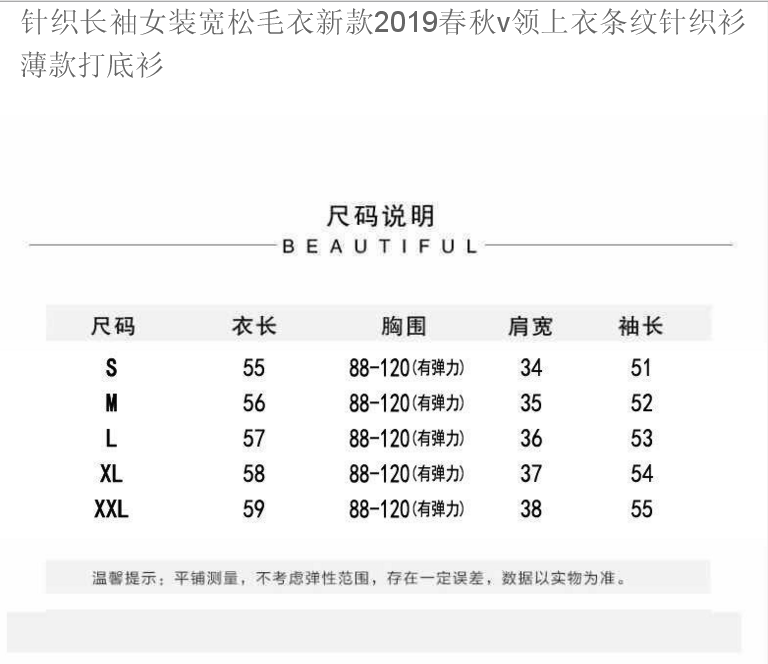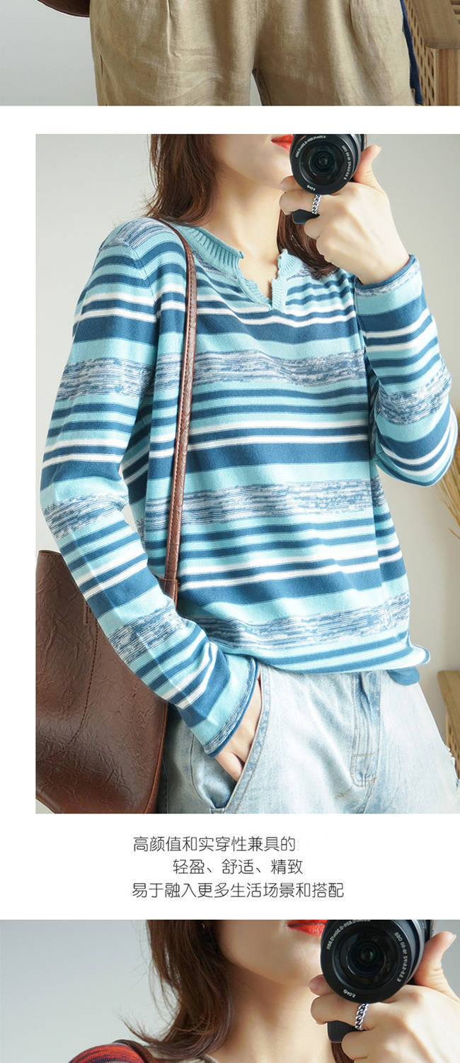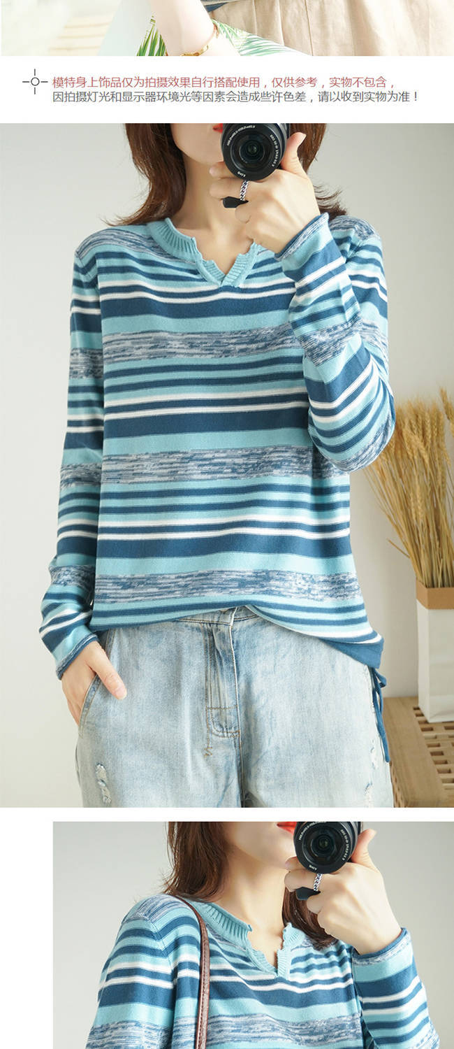 商品名稱:針織長(zhǎng)袖女裝寬松毛衣新款2019春秋v領(lǐng)上衣條紋針織衫薄款打底衫