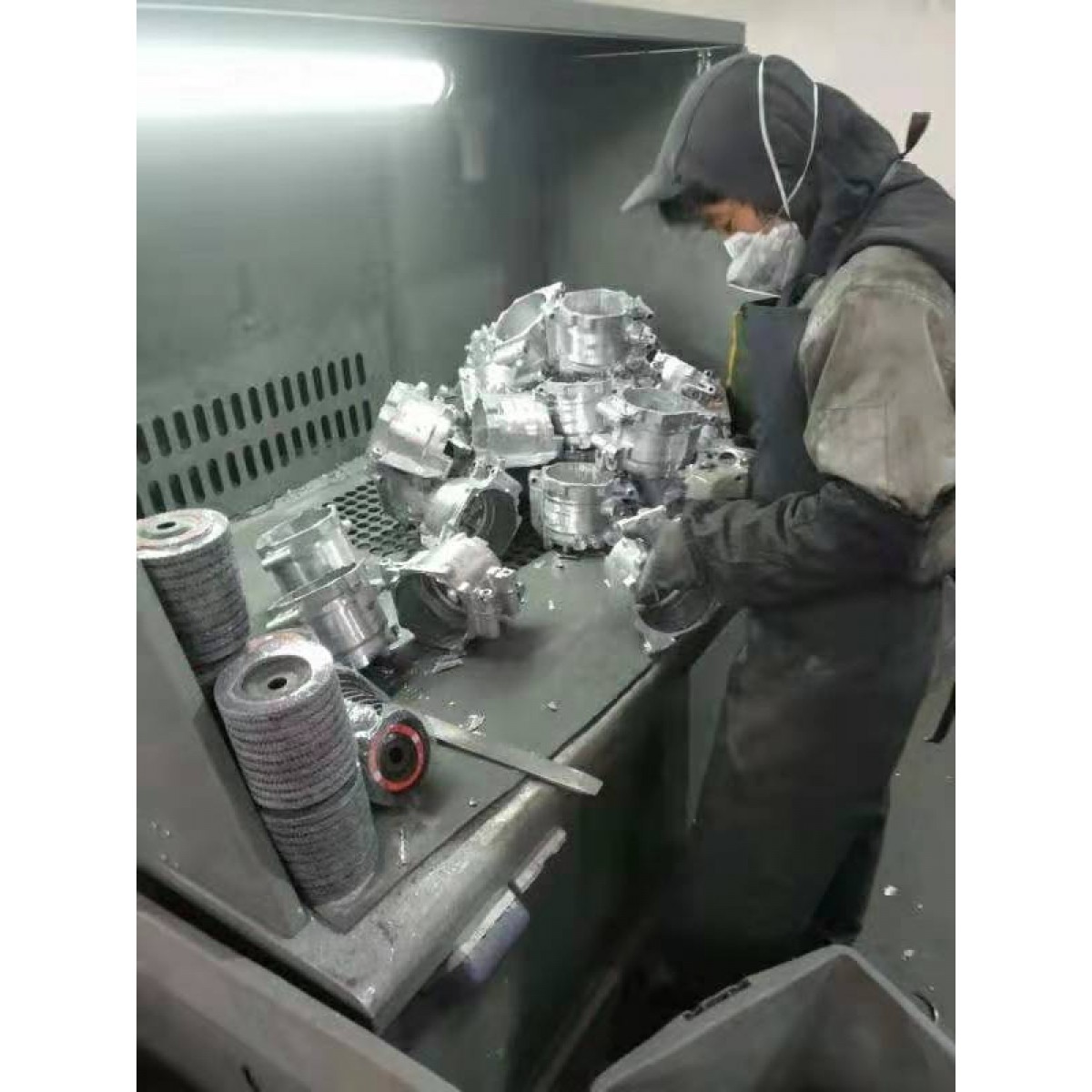 打磨車間:無需學(xué)歷.只要能吃苦耐勞.用小型磨光機(jī)打磨產(chǎn)品毛邊.