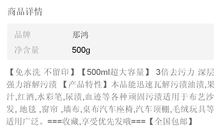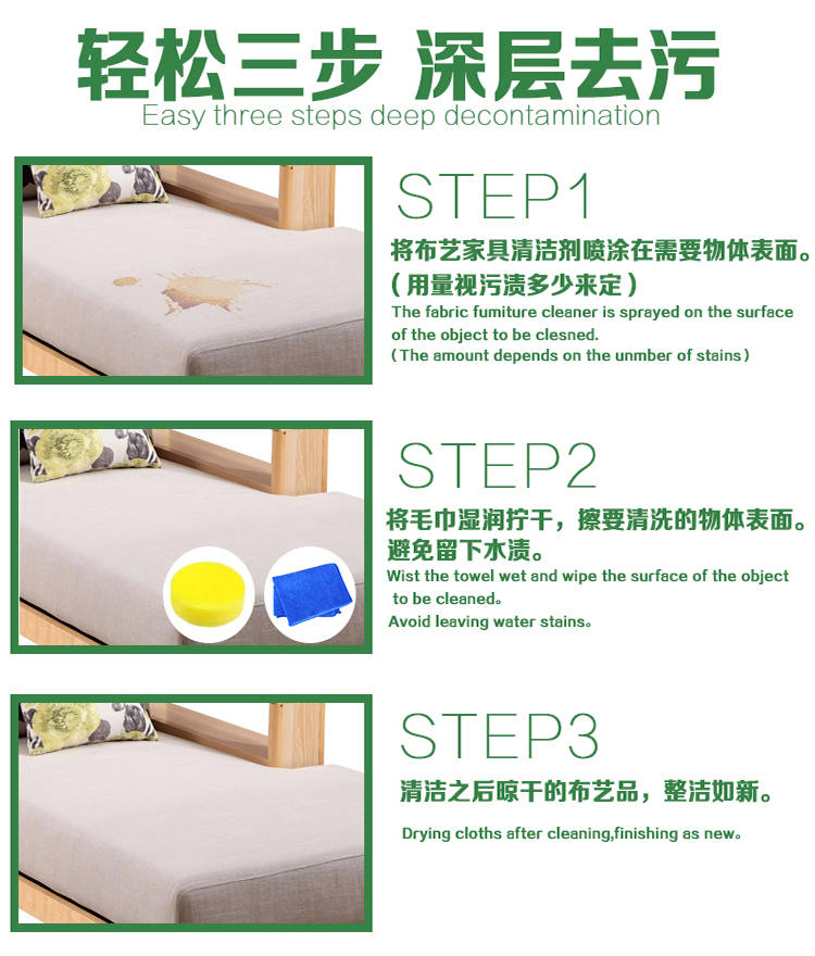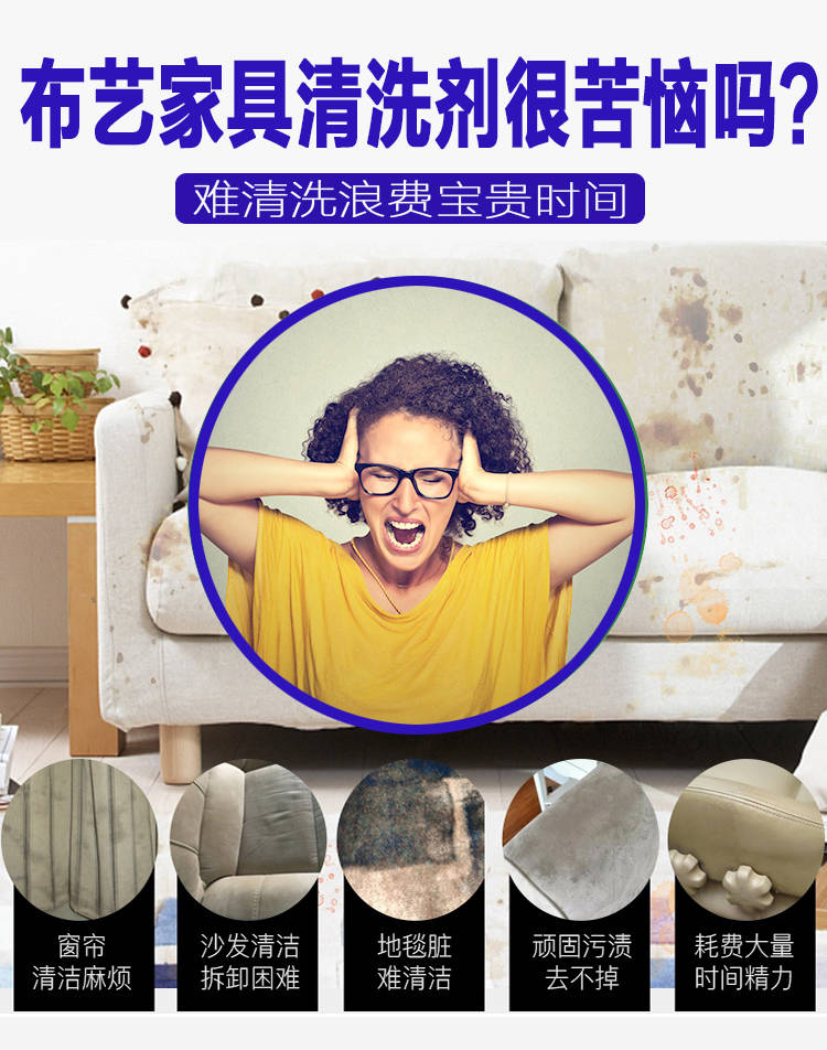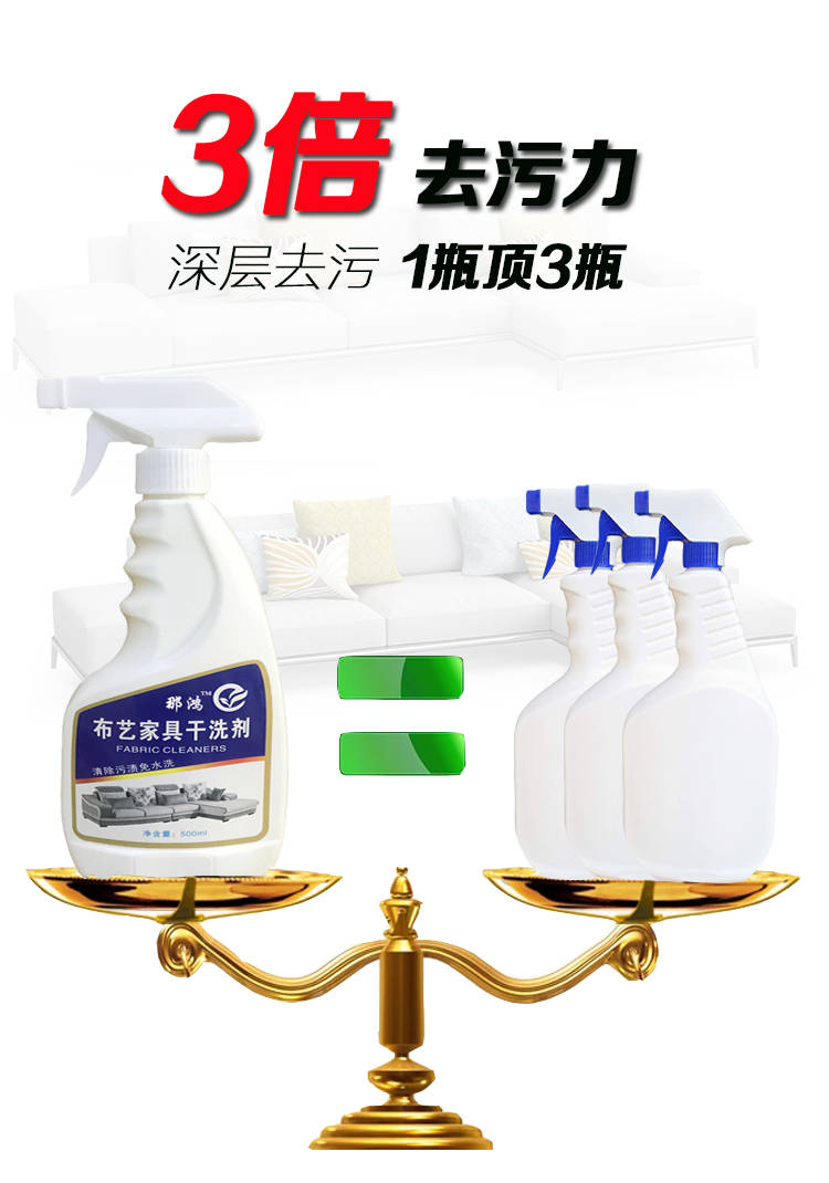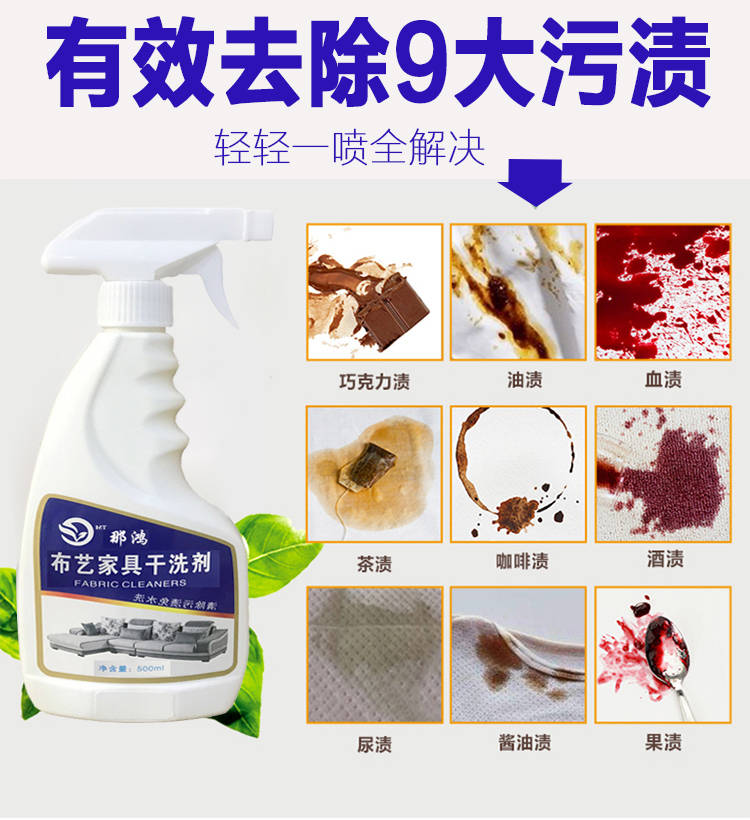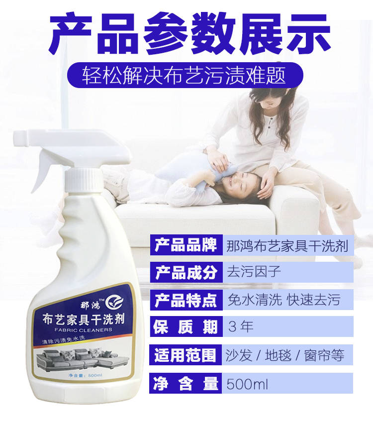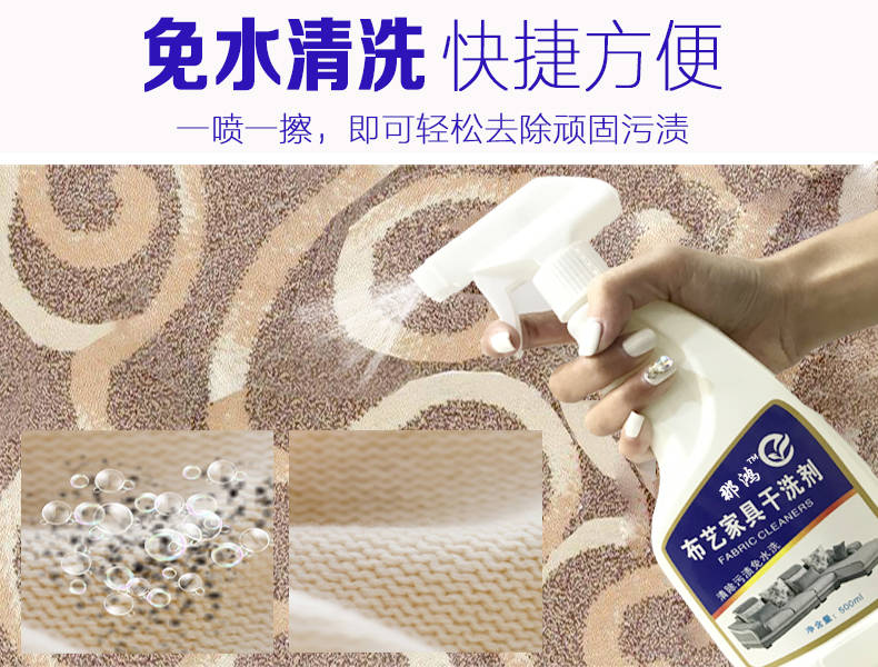 商品名稱:布藝沙發(fā)清洗劑免水洗去污強(qiáng)力干洗劑家用地毯床墊墻布清潔劑神器/500g