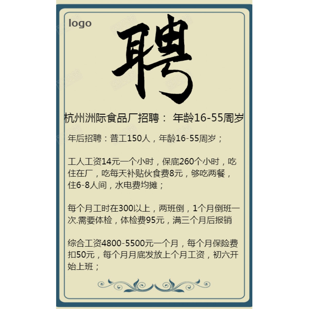年后招聘:普工150人,年齡16-55周歲,工人工資14元一個小時,保底260個小時,吃住在廠,吃每天補貼伙食費8元,夠吃兩餐,住6-8人間,水電費均攤,每個月工時在300以上,兩班倒,1個月倒班一次.需要體檢,體檢費95元,滿三個月后報銷,綜合工資4800-5500元一個月,每個月保險費扣50元,每個月月底發(fā)放上個月工資,初六開始上班。