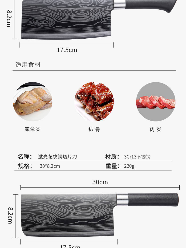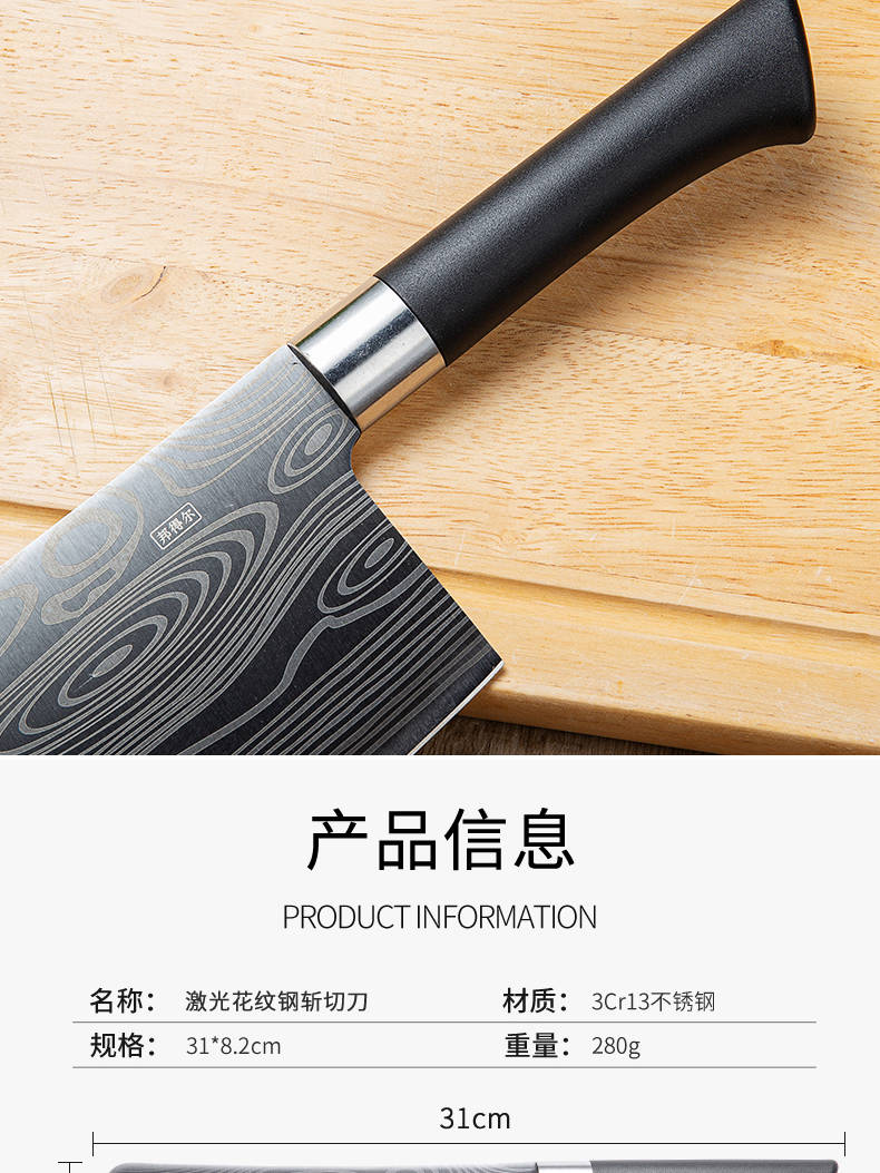 商品名稱:家用廚房菜刀德國工藝不銹鋼切肉刀切片刀鋒利廚師砍骨刀免磨刀具
