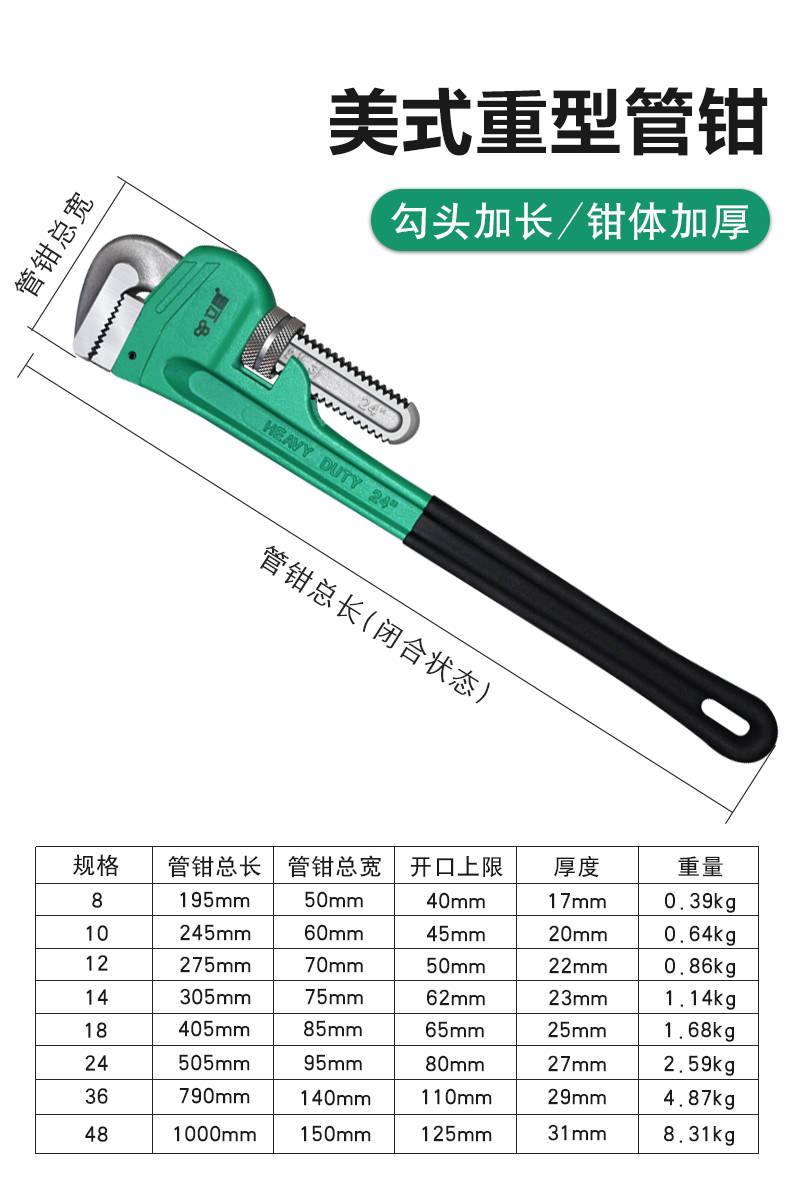 商品名稱:管鉗板手大號小管鉗子家用18寸牙鉗喉鉗多功能管絲鉗水管鉗管子鉗