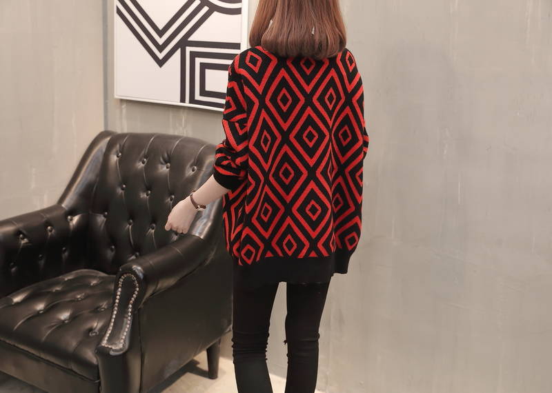 商品名稱:加肥加大碼女裝胖mm毛衣外套春秋寬松顯瘦上衣格子針織開衫200斤