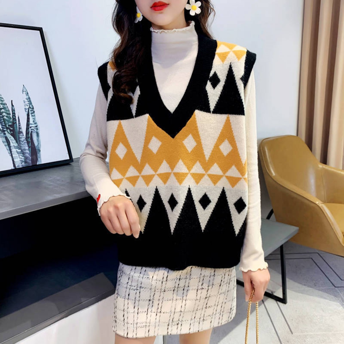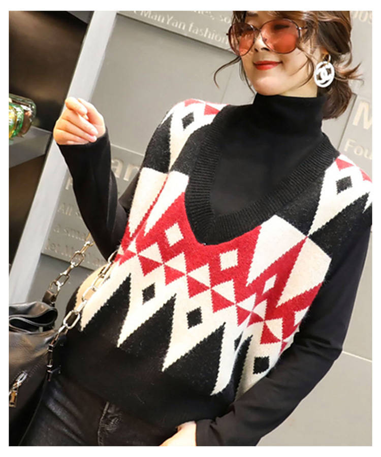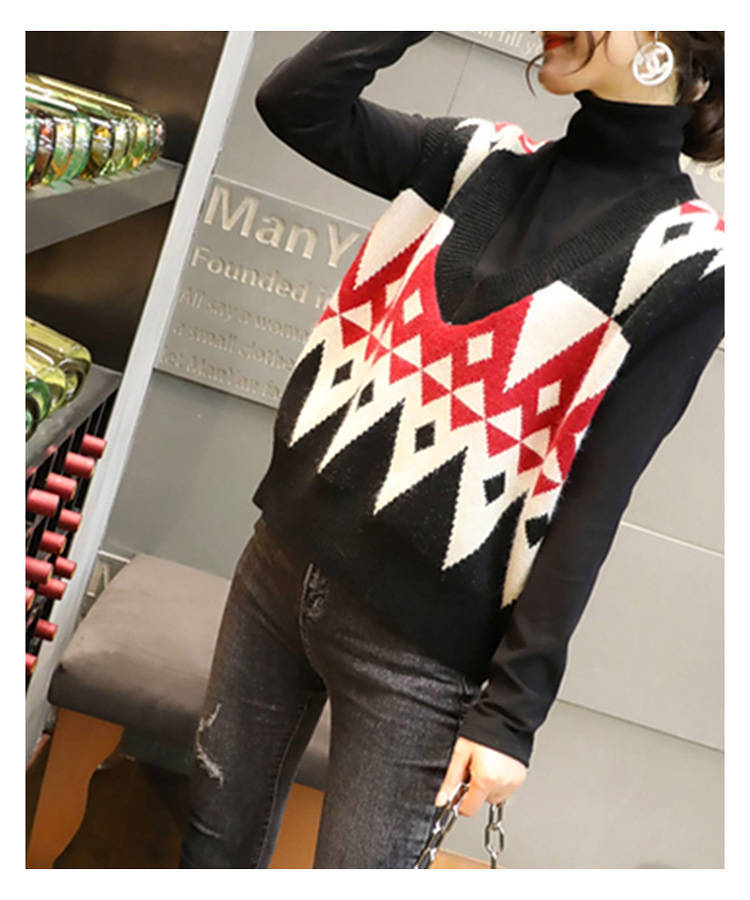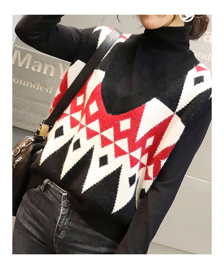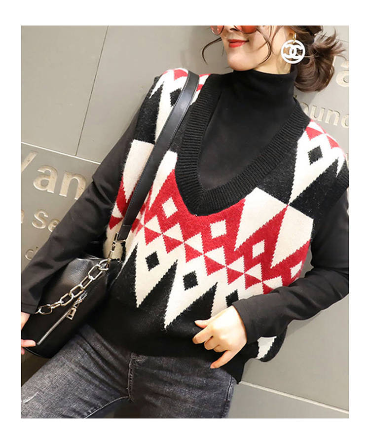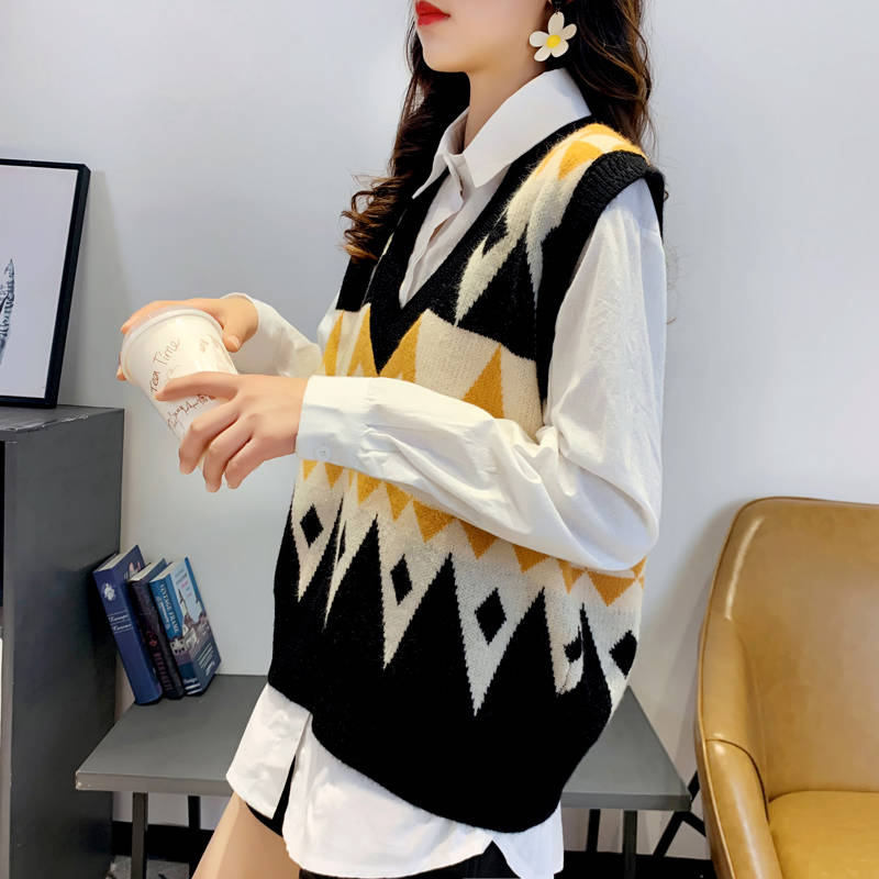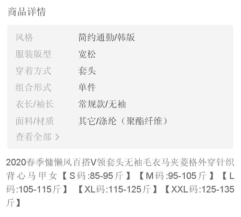 商品名稱:2020春季慵懶風(fēng)百搭V領(lǐng)套頭無(wú)袖毛衣馬夾菱格外穿針織背心馬甲女