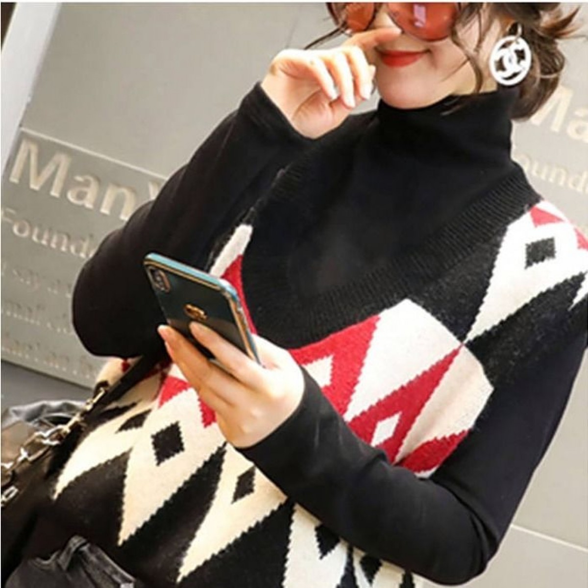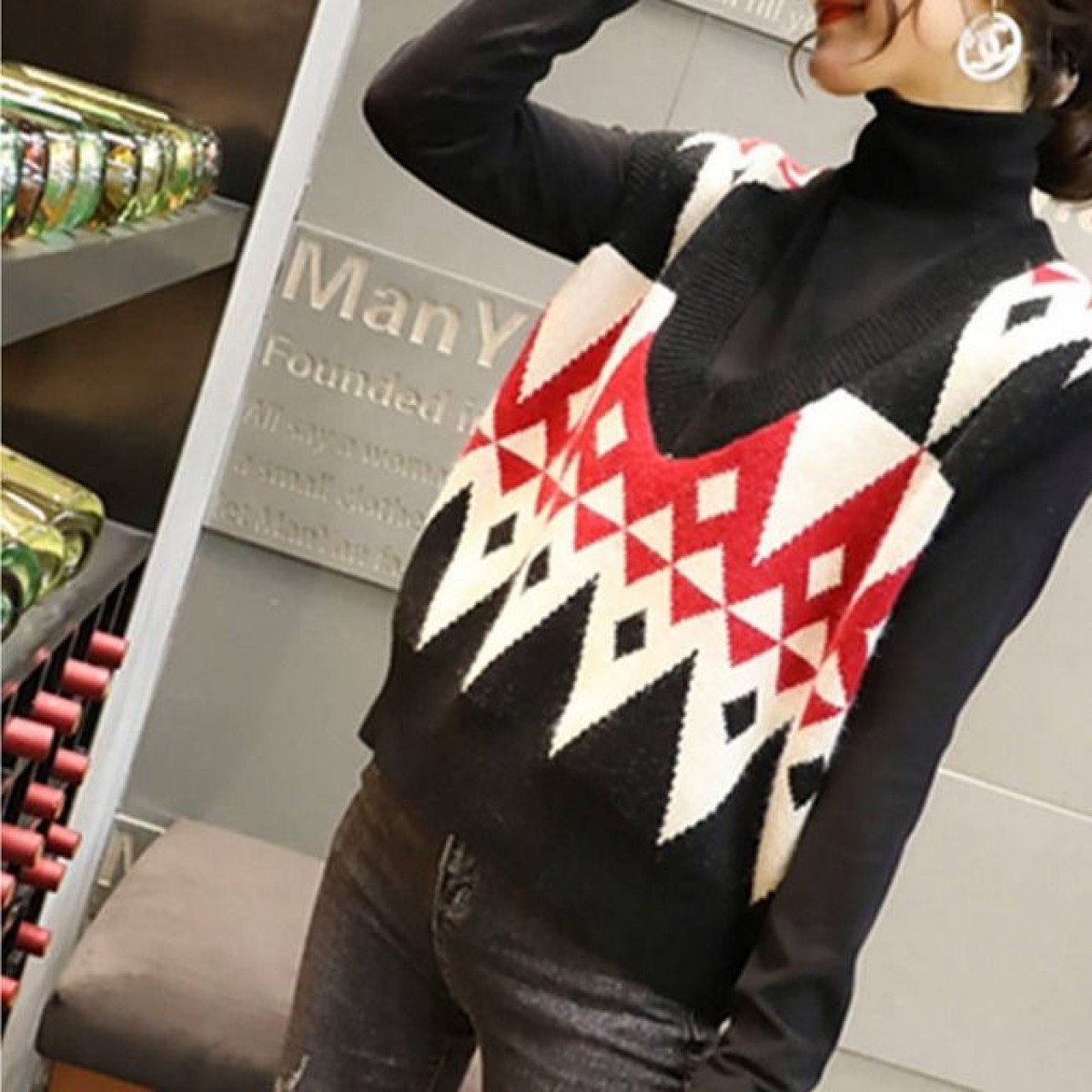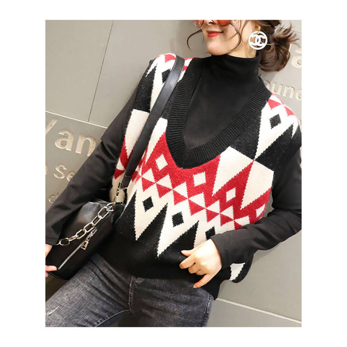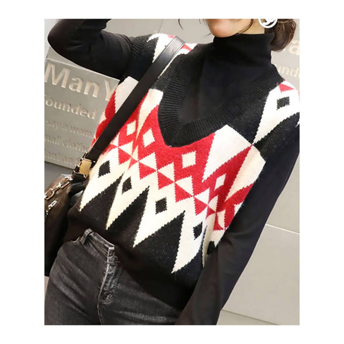 商品名稱:2020春季慵懶風(fēng)百搭V領(lǐng)套頭無(wú)袖毛衣馬夾菱格外穿針織背心馬甲女