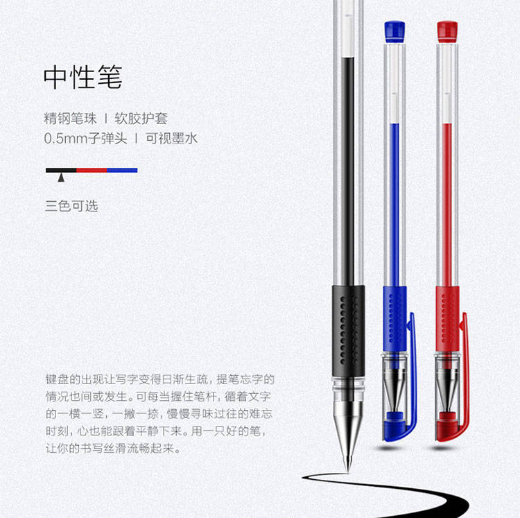 商品名稱:多規(guī)格中性筆黑色筆芯碳素0.5mm學生考試學習用品辦公水性簽字筆