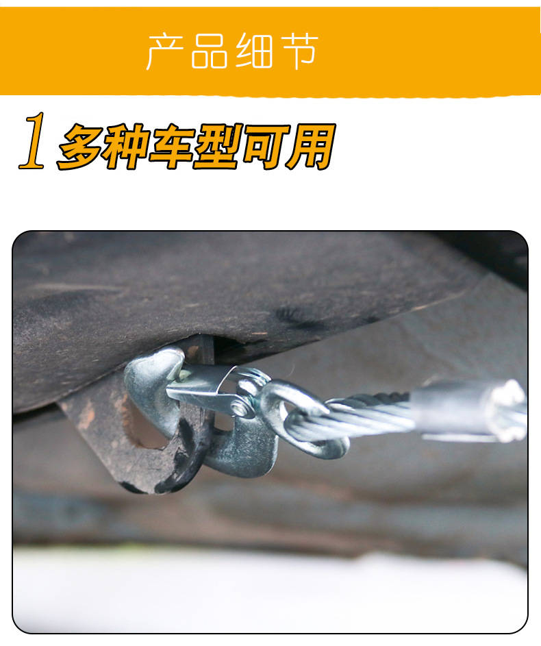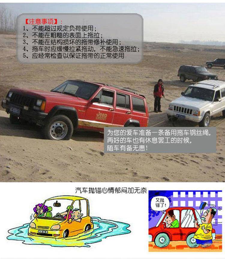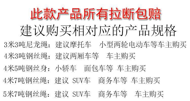商品名稱:拖車?yán)K汽車鋼絲繩越野小轎車用強力救援牽引繩5米7噸拉車?yán)K拖車帶