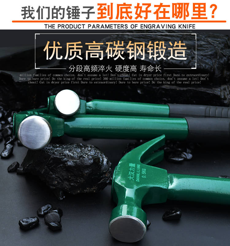 商品名稱:錘子鋼管柄方頭羊角錘直角錘 起釘錘鐵錘拔釘錘 吸頂麻面工地木工釘錘