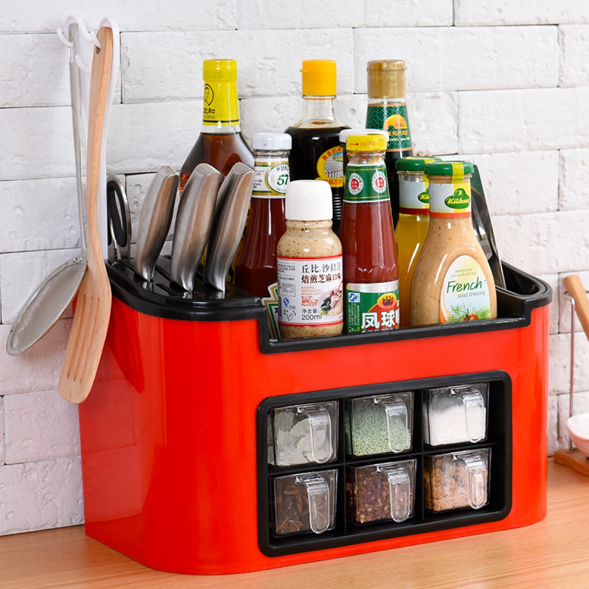 廚房置物架調(diào)料盒家用鹽糖佐料收納盒塑料調(diào)味罐瓶6格大號調(diào)料罐