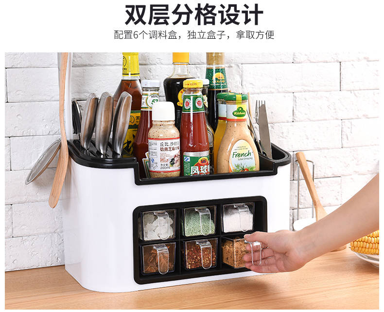 商品名稱:廚房置物架調(diào)料盒家用鹽糖佐料收納盒塑料調(diào)味罐瓶6格大號調(diào)料罐