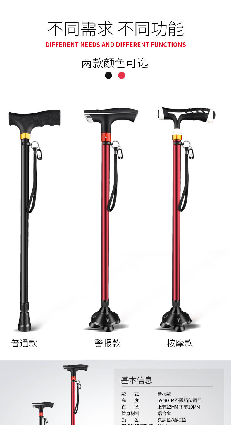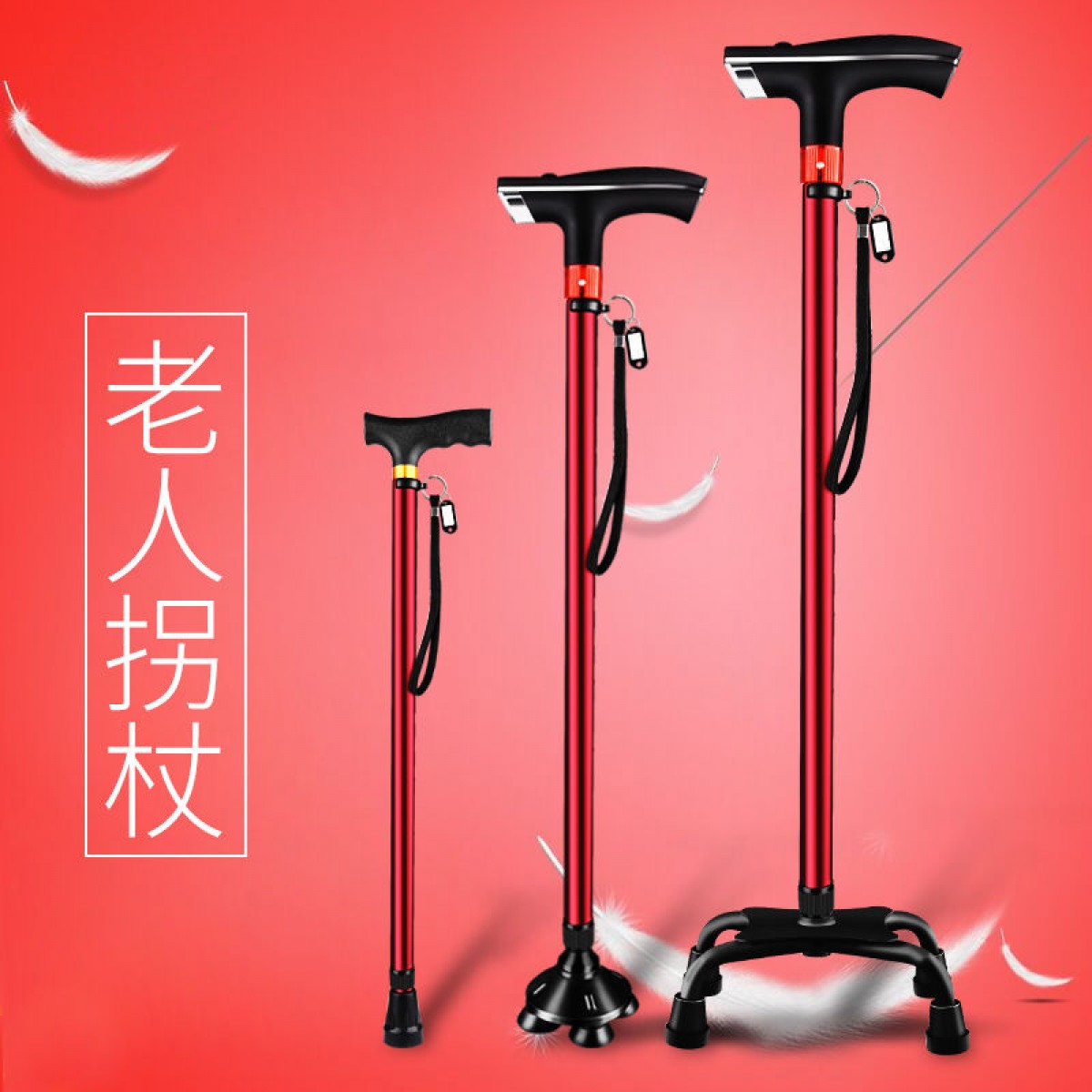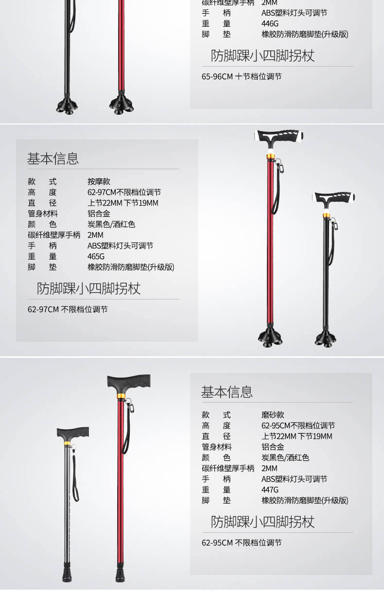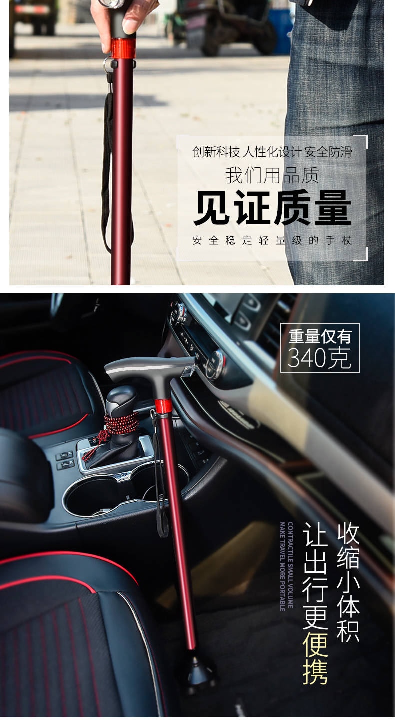 商品名稱:拐扙拐棍老人手杖四腳多功能超輕便防滑折疊老年人拐杖可伸縮帶