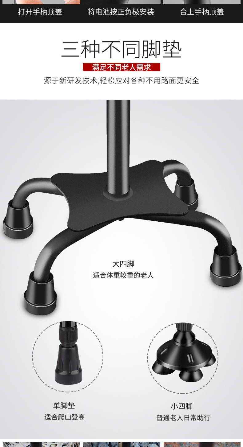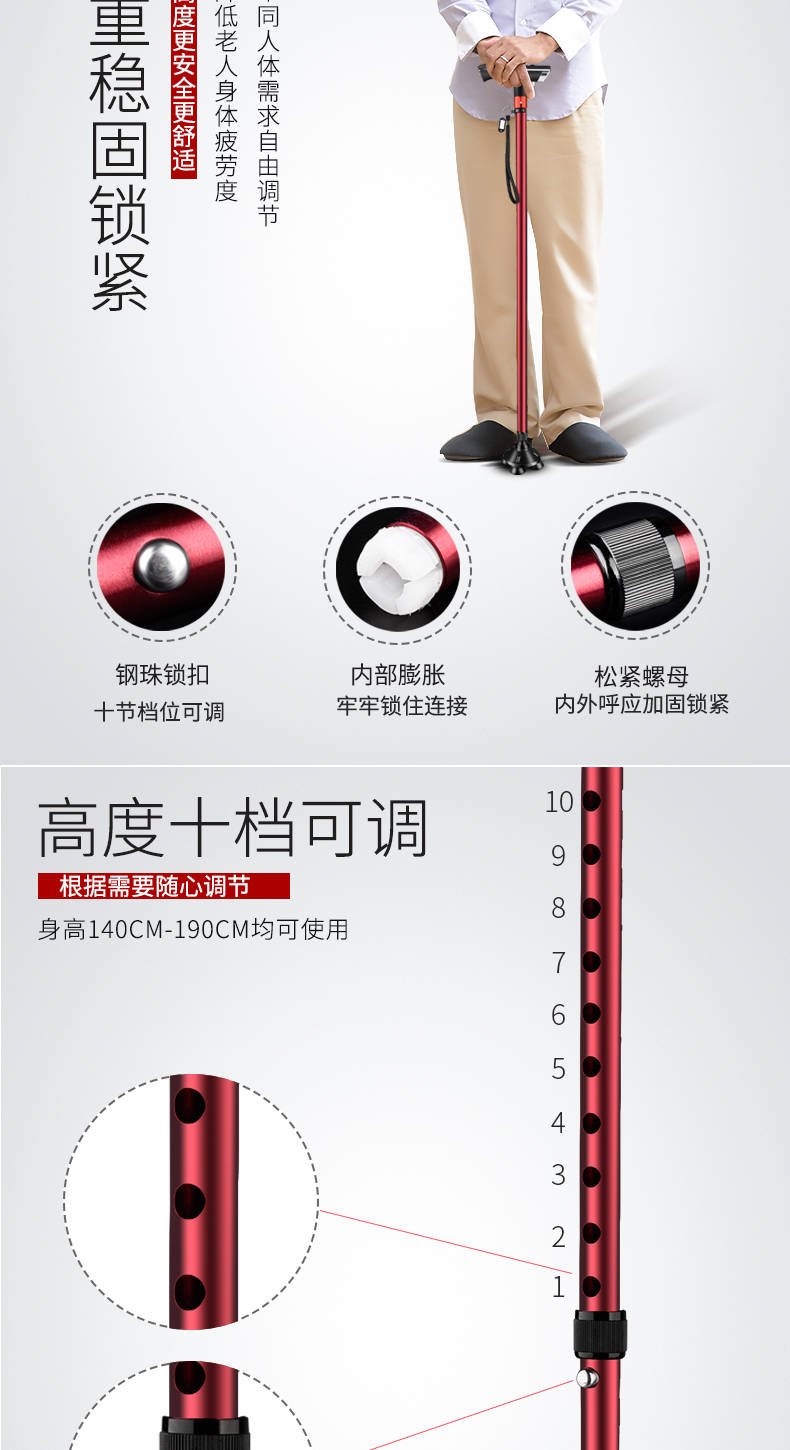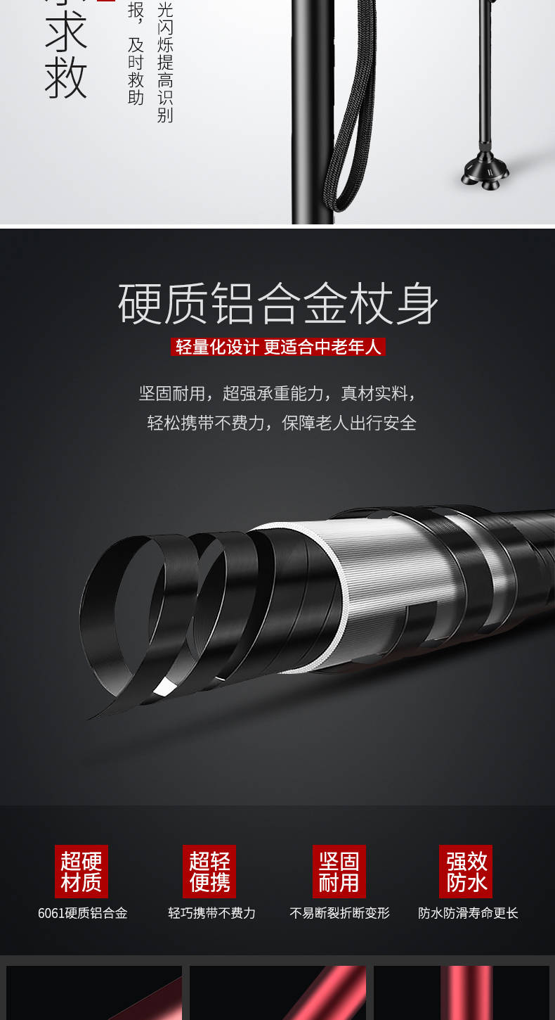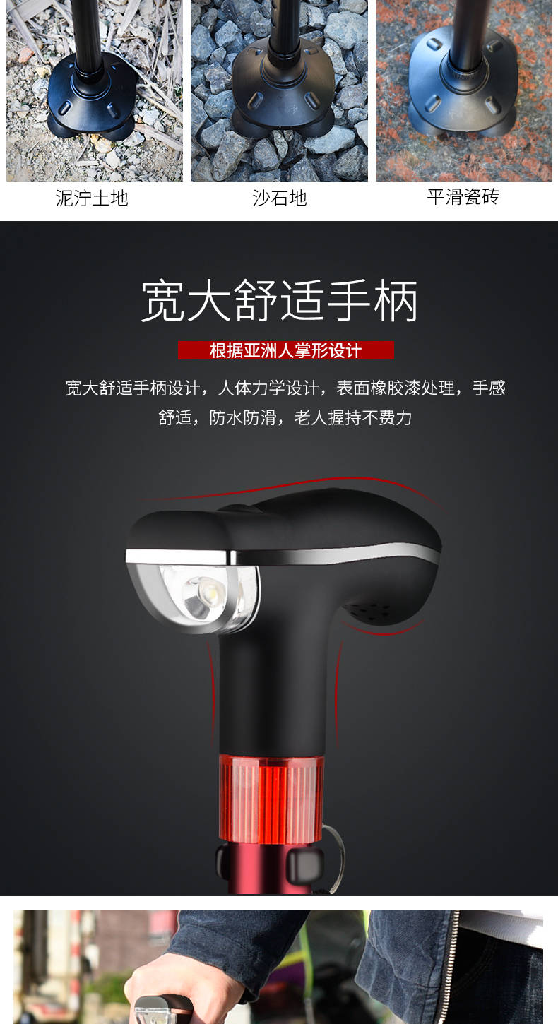 商品名稱:拐扙拐棍老人手杖四腳多功能超輕便防滑折疊老年人拐杖可伸縮帶