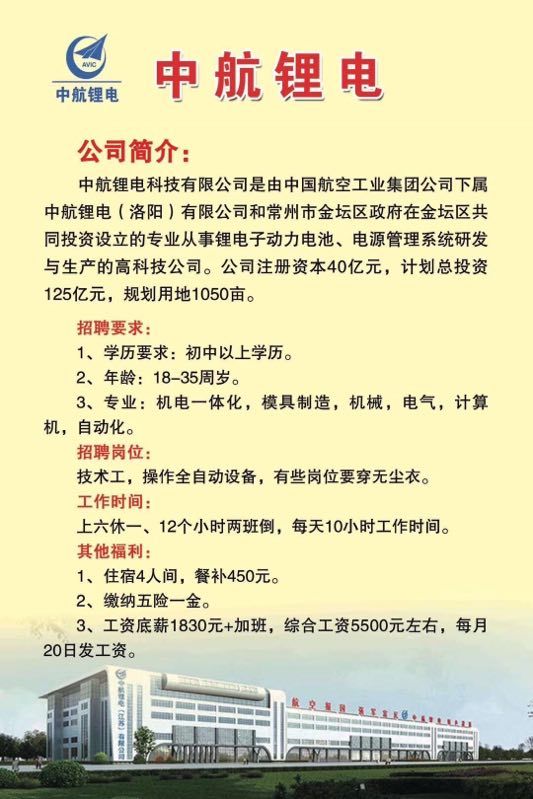 公司簡介:中航鋰電科技有限公司,是由中國航空工業(yè)集團公司,下屬中航鋰電(洛陽)有限公司和常州市金壇區(qū)政府,在金壇區(qū)紅銅投資設(shè)立的。專業(yè)從事鋰電子動力電池,電源管理系統(tǒng)研發(fā)與生產(chǎn)的高科技公司。