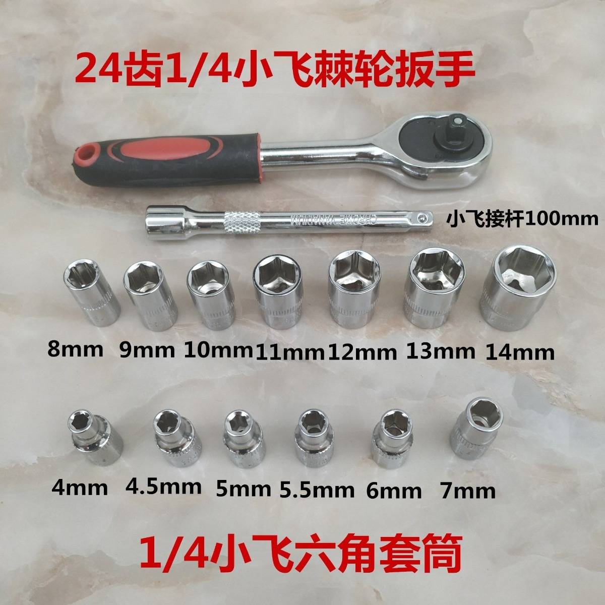 小飛棘輪扳手1/4加長(zhǎng)接桿100mm小飛套筒六角螺母螺絲小飛棘輪快脫