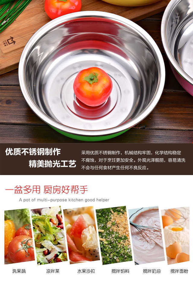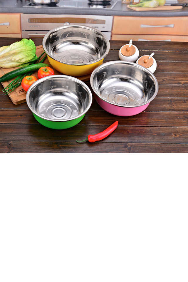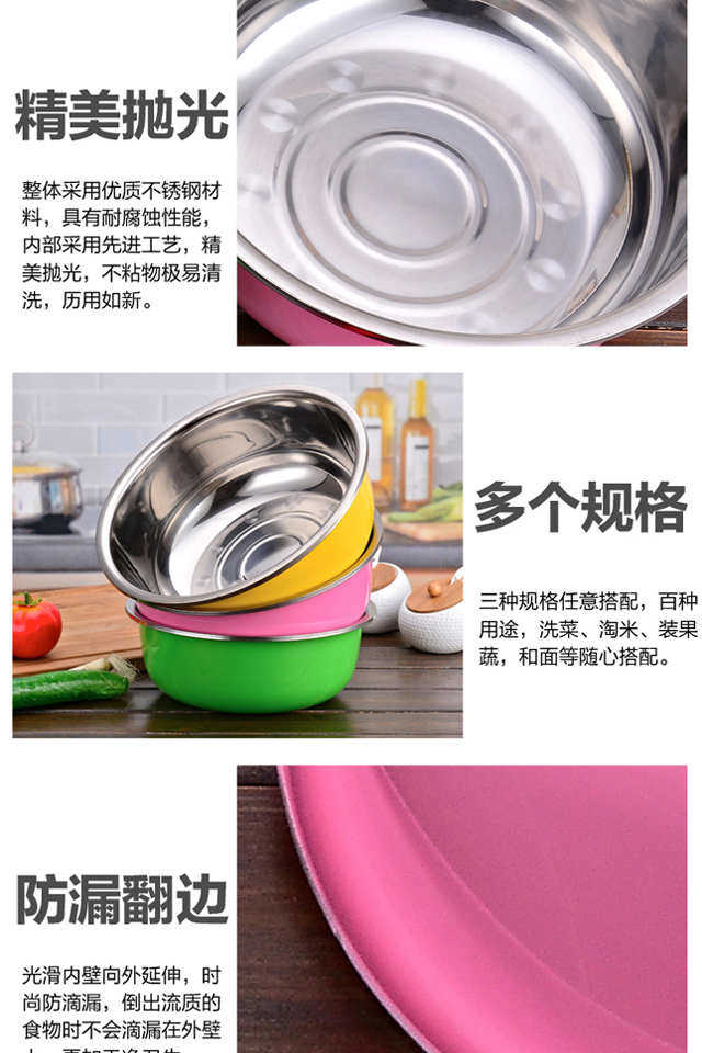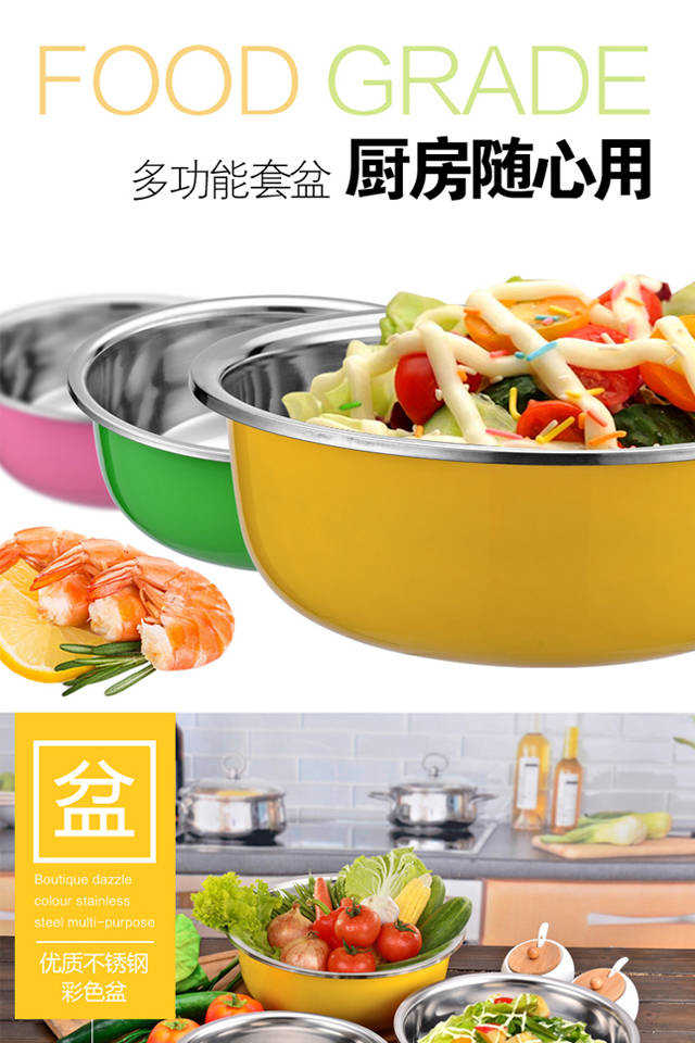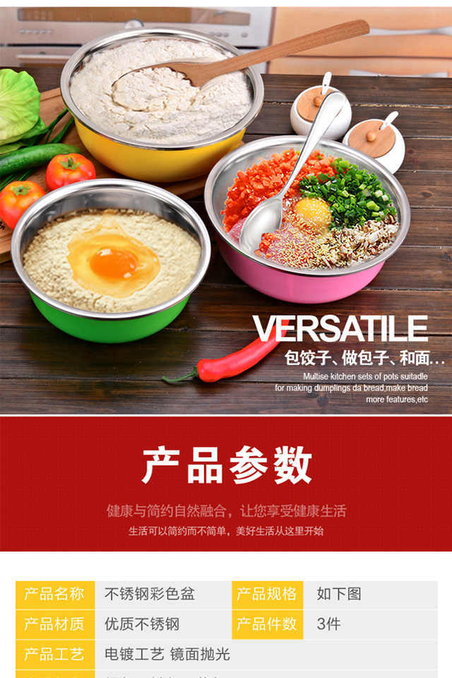 商品名稱:彩色加厚三件套調(diào)料盆3個(gè)裝不銹鋼盆打蛋盆廚房多用湯盆洗菜盆
