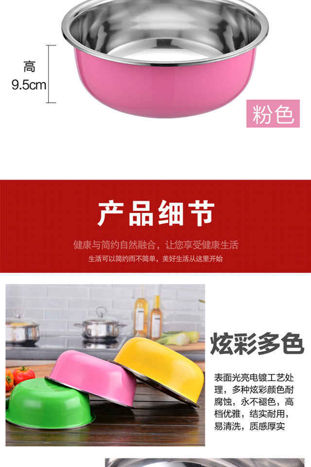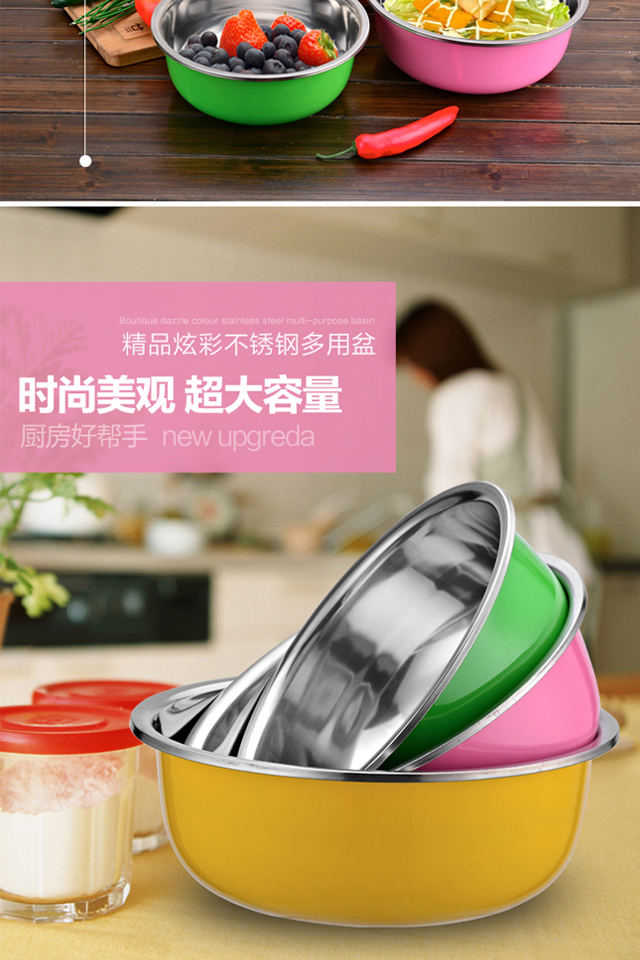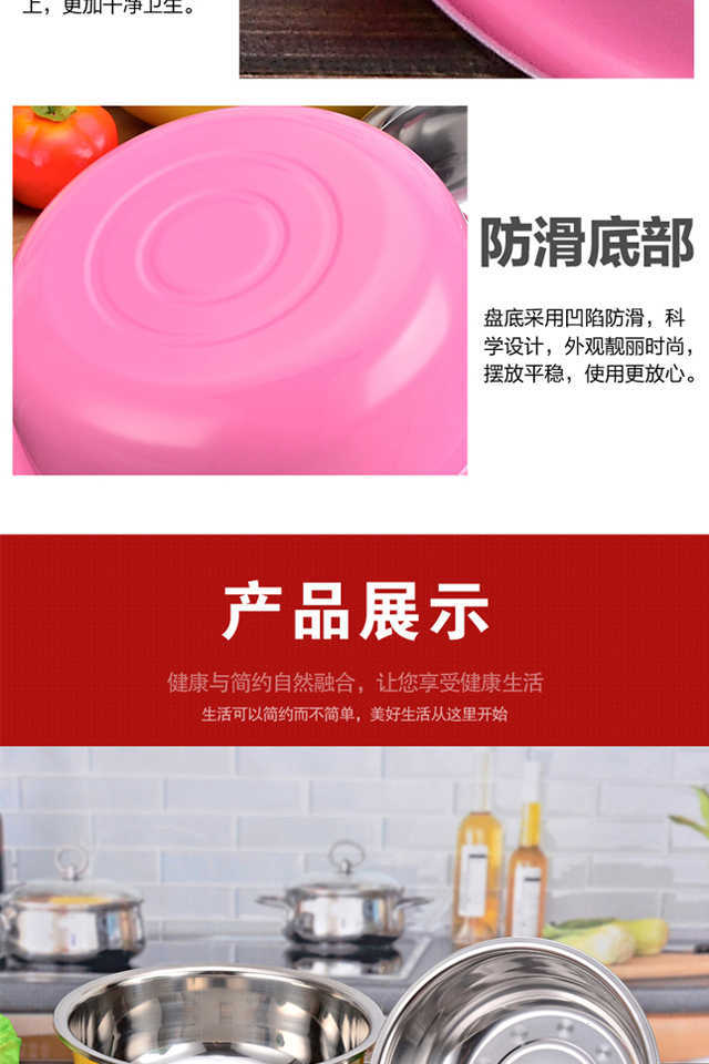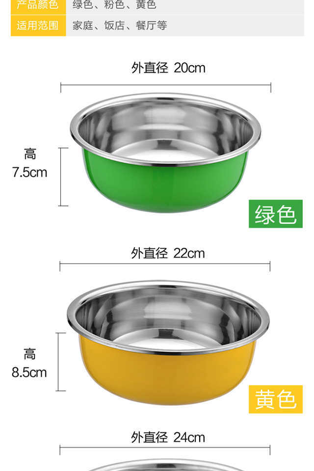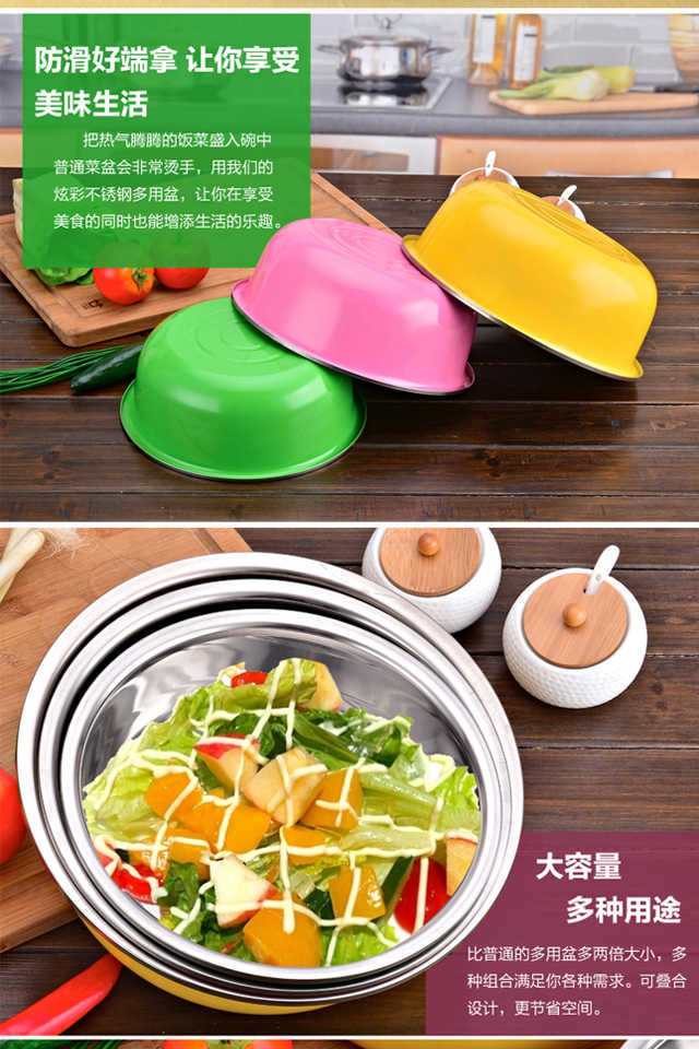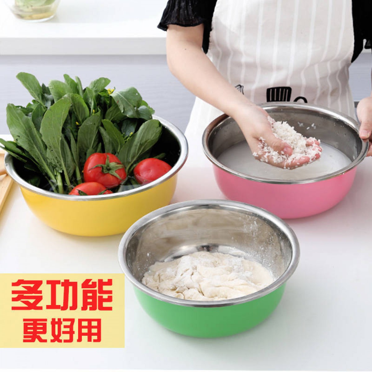 商品名稱:彩色加厚三件套調(diào)料盆3個(gè)裝不銹鋼盆打蛋盆廚房多用湯盆洗菜盆