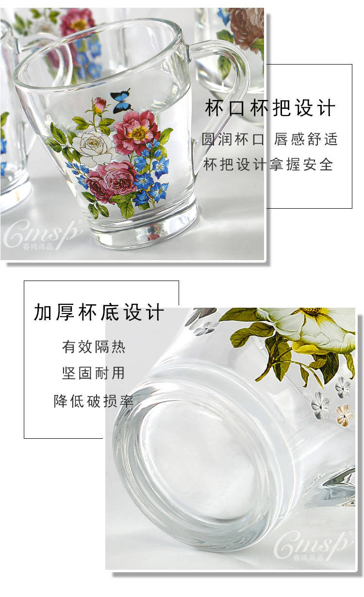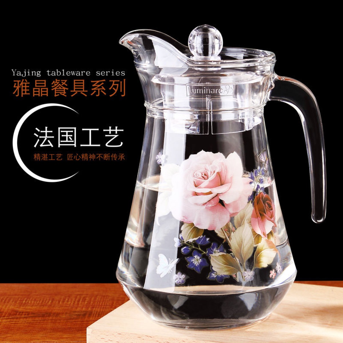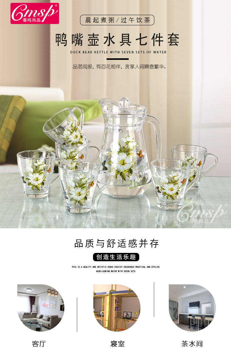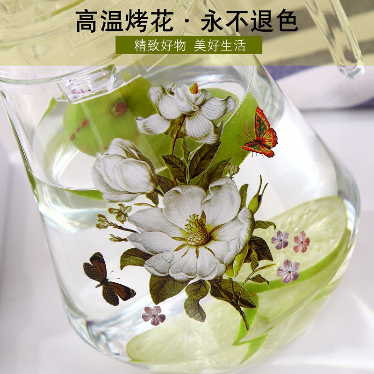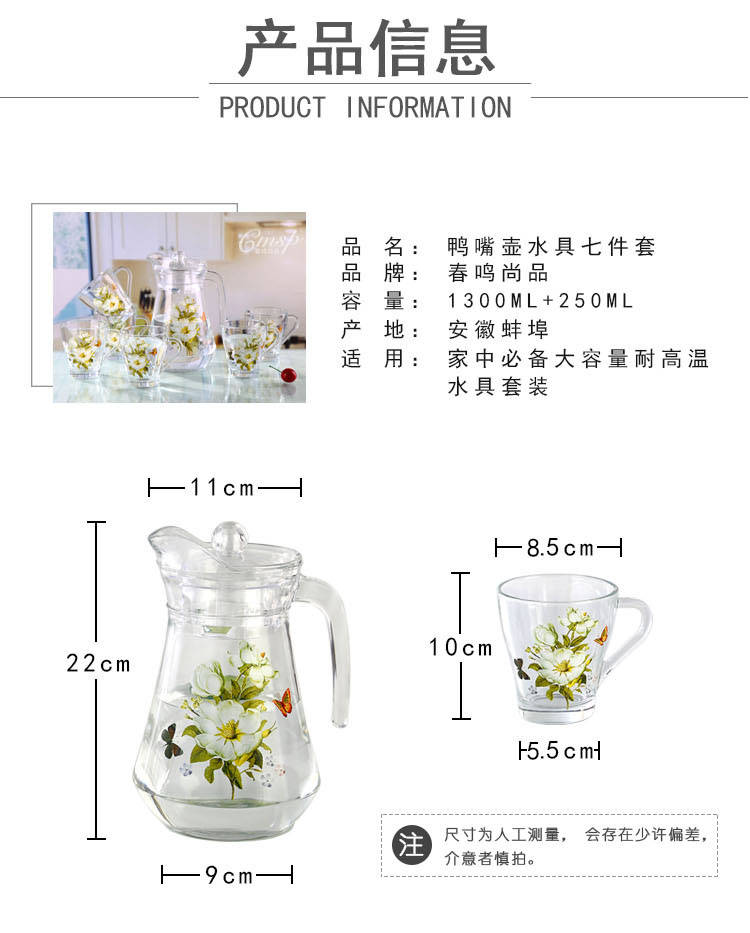 商品名稱(chēng):家用印花冷水壺泡茶壺帶把涼水杯加厚耐熱防爆玻璃大容量七件套裝