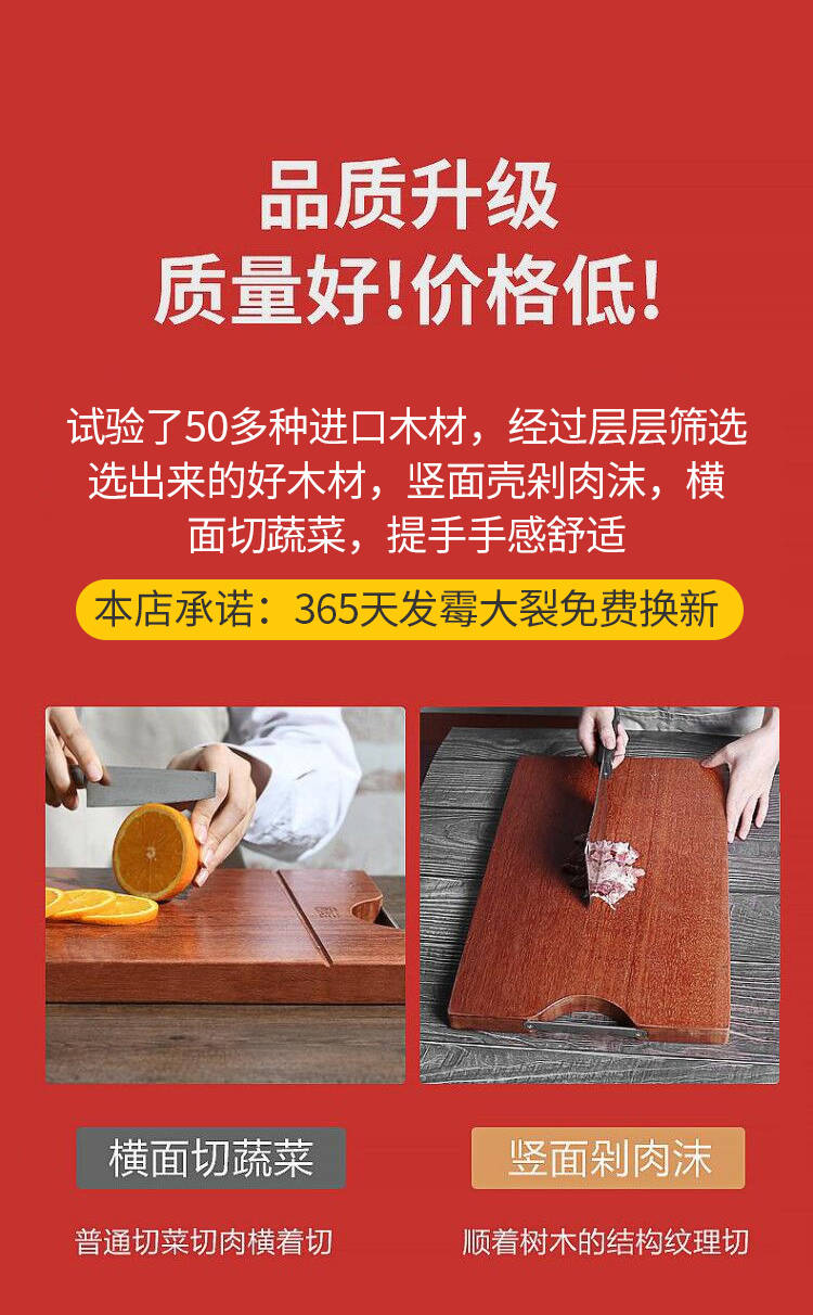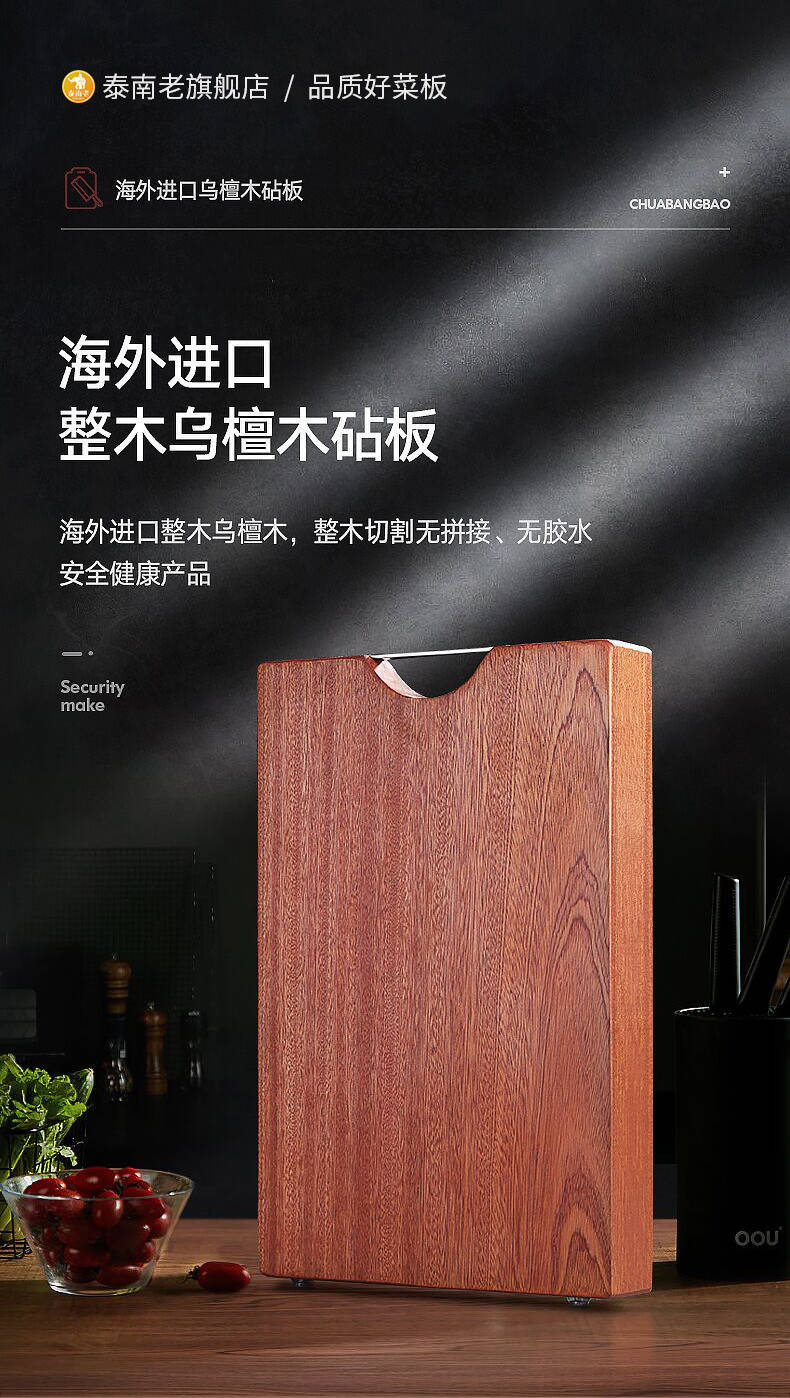 商品名稱:進口烏檀木整木菜板實木家用砧板長方形切菜板廚房案板刀板