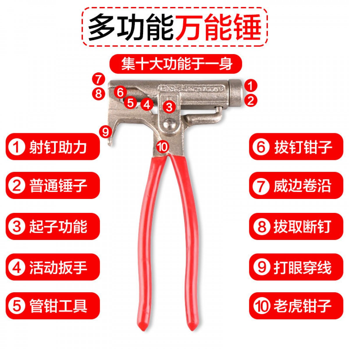 家用多工能10種功能必備扳手 多功能錘子管鉗 鐵敲打手動助力射釘槍