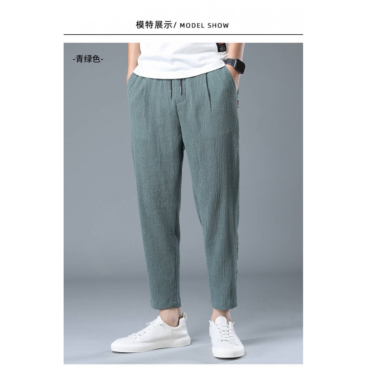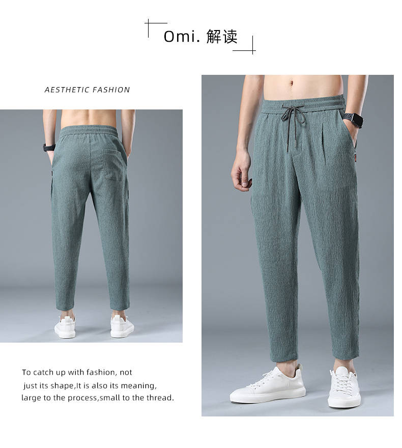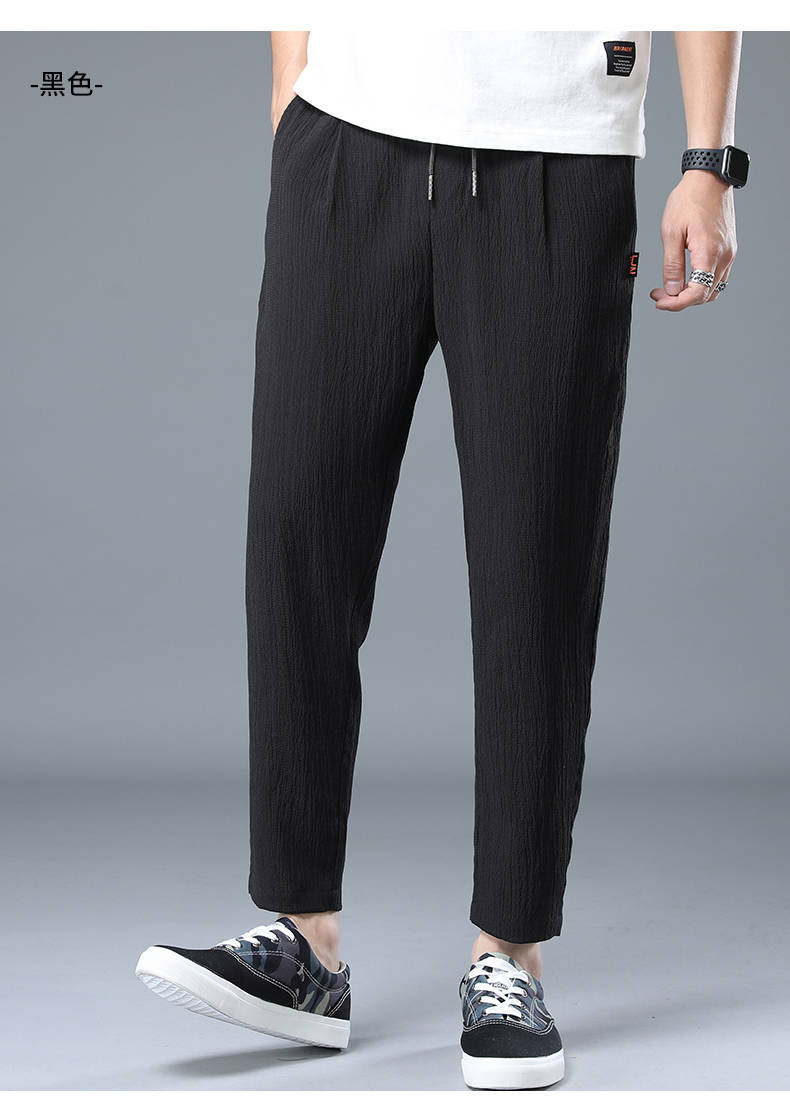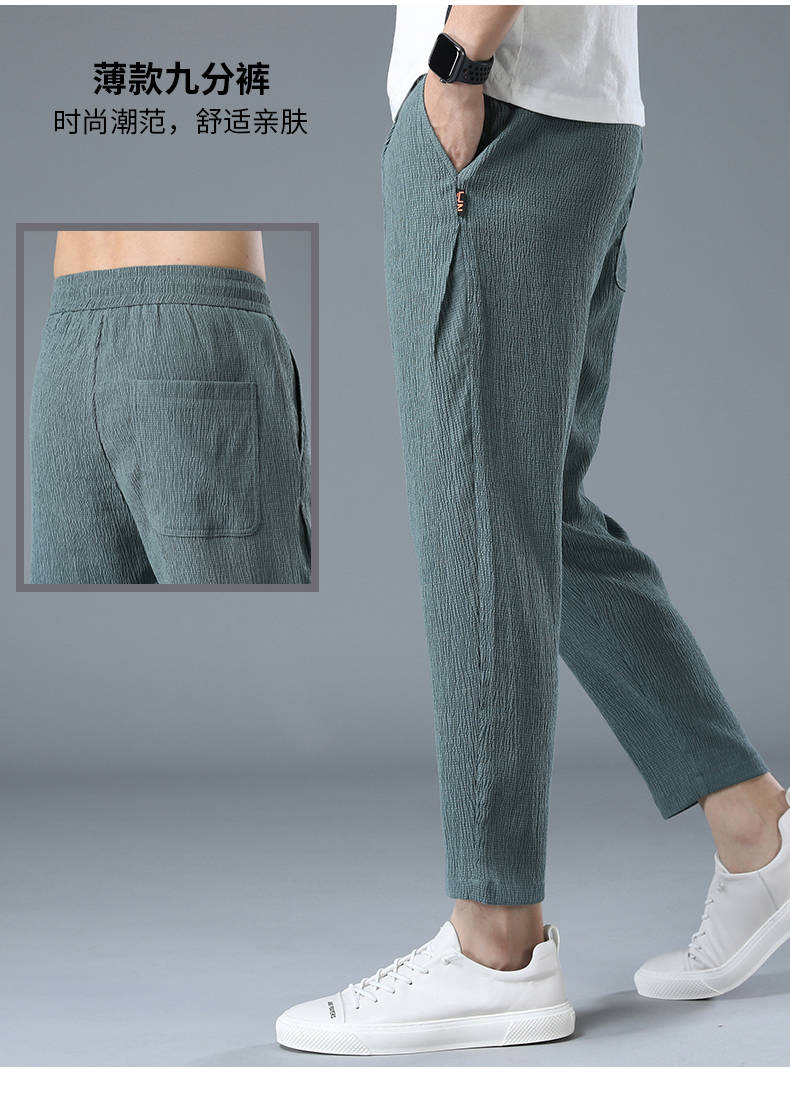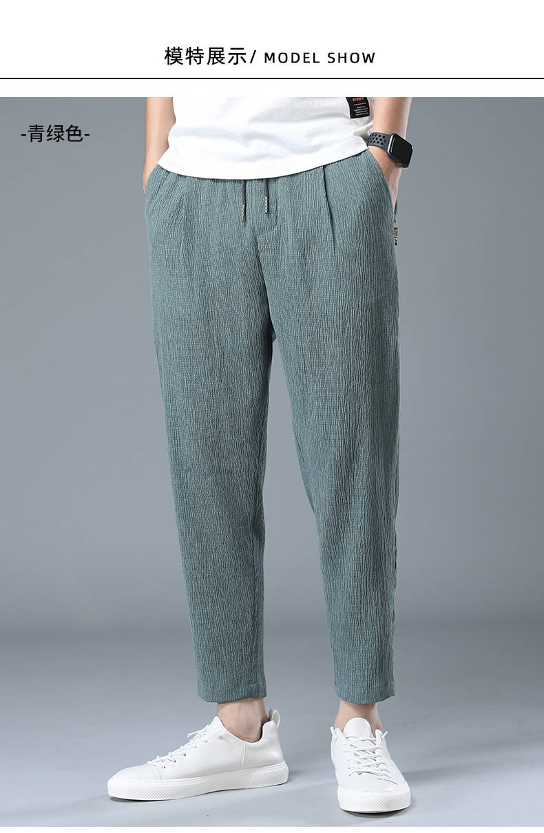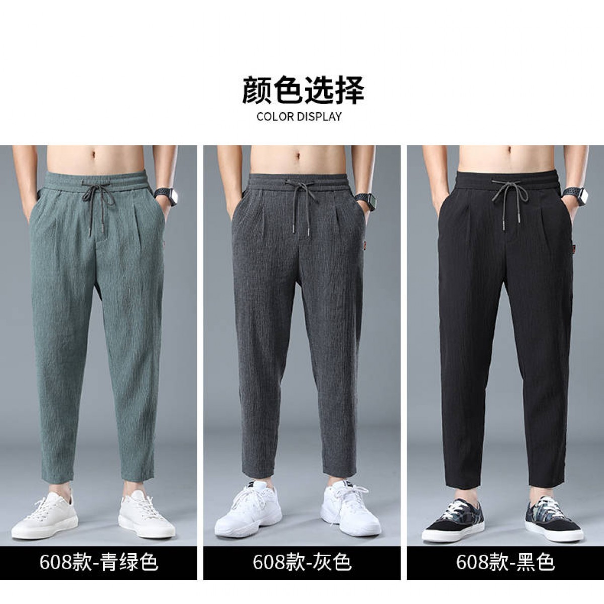 商品名稱:2020夏季亞麻超薄透氣冰絲九分褲男寬松直筒褲男士休閑褲百搭潮流