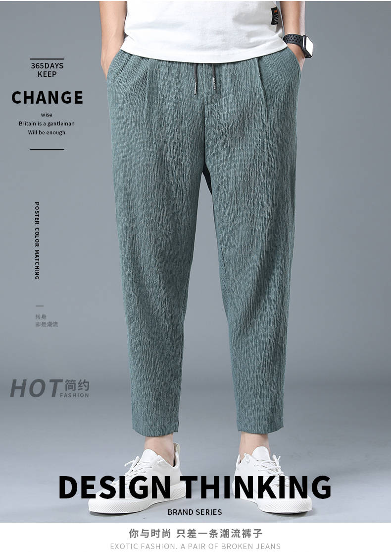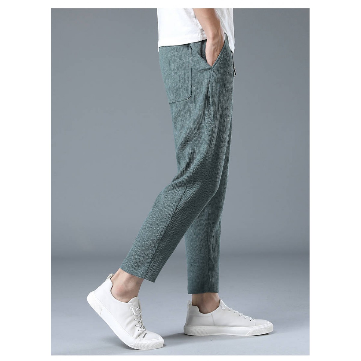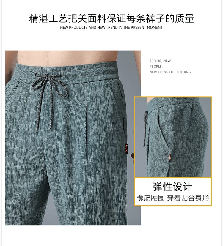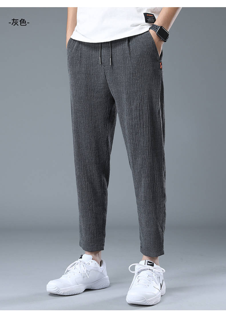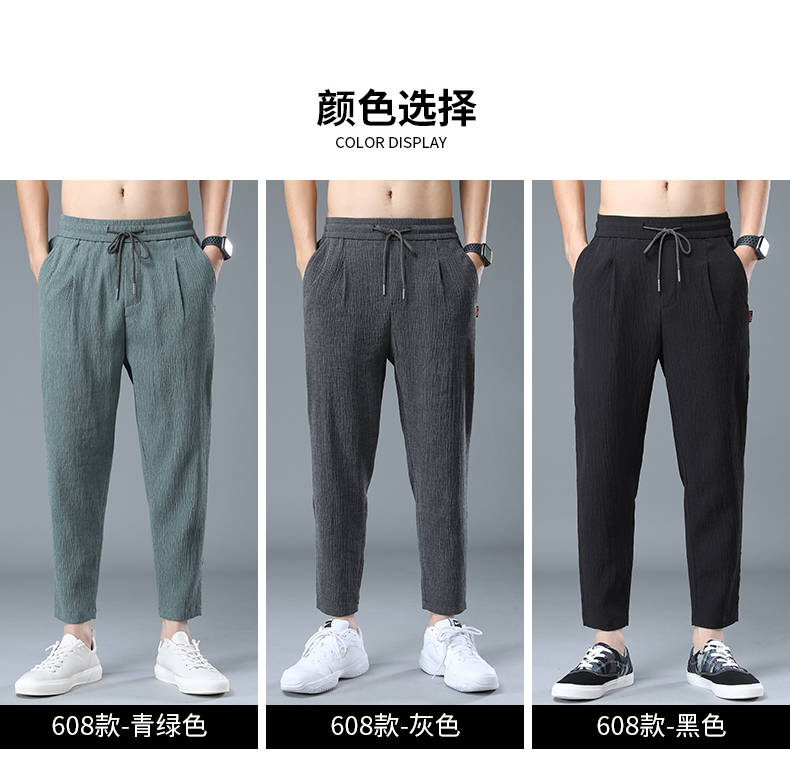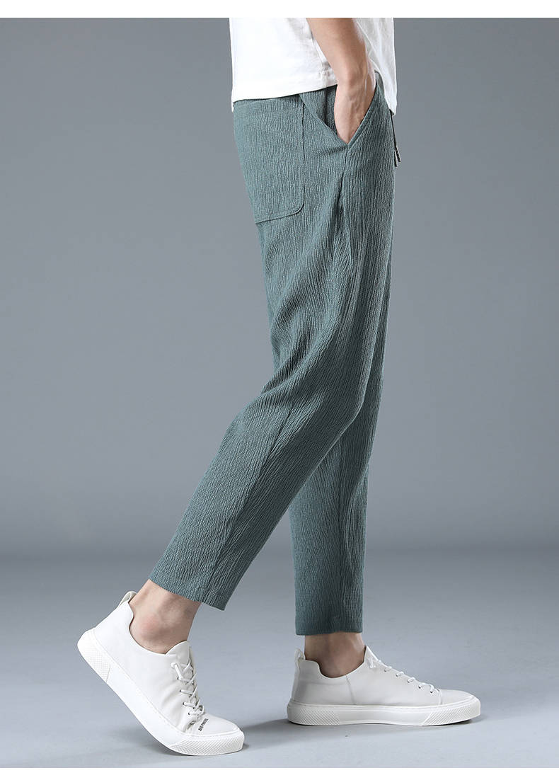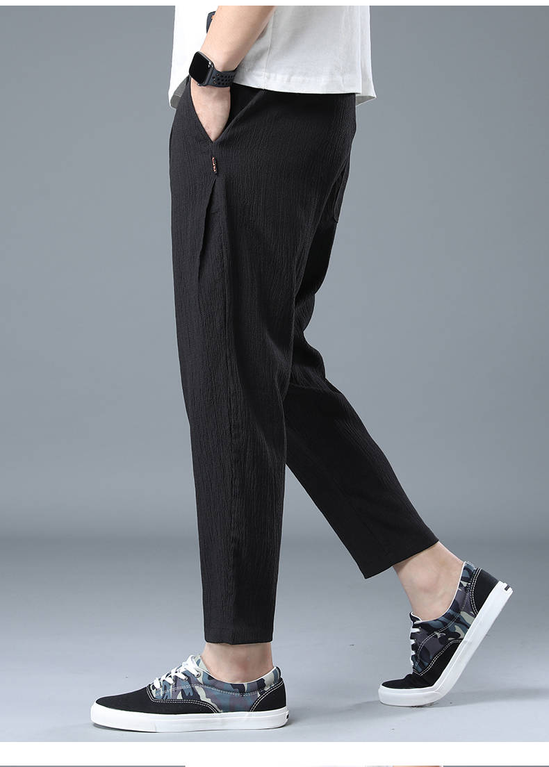 商品名稱:2020夏季亞麻超薄透氣冰絲九分褲男寬松直筒褲男士休閑褲百搭潮流