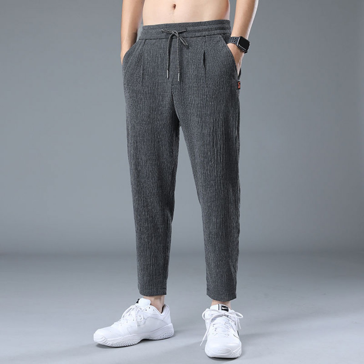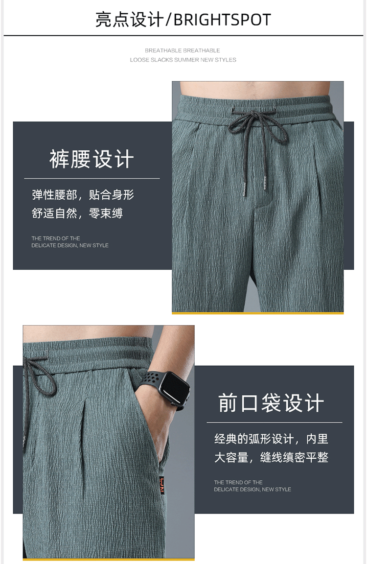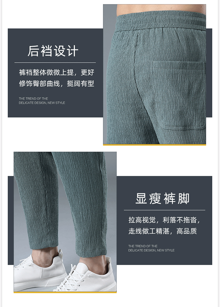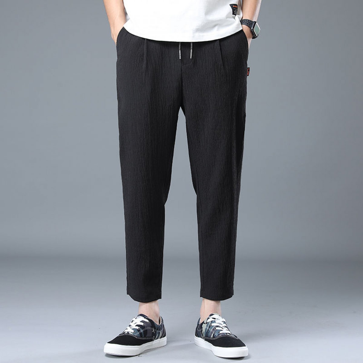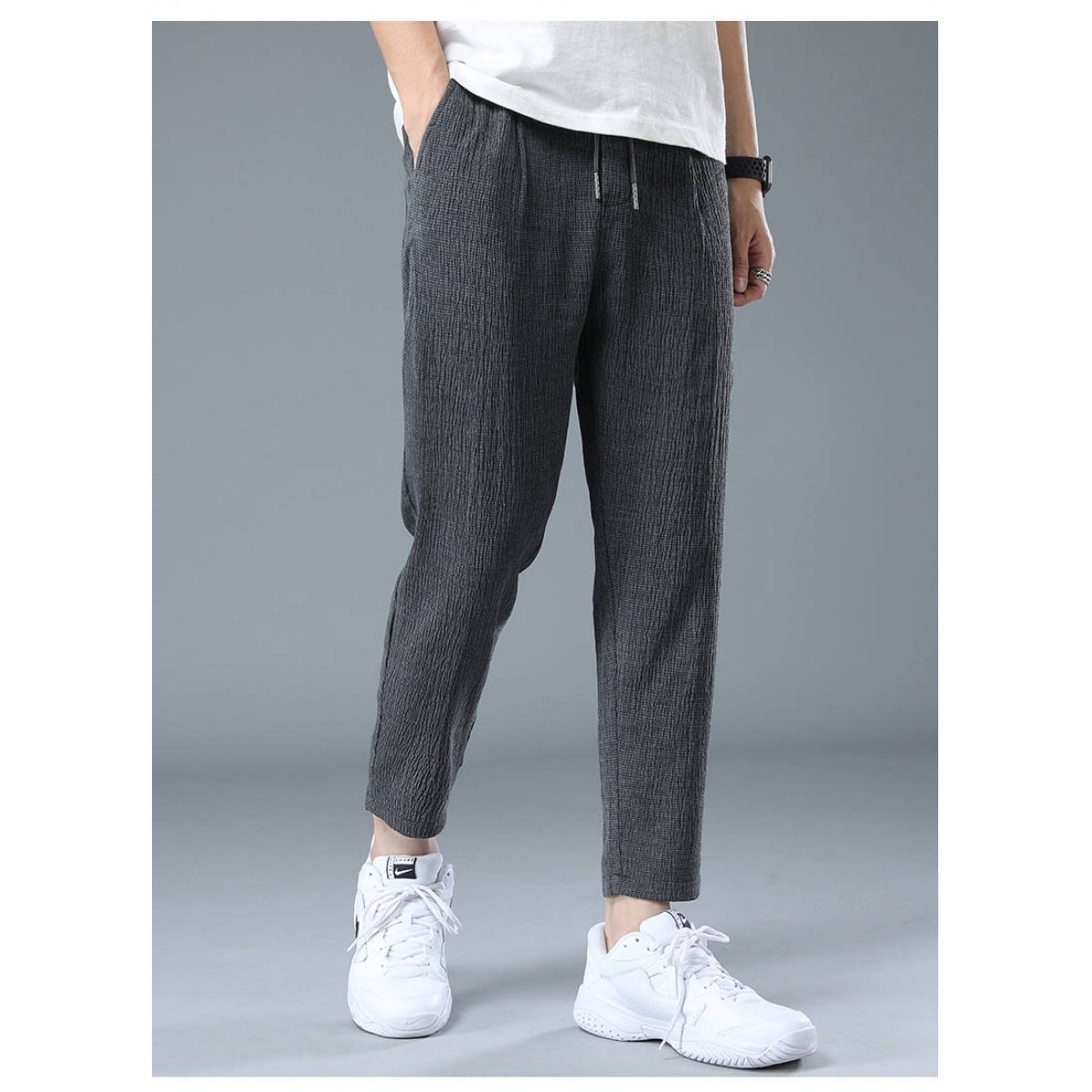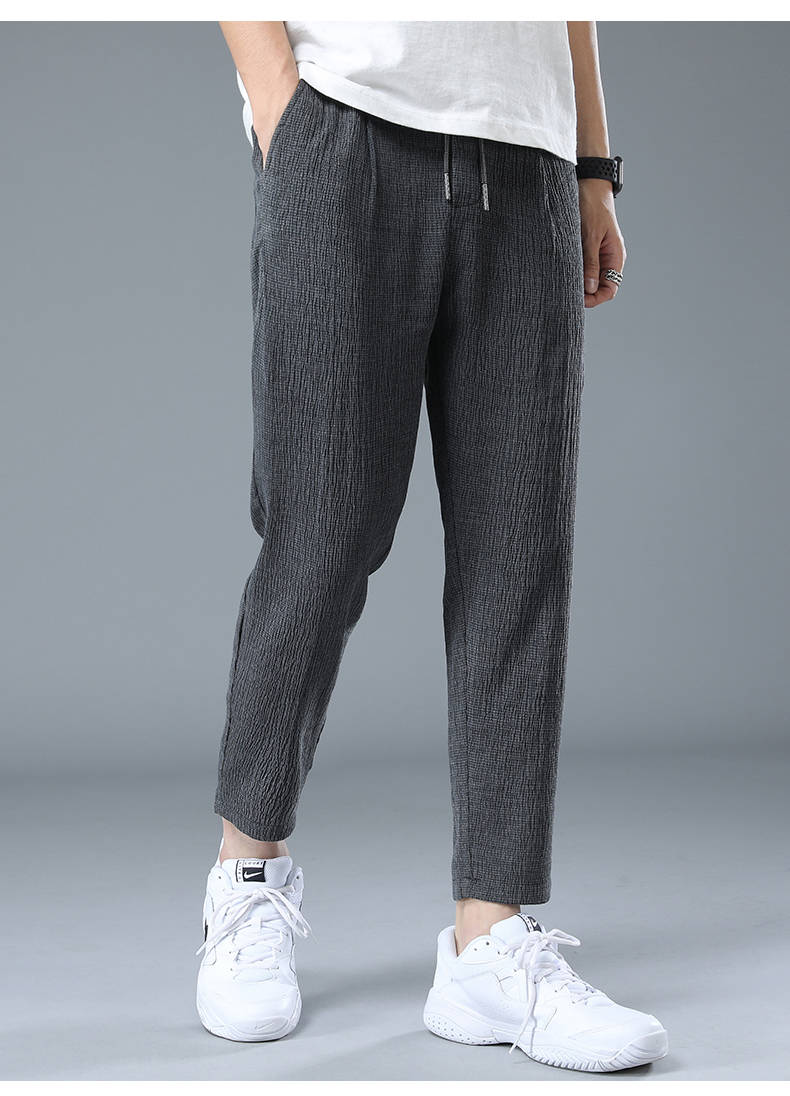 商品名稱:2020夏季亞麻超薄透氣冰絲九分褲男寬松直筒褲男士休閑褲百搭潮流