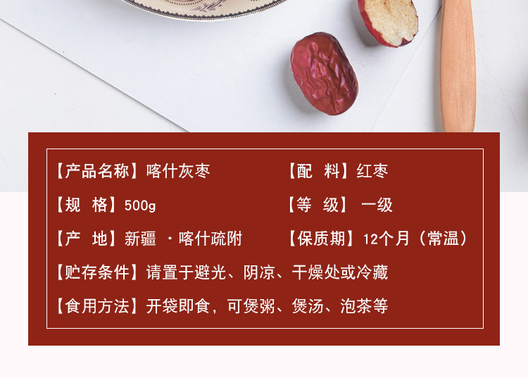 商品名稱:新疆 喀什 疆果果 一級灰棗500g/袋 紅棗